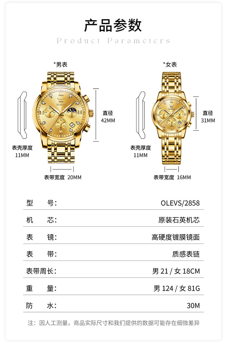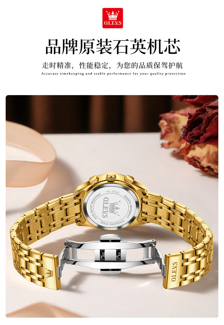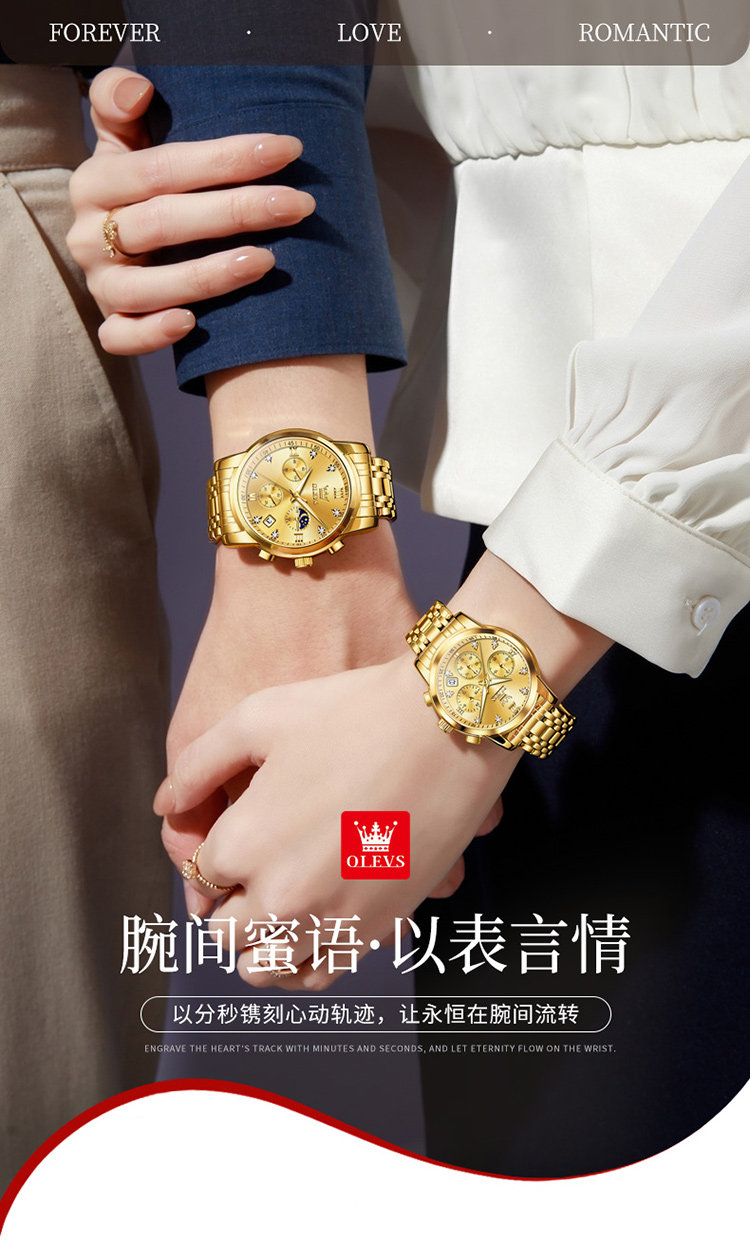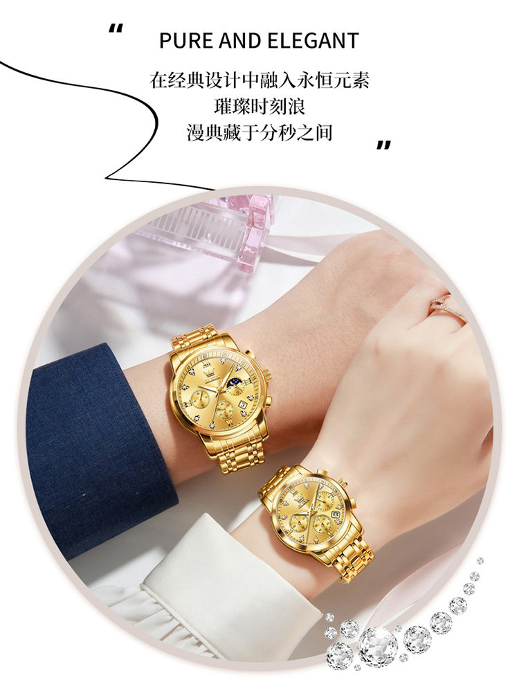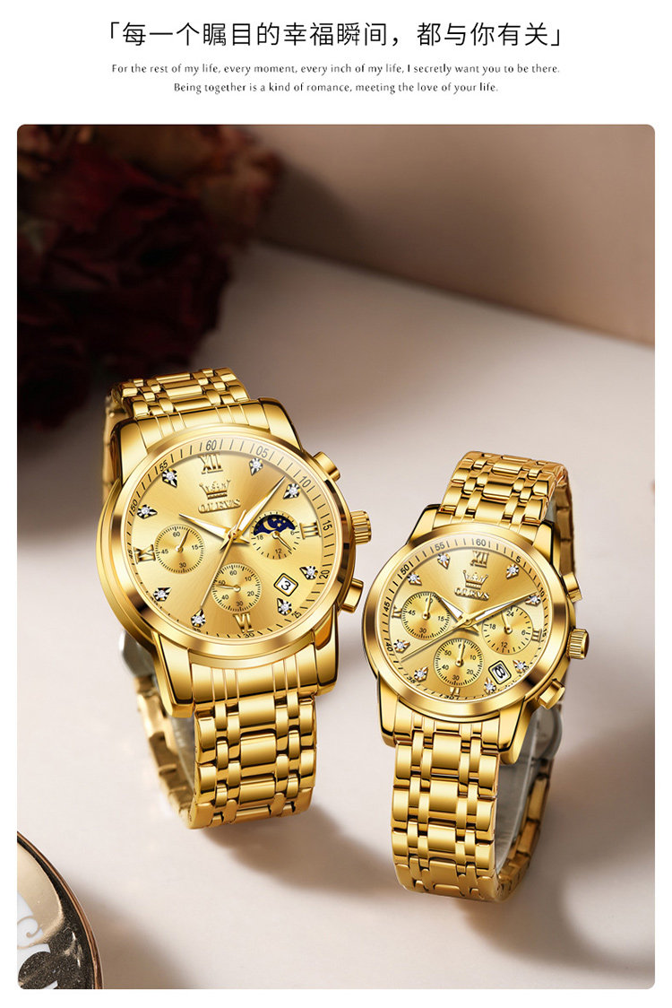 新款瑞士欧利时情侣手表金表男女士对表防水时尚款品牌腕表三眼表
