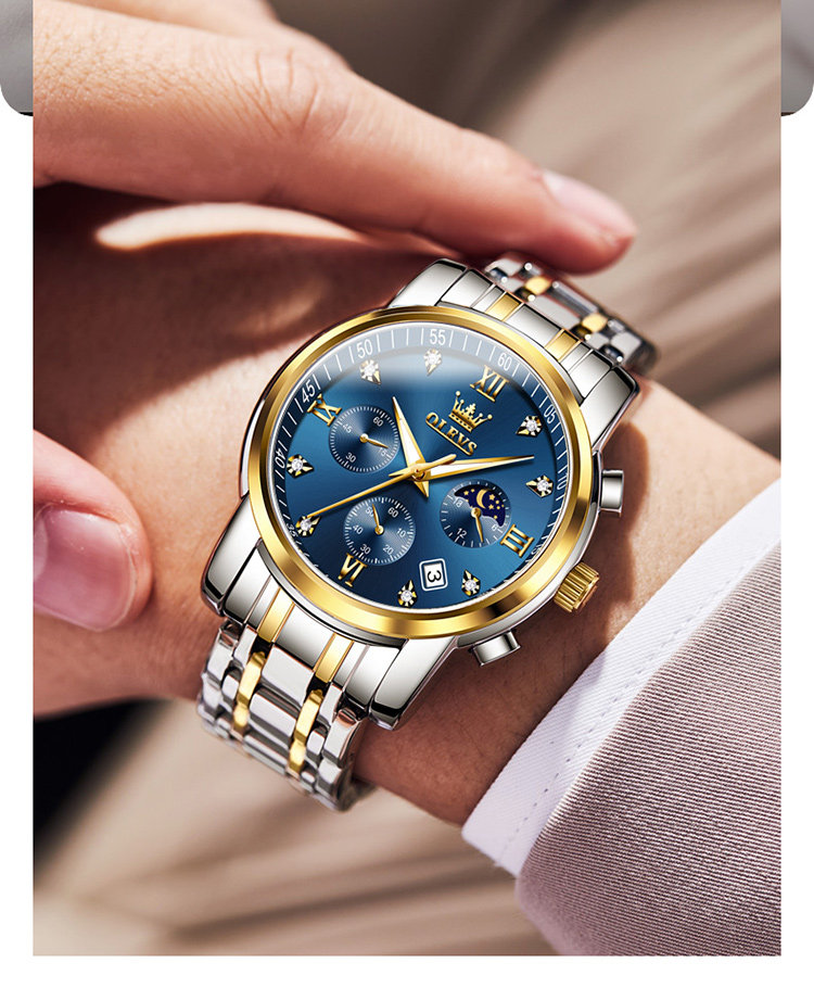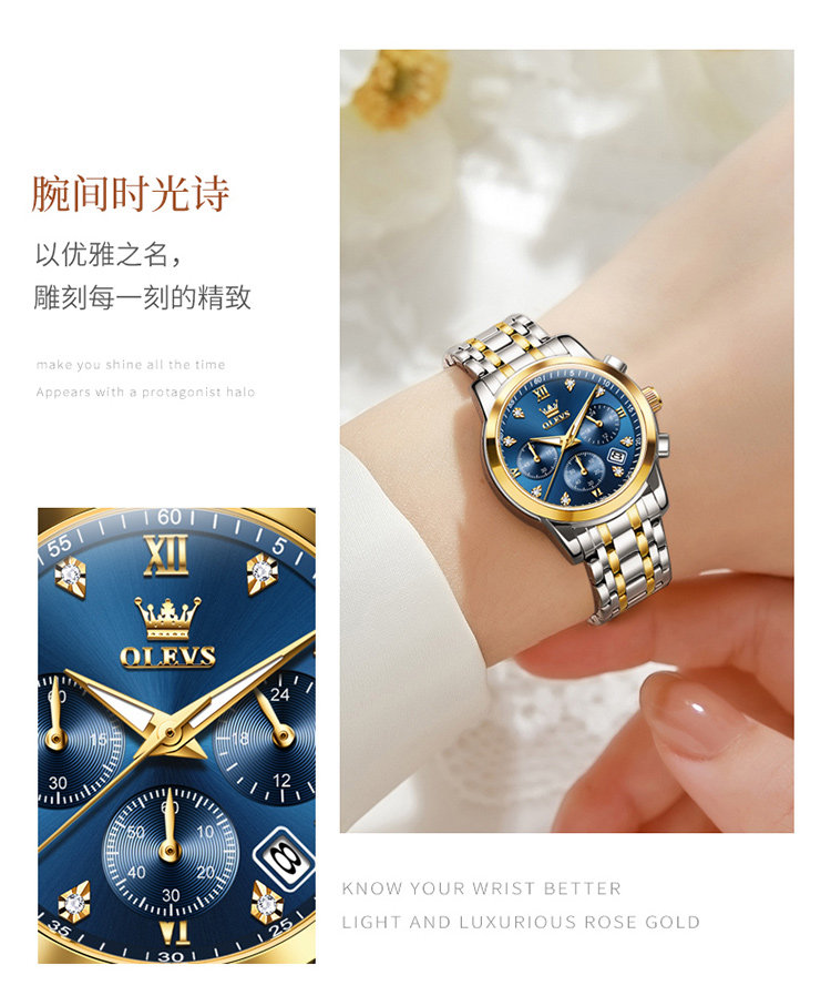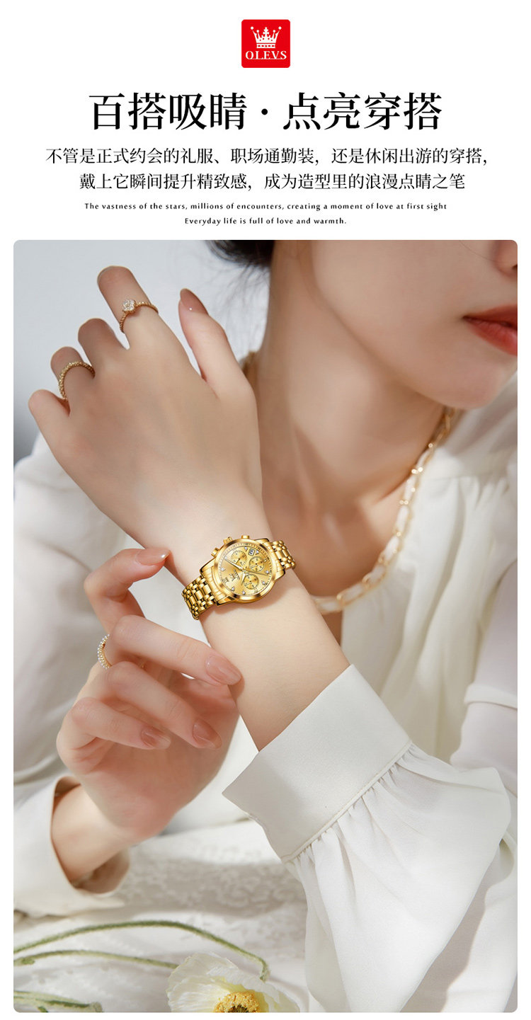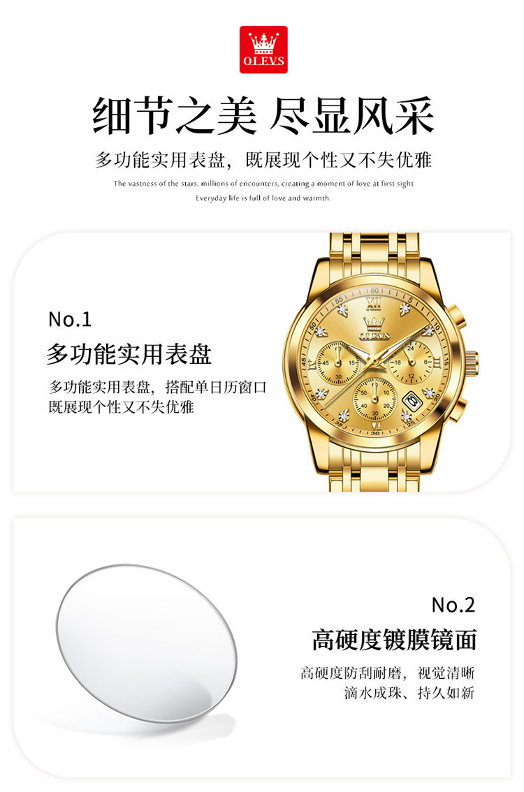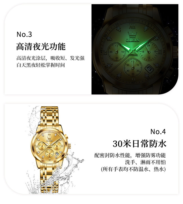 新款瑞士欧利时情侣手表金表男女士对表防水时尚款品牌腕表三眼表