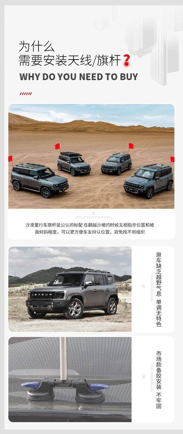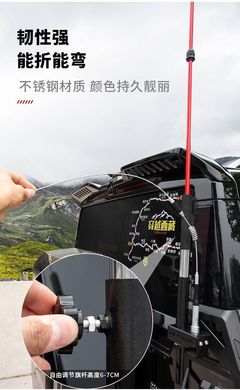 Off-Road Vehicle Desert Flagpole Red Flag Jietu Traveler Flagpole Multi-Functional Antenna Bracket Tailgate Base Off-Road Vehicle