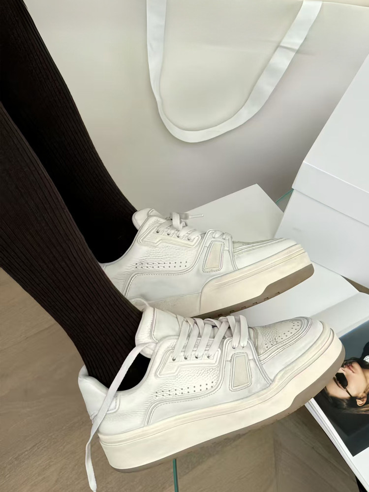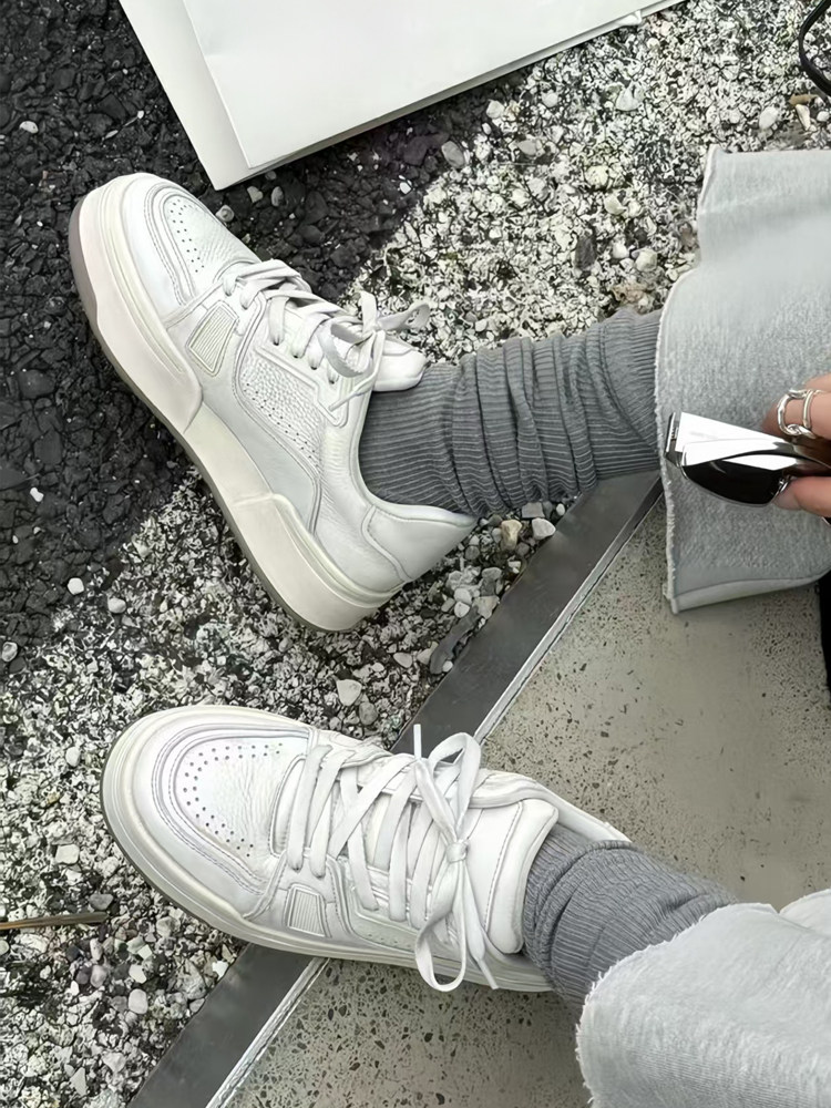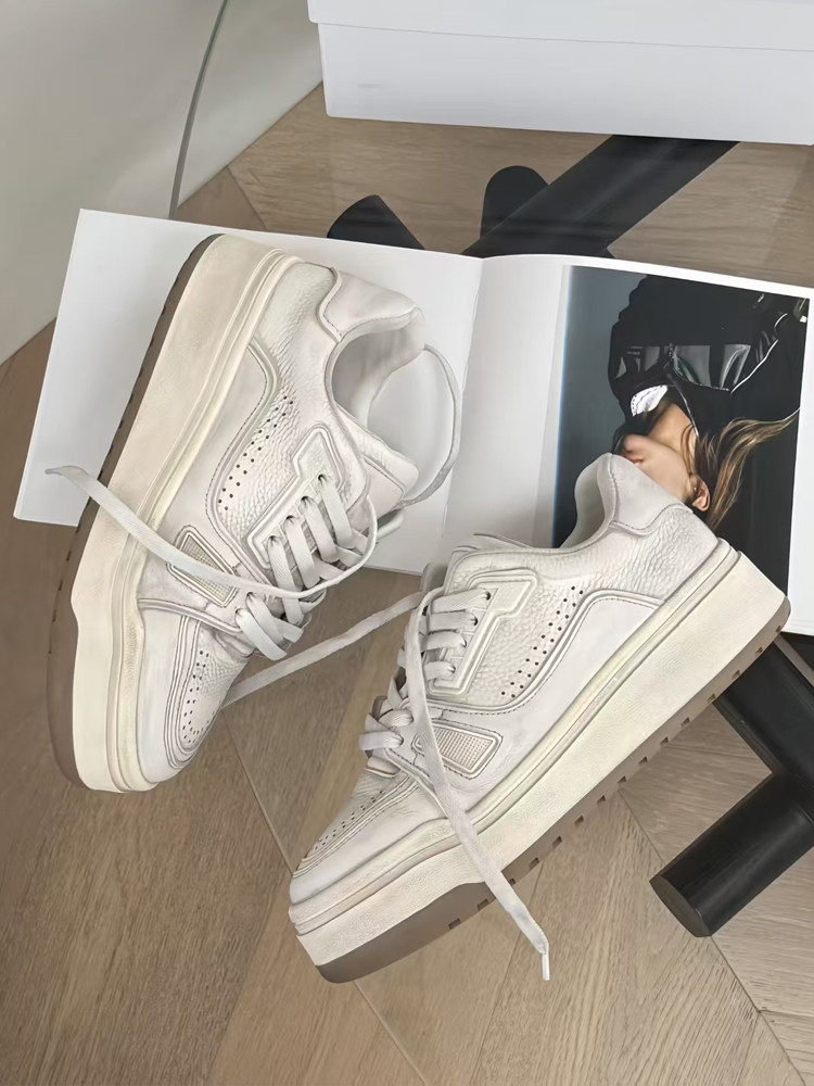 Estación Europea 2025 Otoño e Invierno Nuevos Zapatos Blancos Viejos Hechos a Mano de Suela Gruesa Zapatos de Mujer Zapatillas de Deporte versátiles Zapatos Deportivos y Casuales de Moda