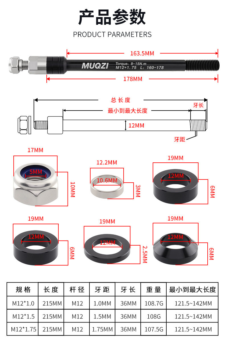 Color Classification M12X1.0 Pitch 160-178mm,M12X1.5 Pitch 160-178mm,M12X1.75 Tooth Pitch 160-178mm