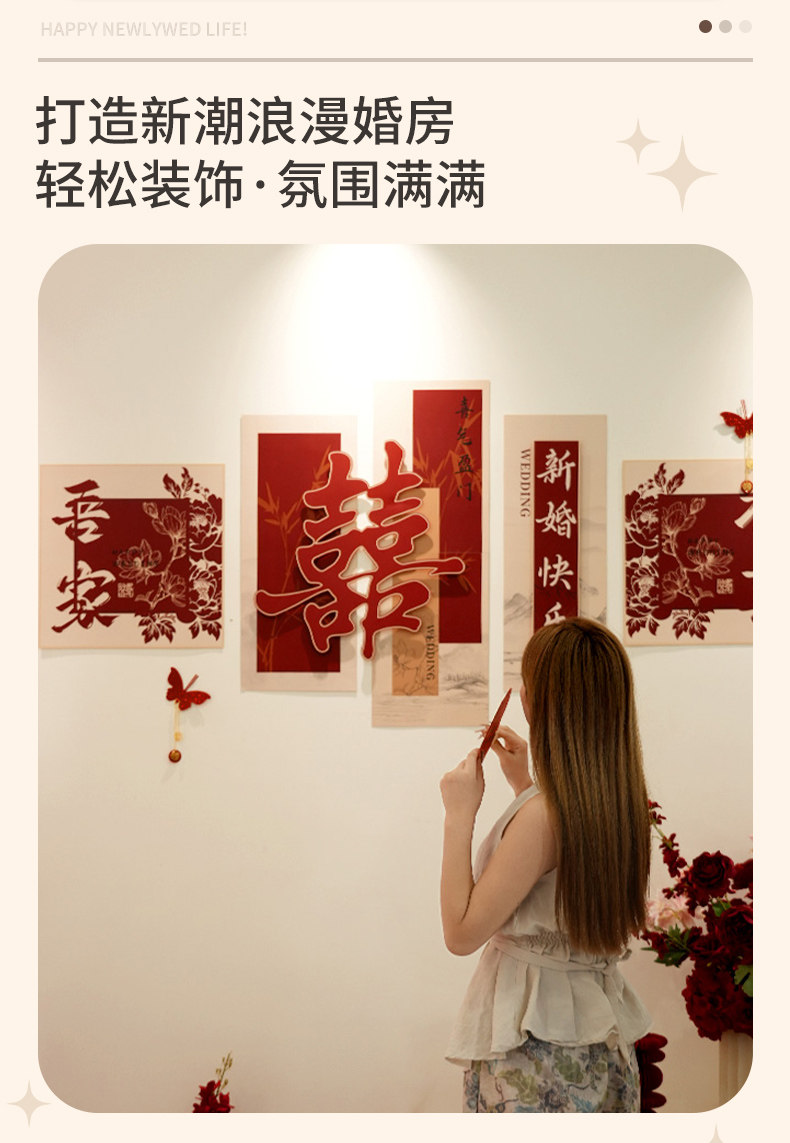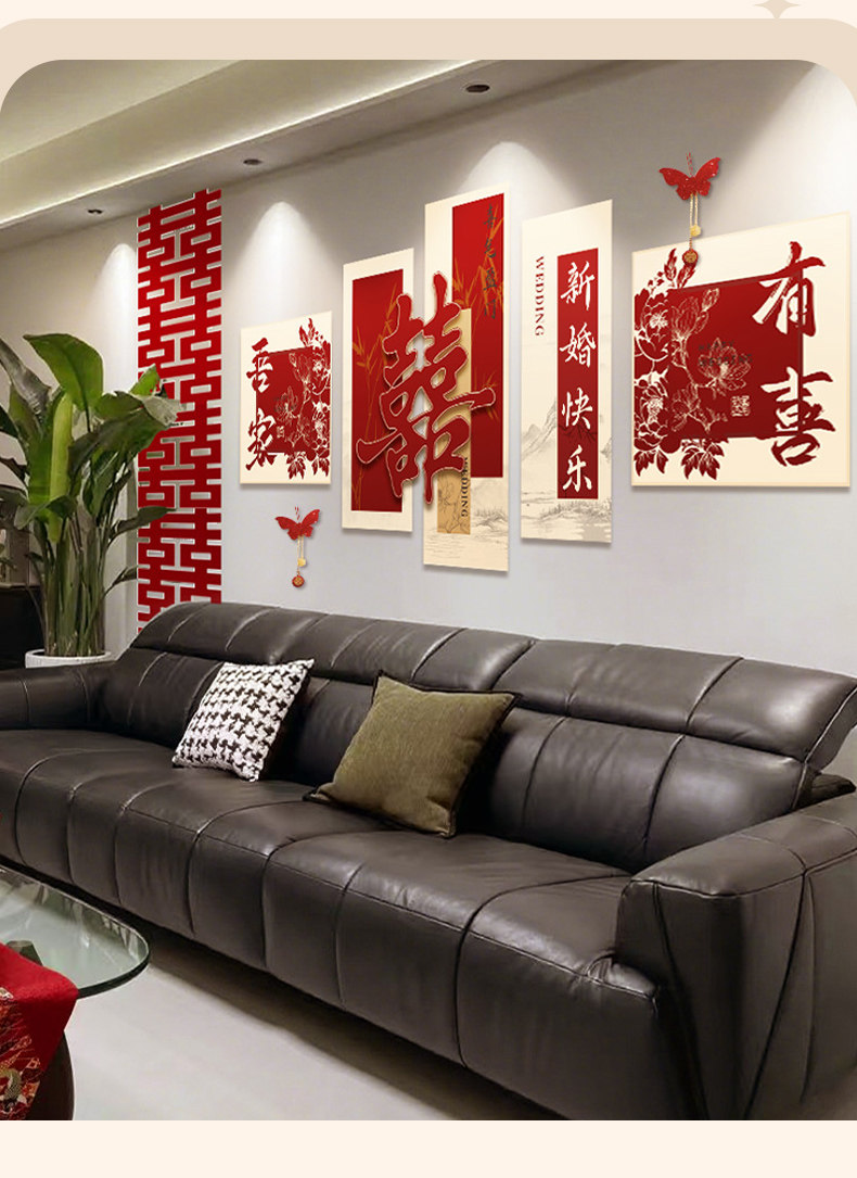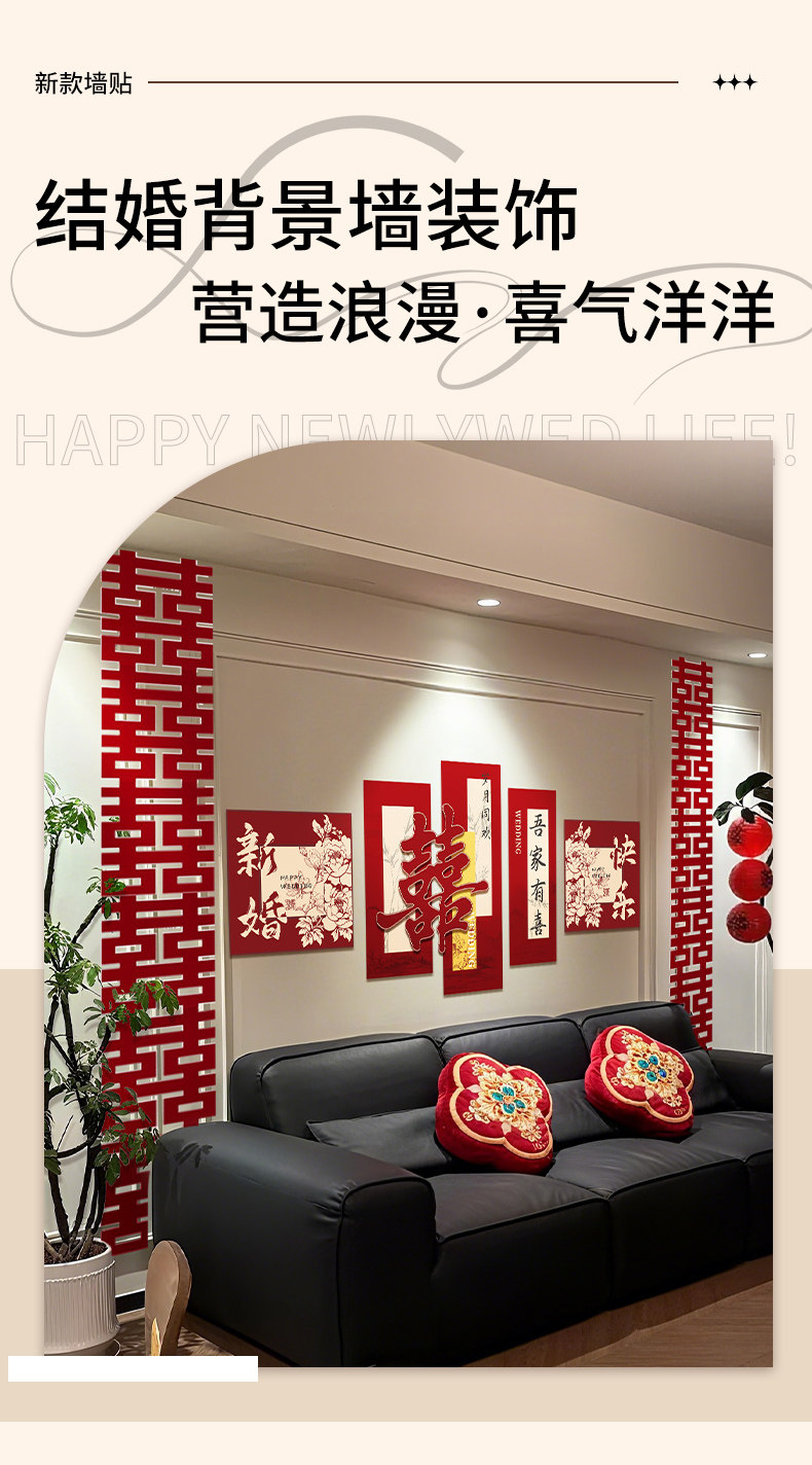 男女方结婚高级感新婚房间客厅背景墙贴布置婚礼创意喜字装饰套装