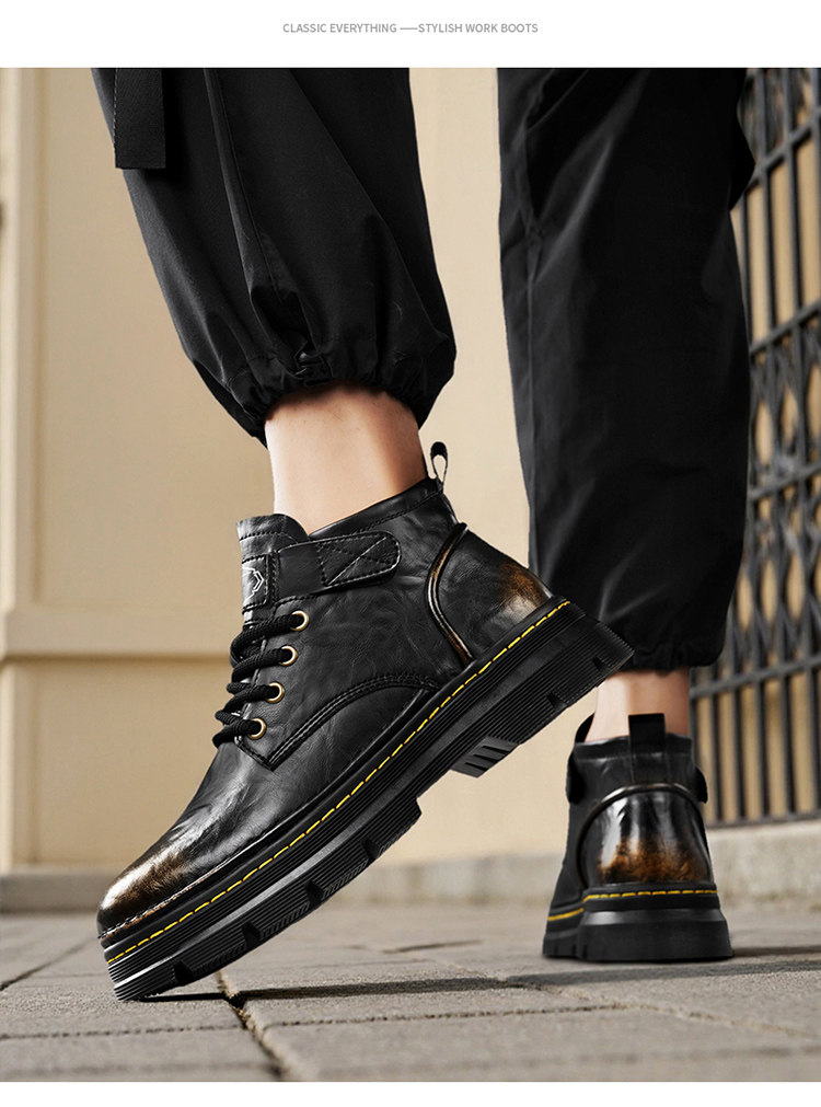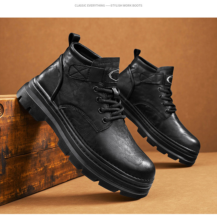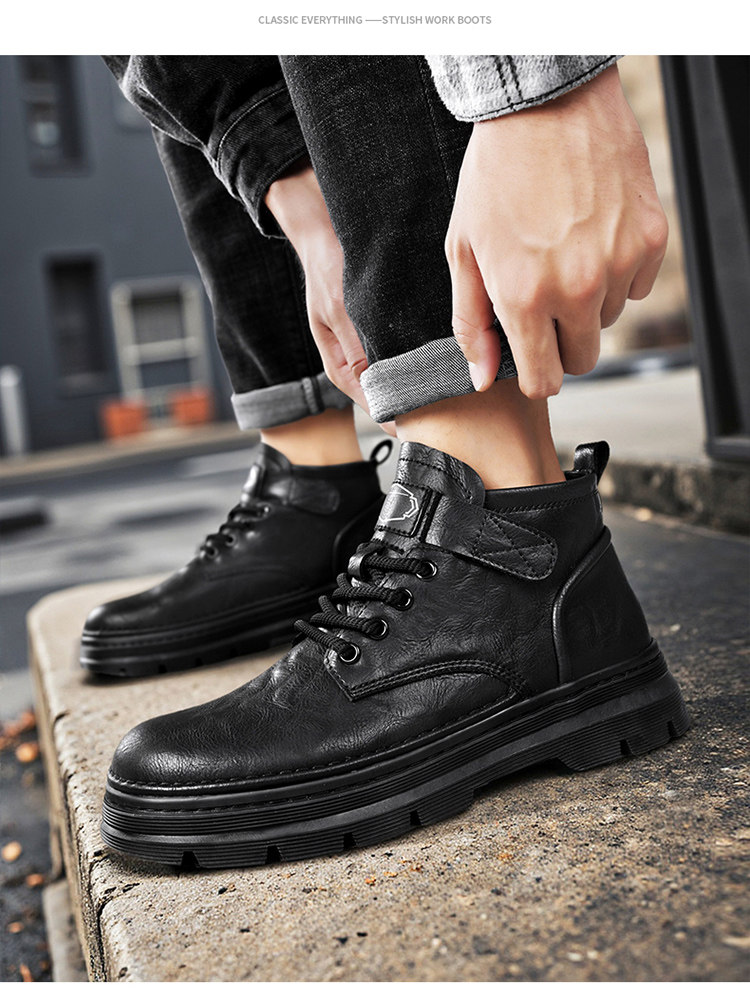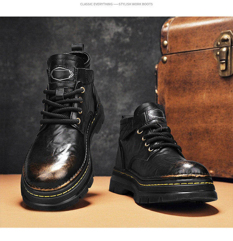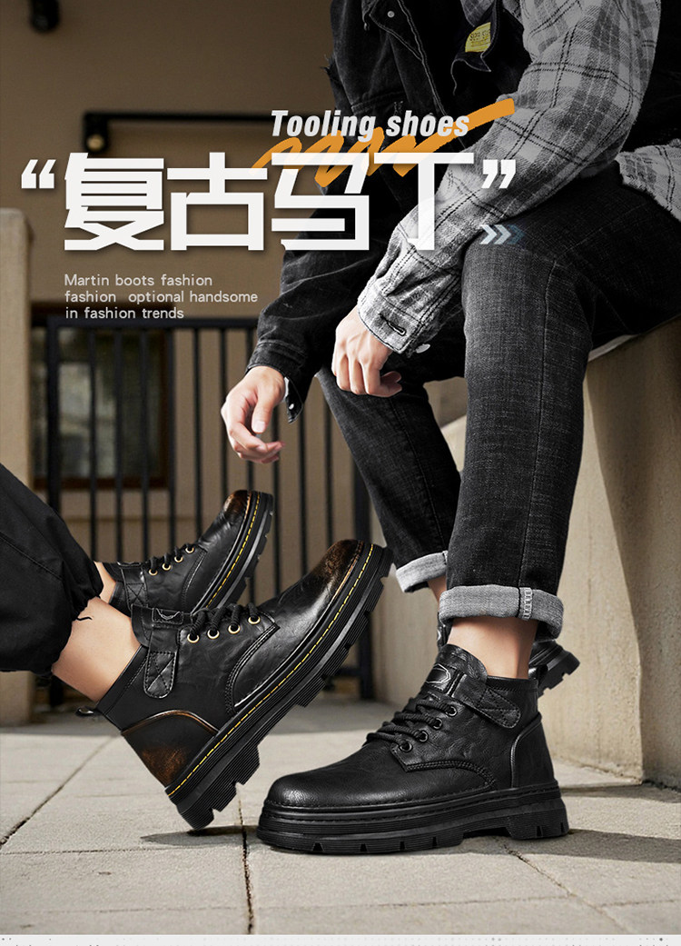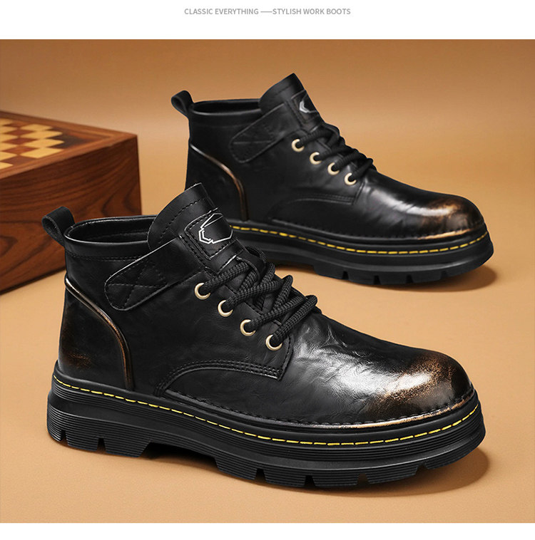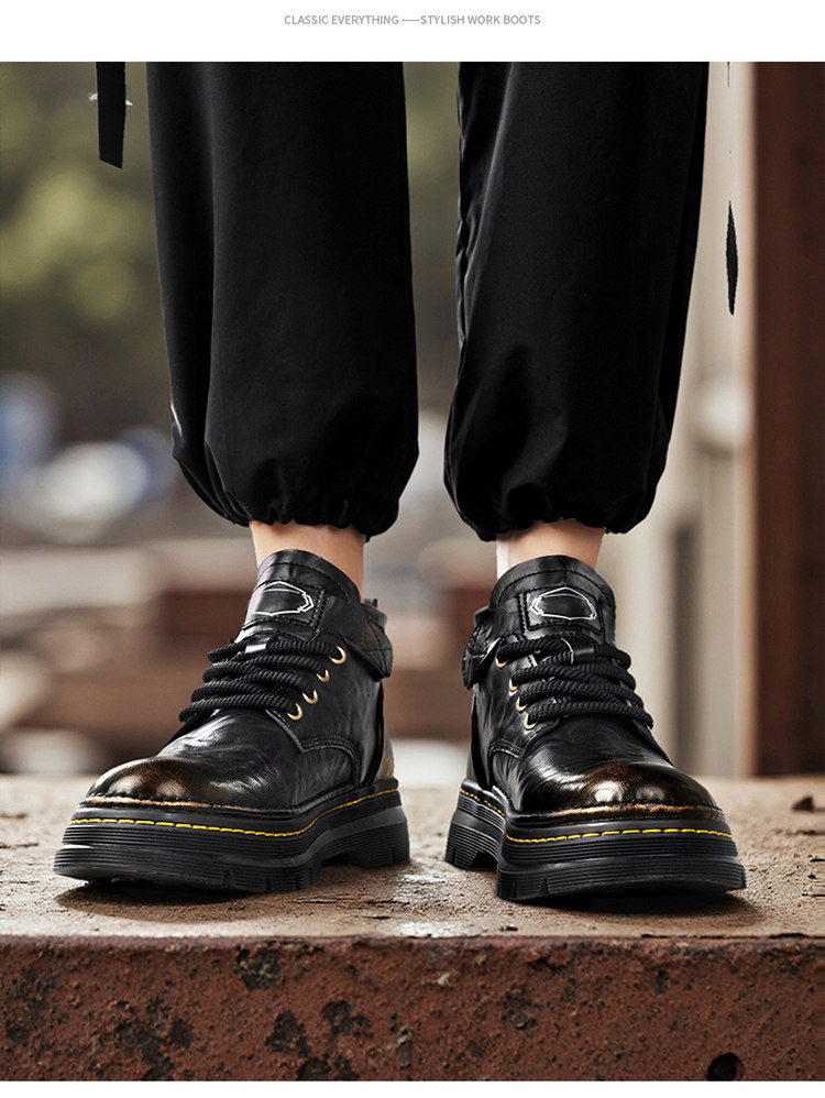 Augu Shiden Martin Boots Men's 2025 New Winter Retro British Style High-Top Work Boots Men's Leather Shoes
