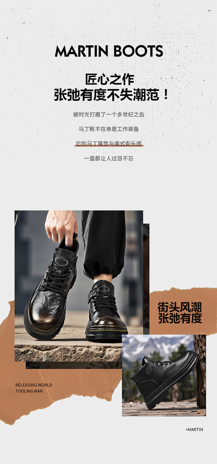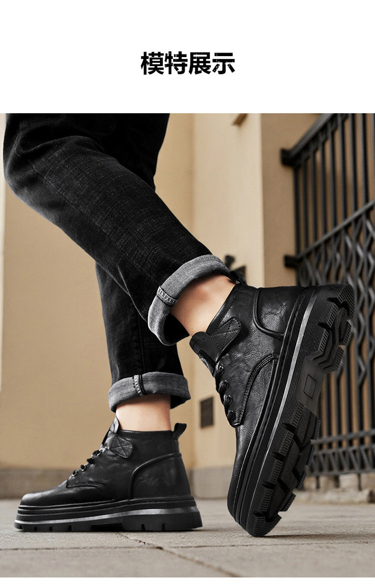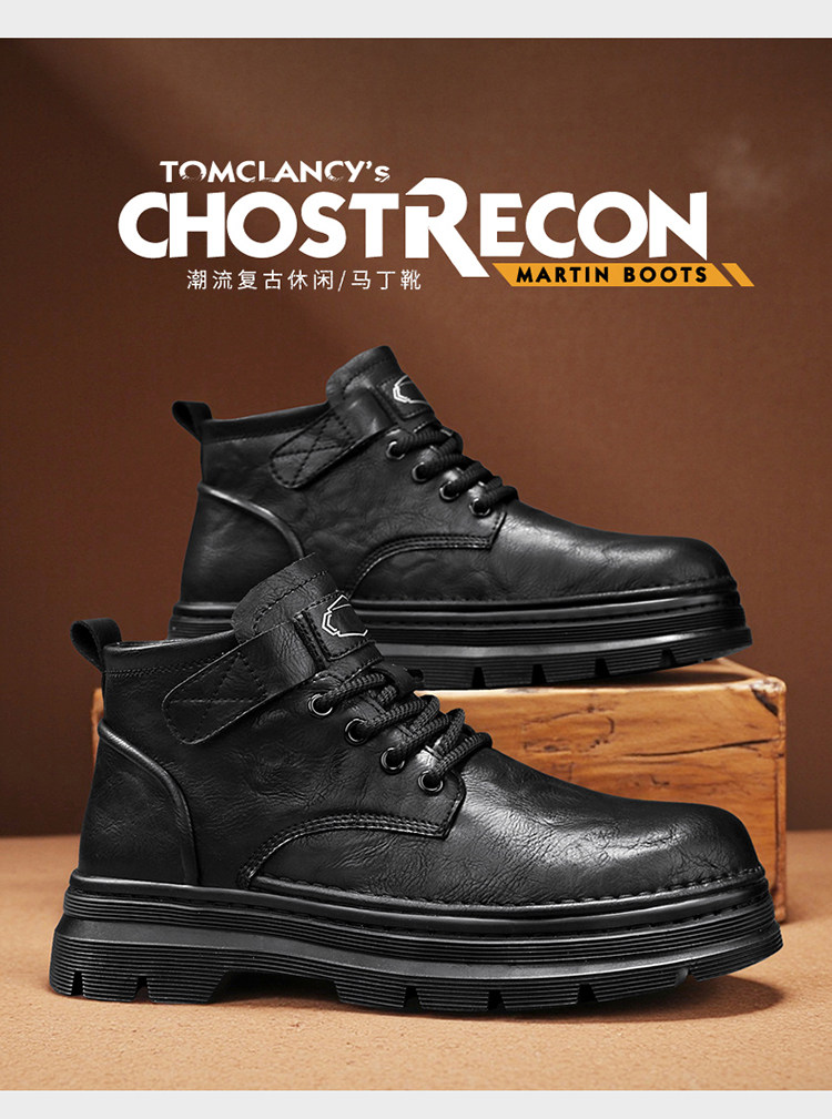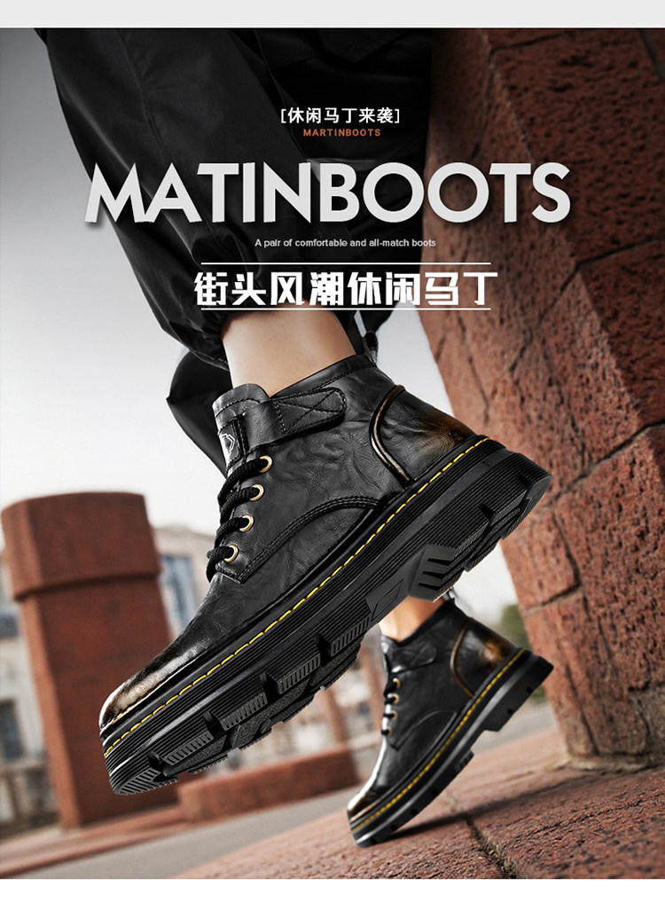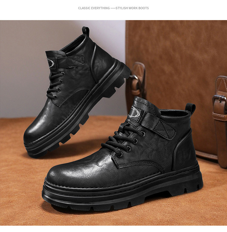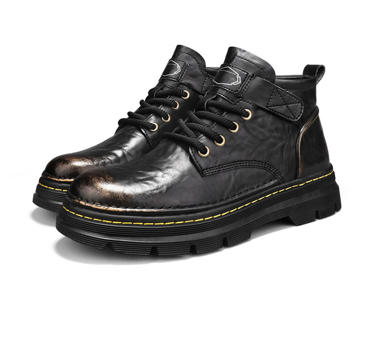 Augu Shiden Martin Boots Men's 2025 New Winter Retro British Style High-Top Work Boots Men's Leather Shoes