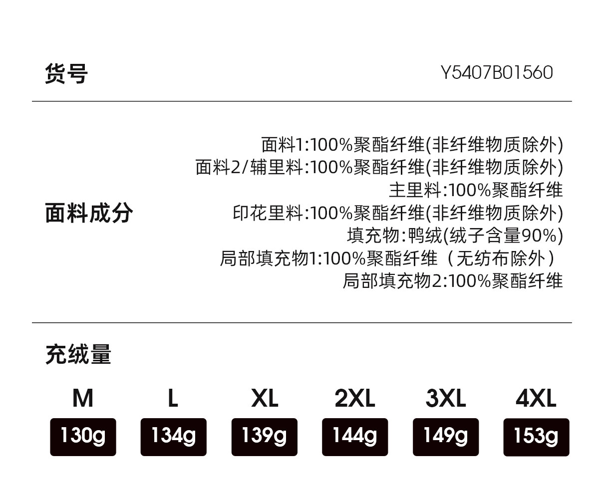 Down Filling Amount 130-153g