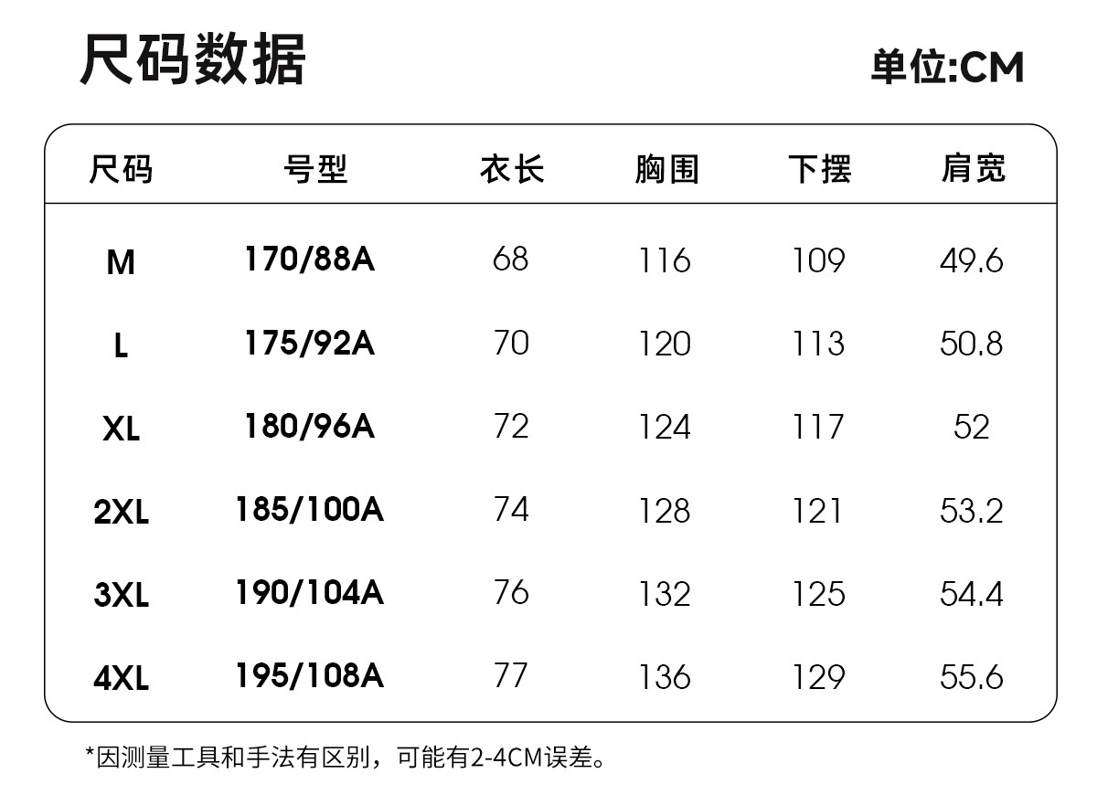 Size 170/M,175/L,180/XL,185/2XL,190/3XL,195/4XL