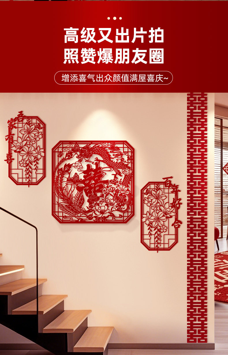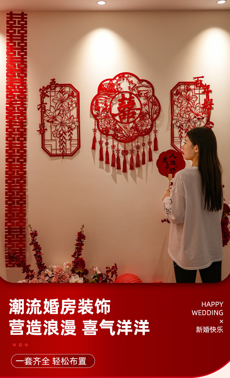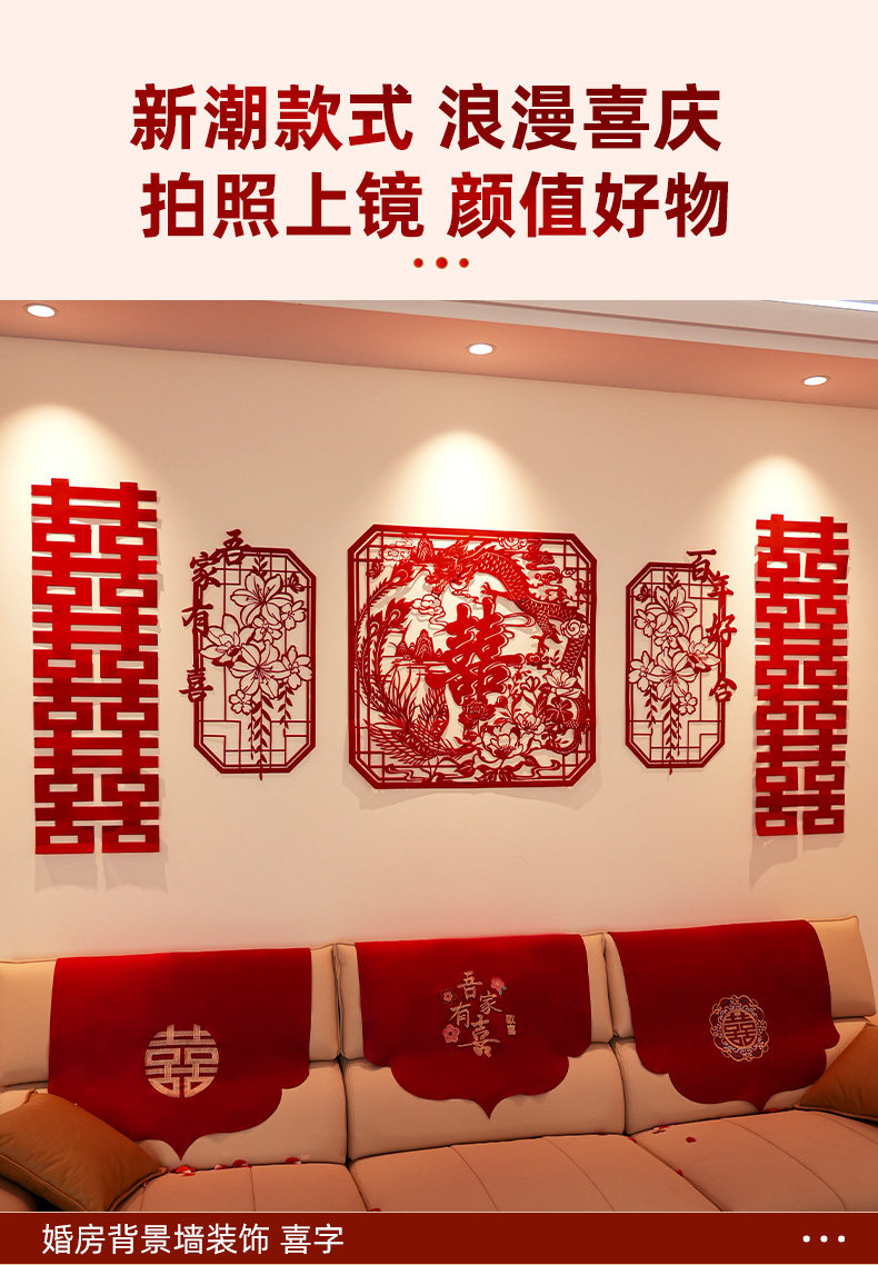 创意镂空喜字结婚布置农村婚房楼梯扶手背景墙高级感装饰婚礼套装