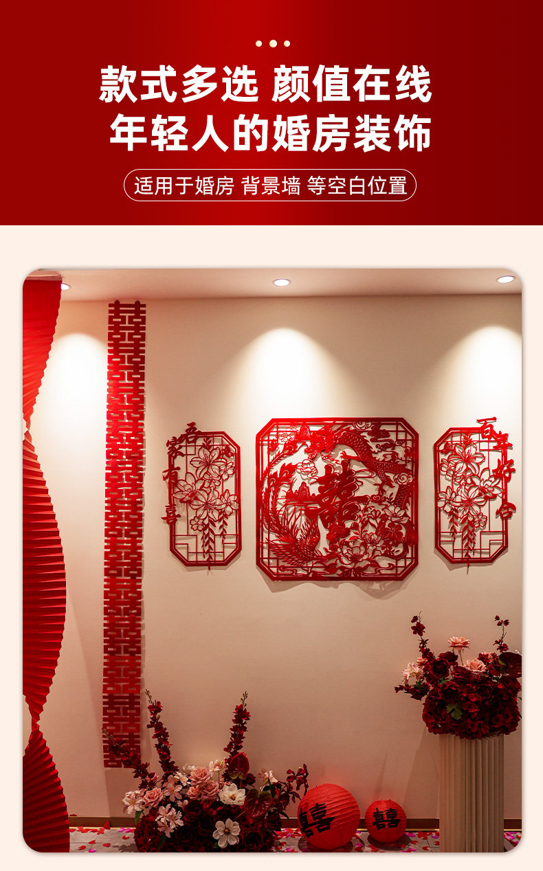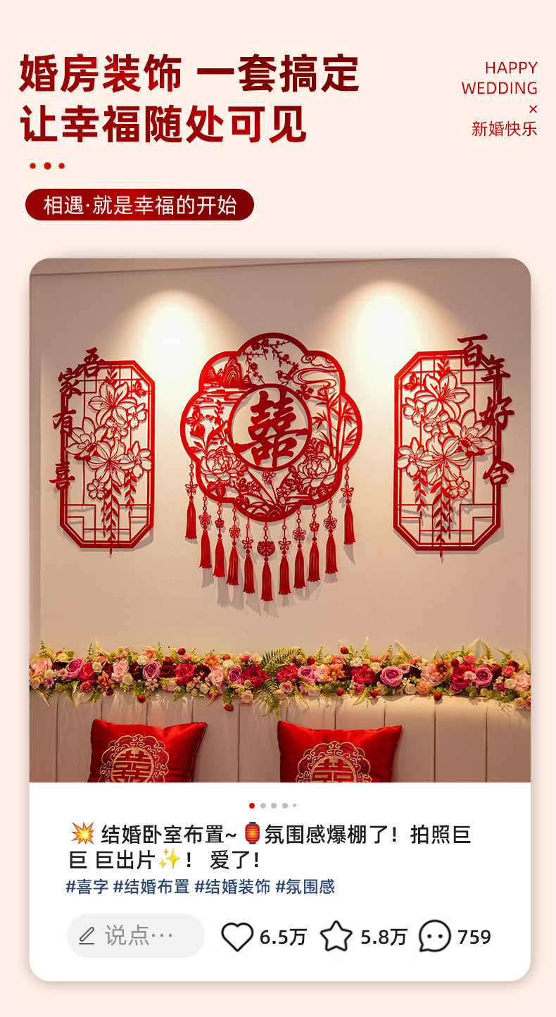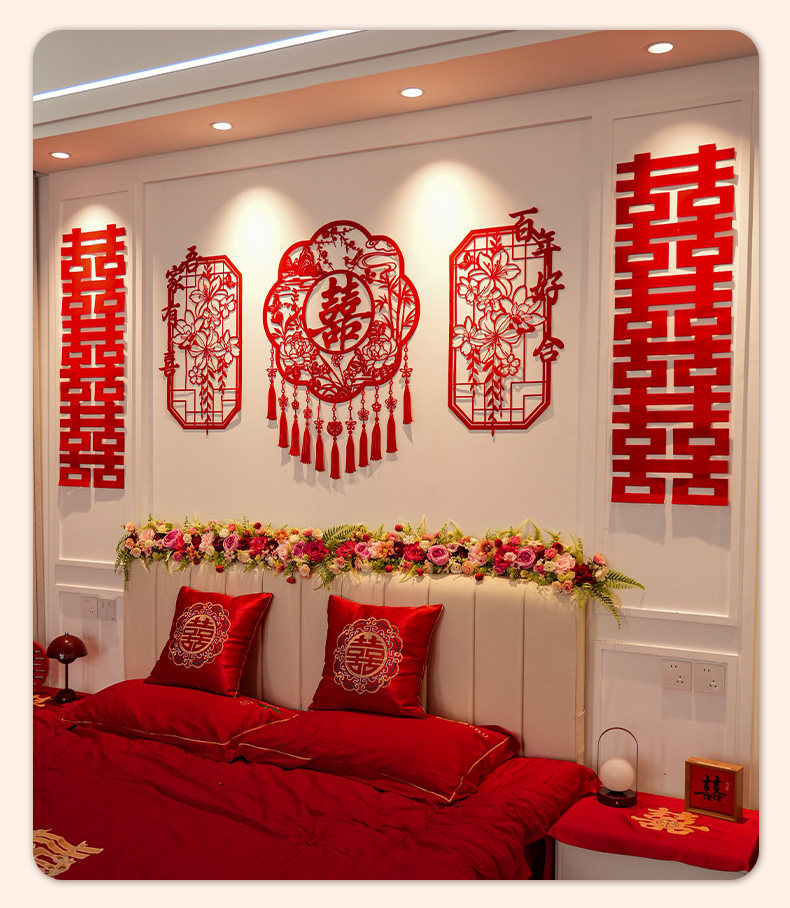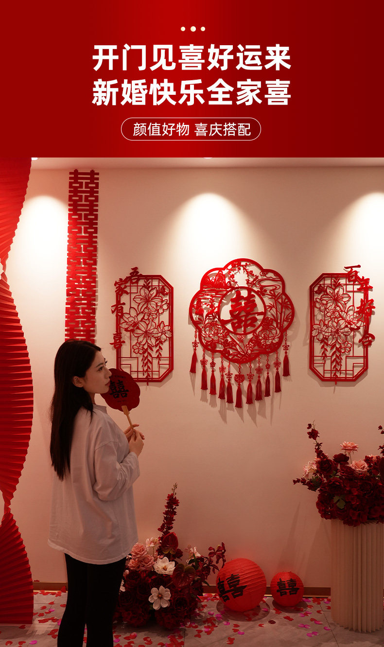 创意镂空喜字结婚布置农村婚房楼梯扶手背景墙高级感装饰婚礼套装