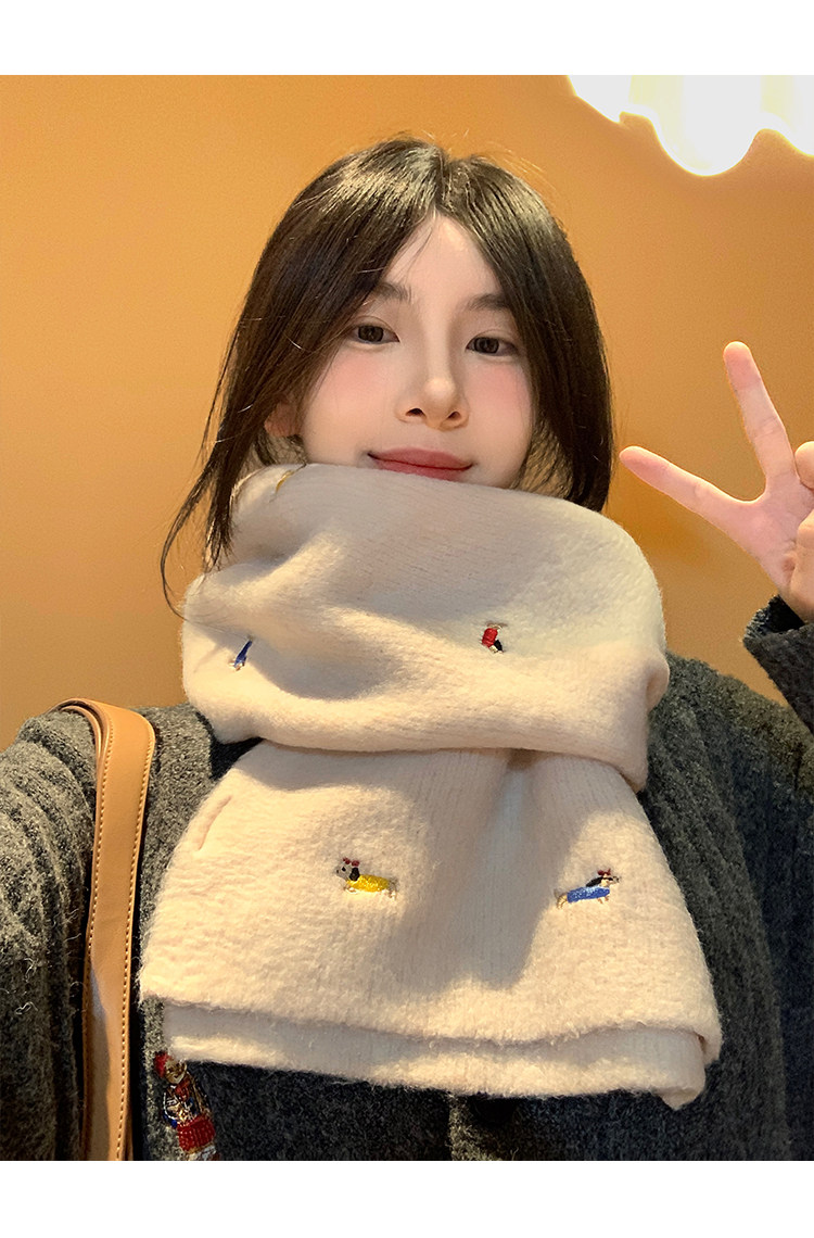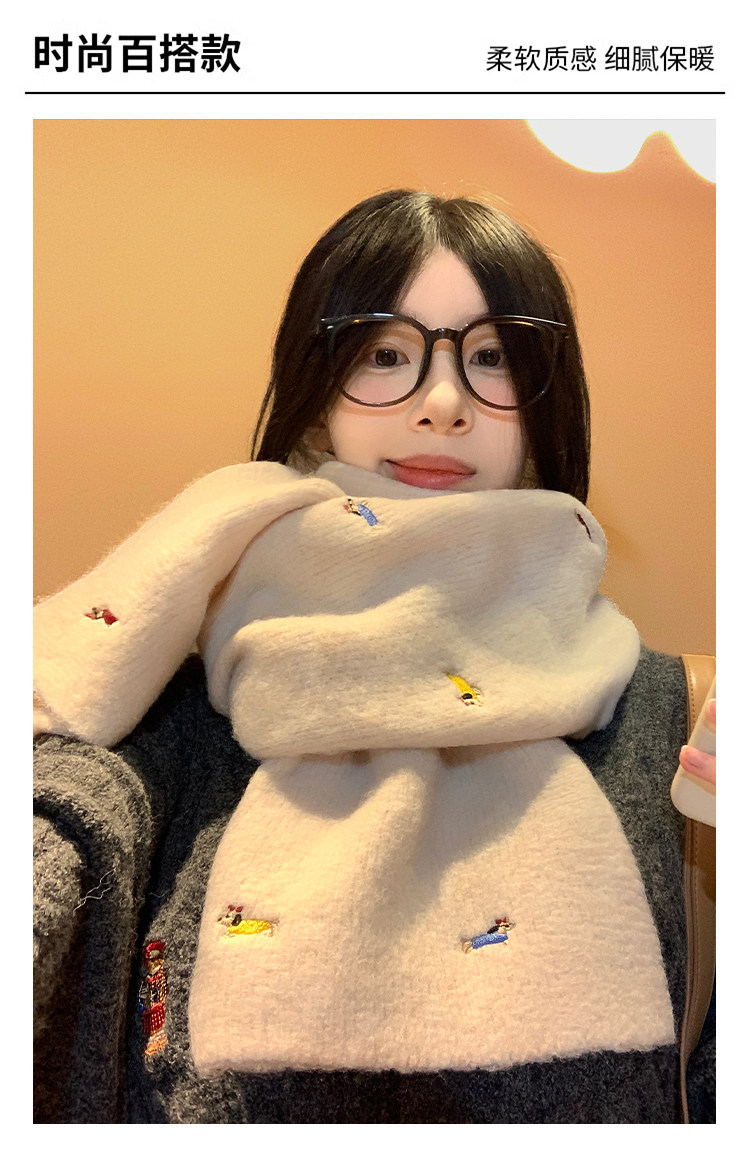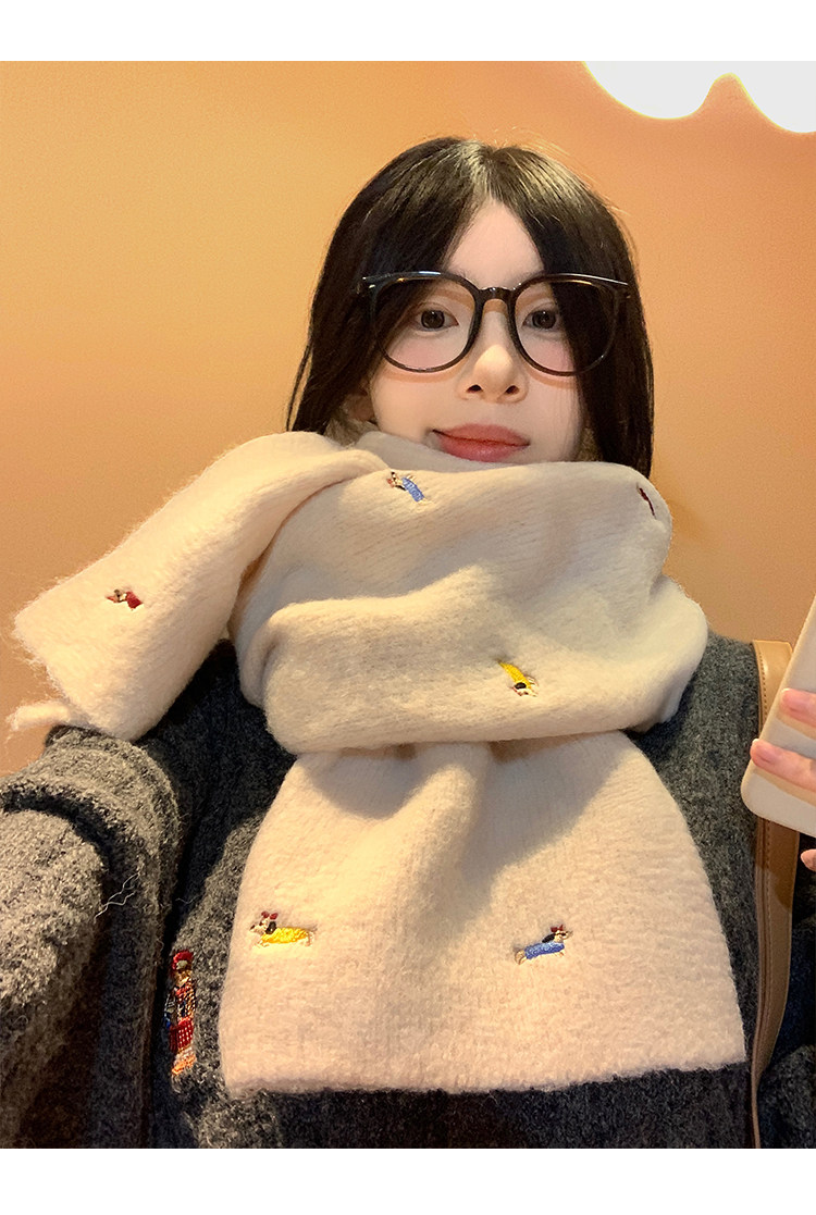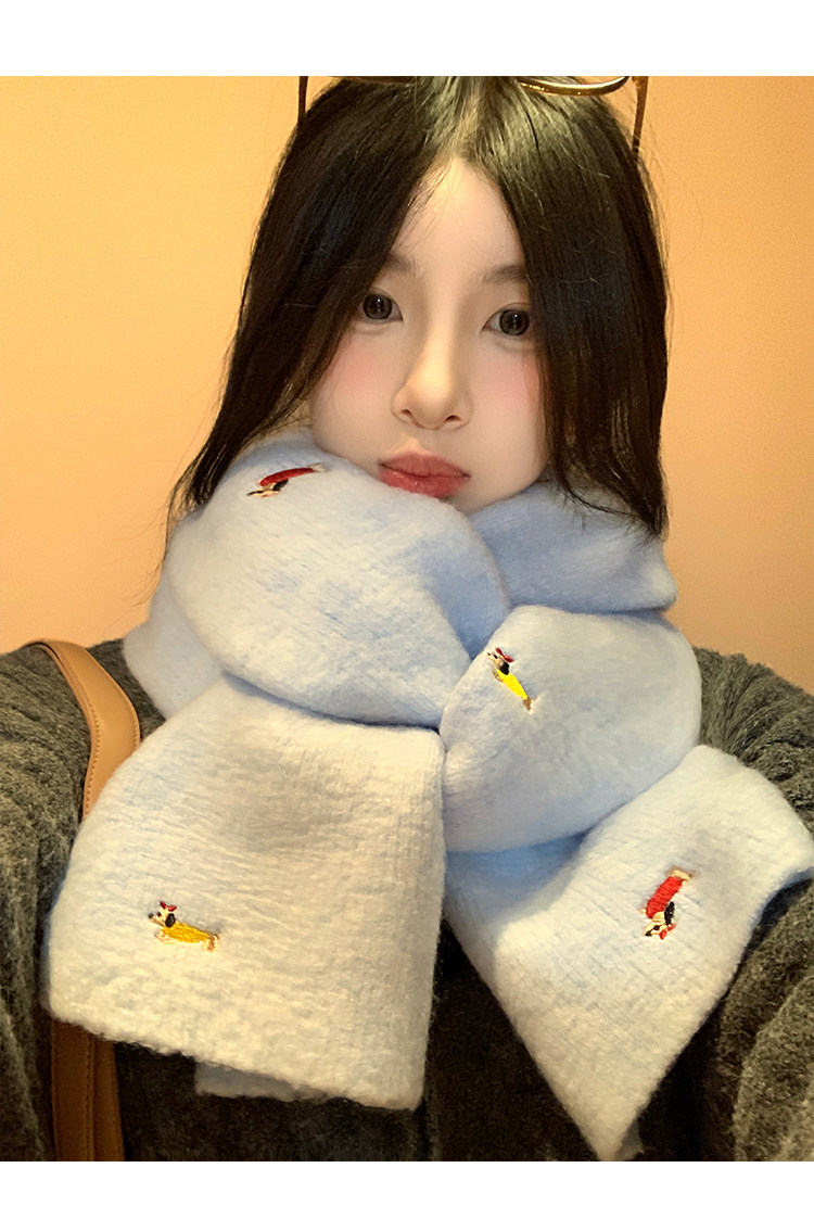 Wool Dachshund Dog Knitted Scarf for Women, Autumn and Winter 2025 New Korean Style, Cute and Warm Neck Warmer