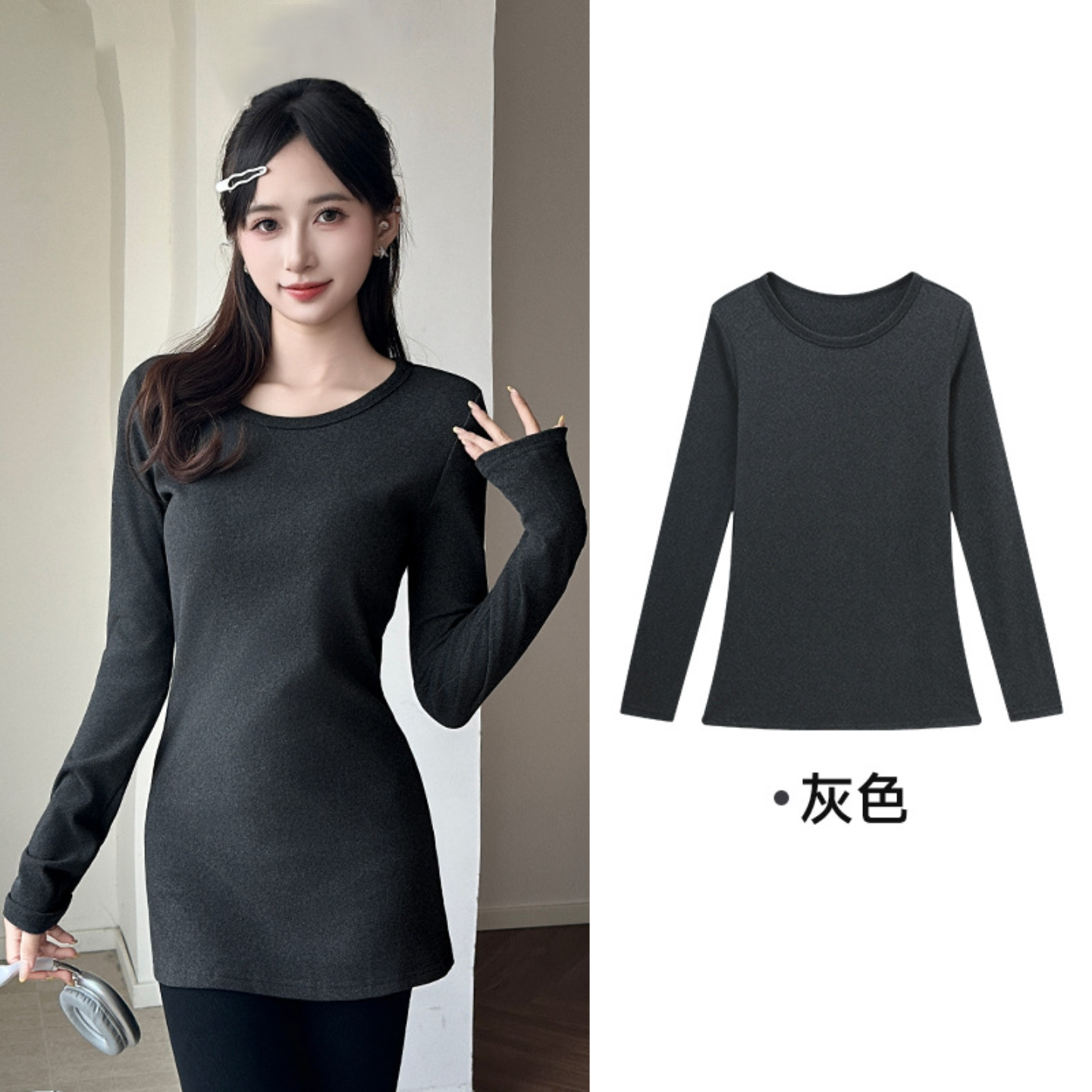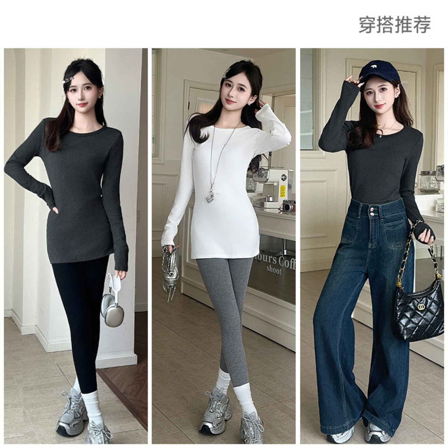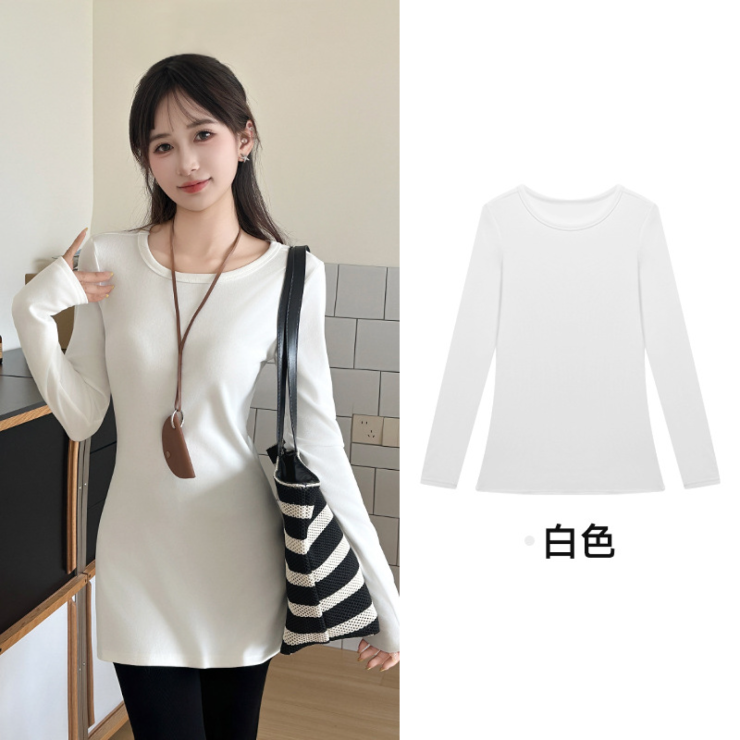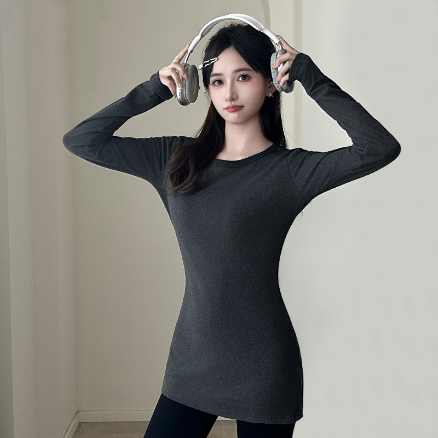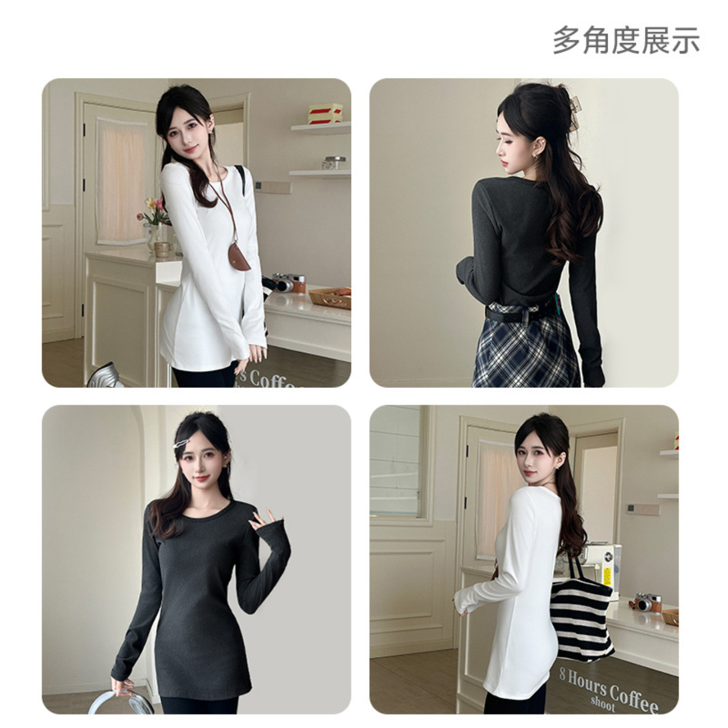 韩系慵懒松弛感中长款长袖T恤女秋季长款上衣修身显瘦内搭打底衫