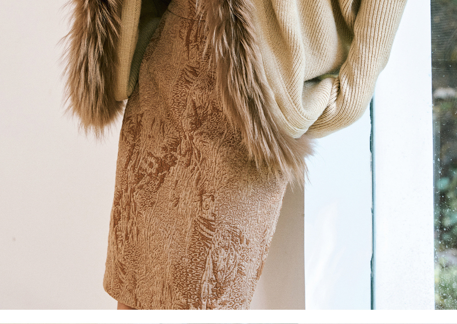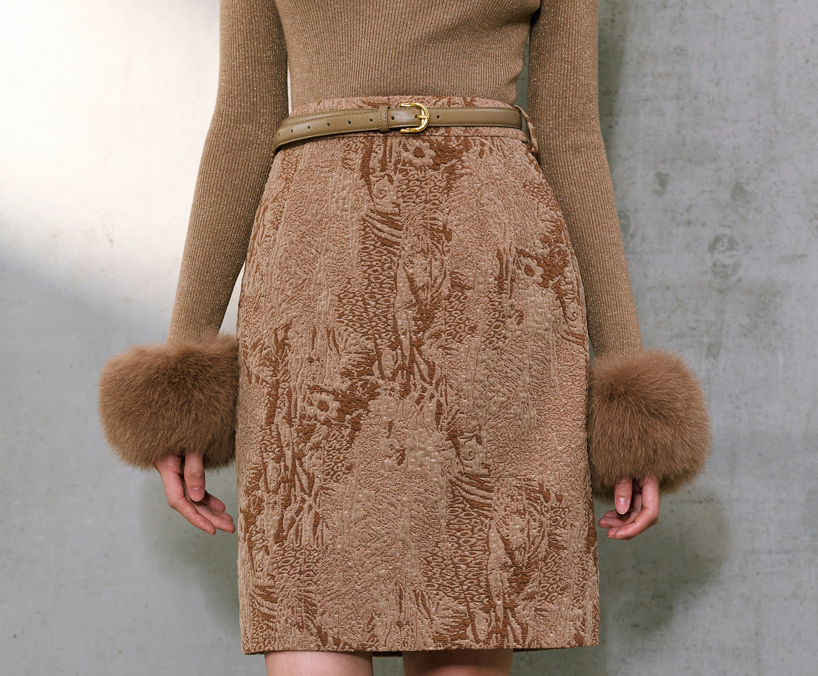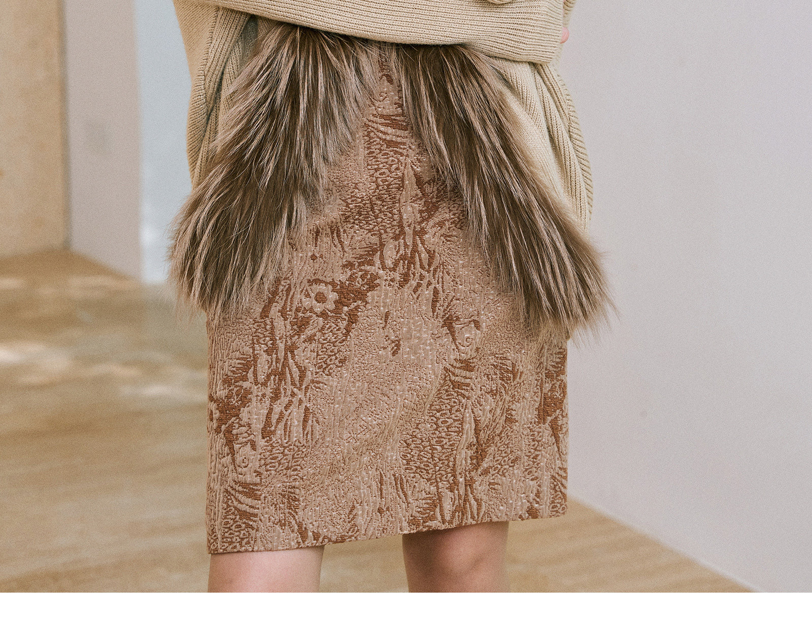 Wangxo|Micro-Shiny Silk Stereo Jacquard Bubble Wrinkle Composite Process|Simple Knee-Length Straight Skirt