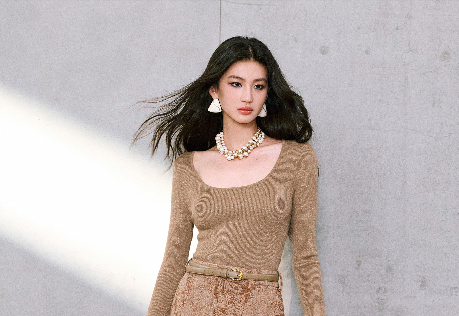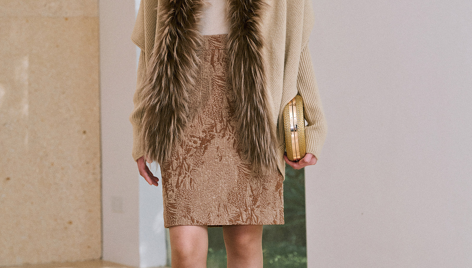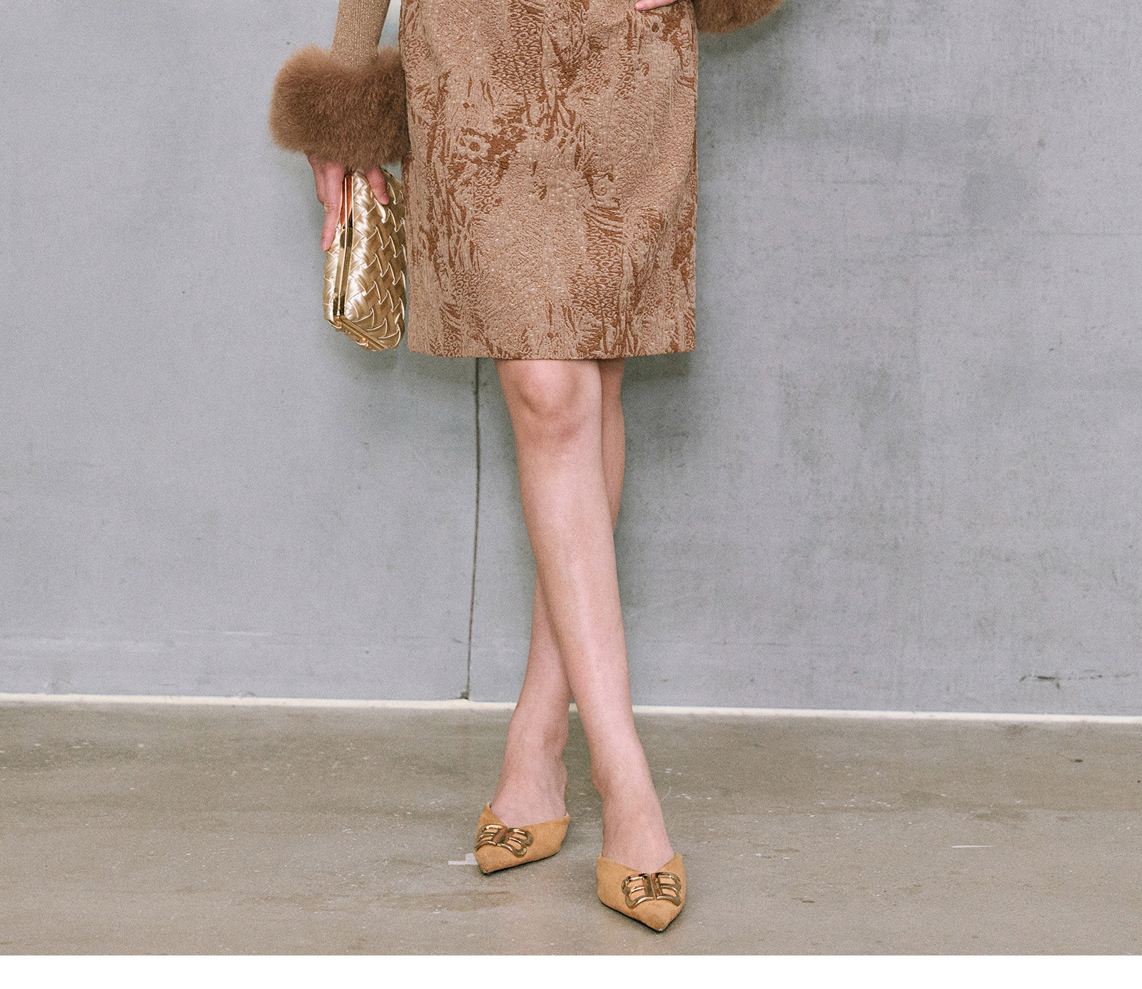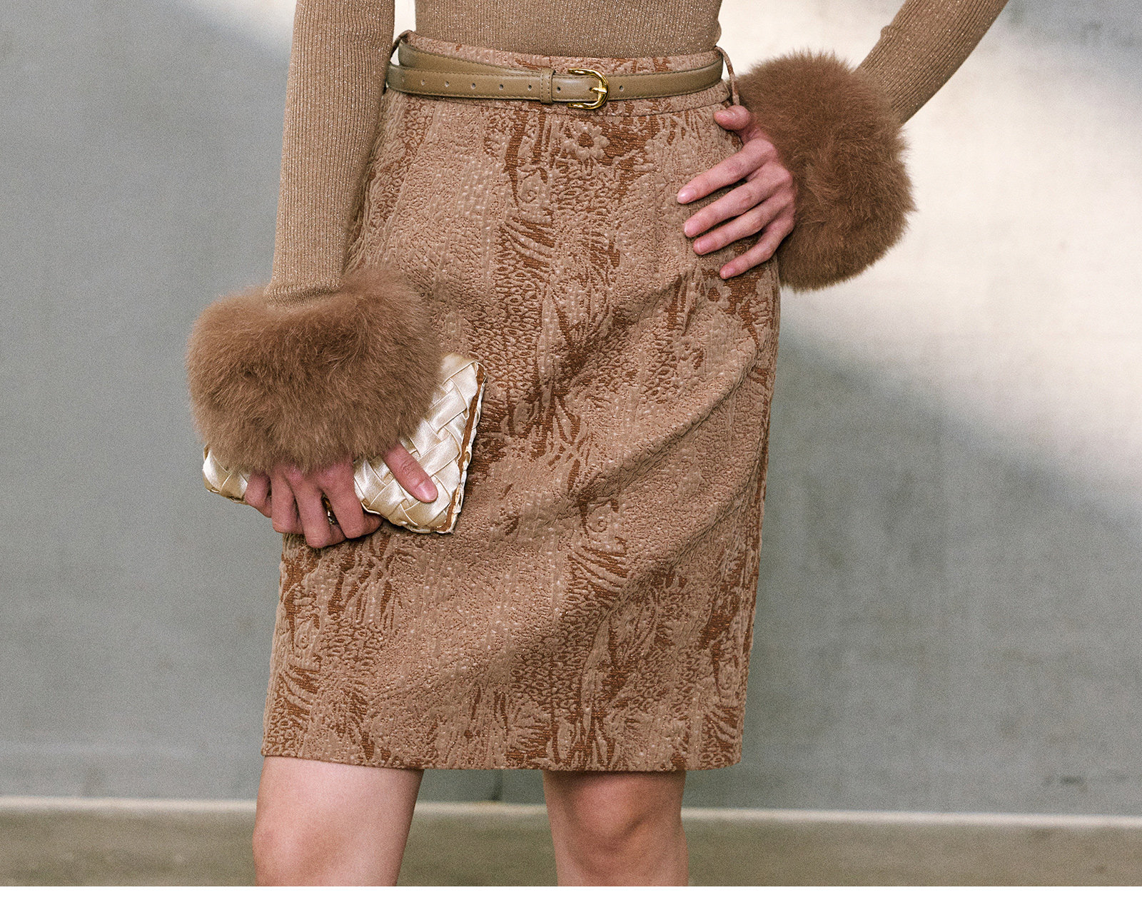 Wangxo|Micro-Shiny Silk Stereo Jacquard Bubble Wrinkle Composite Process|Simple Knee-Length Straight Skirt