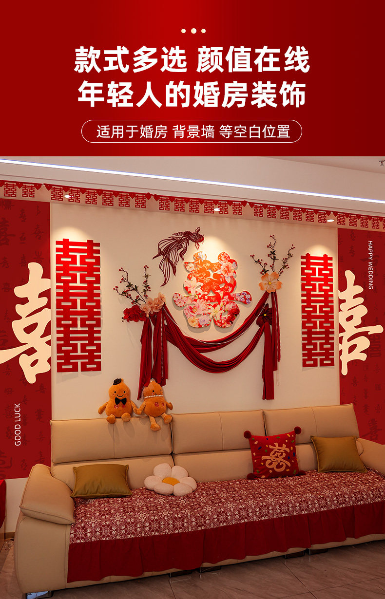 Wedding Celebration Character Kt Board Background Wall for the Newlyweds' Room, New Style Decoration for the Living Room Sofa, Complete Set