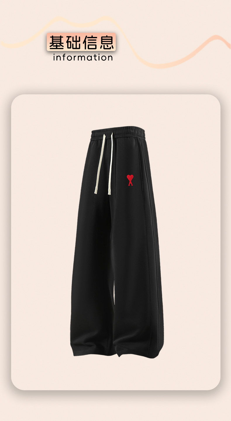 Ami Aiedr Official Straight-Leg Casual Pants for Men and Women, Couple's Autumn and Winter Trendy Brand Loose Wide-Leg Drapey Sports Sweatpants