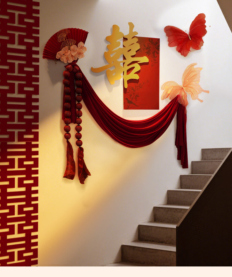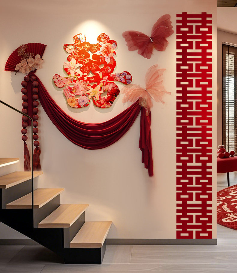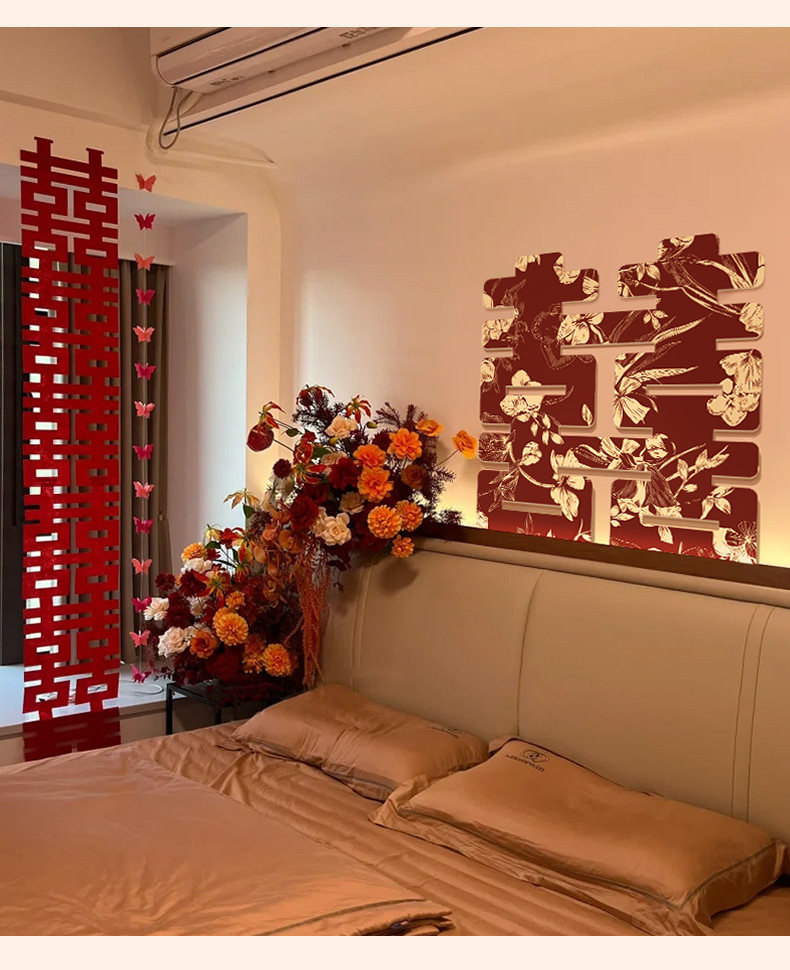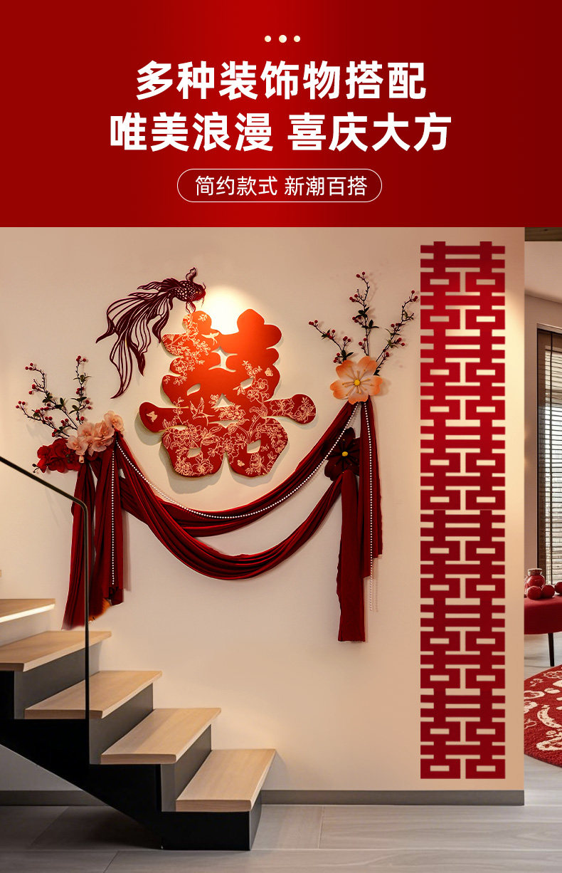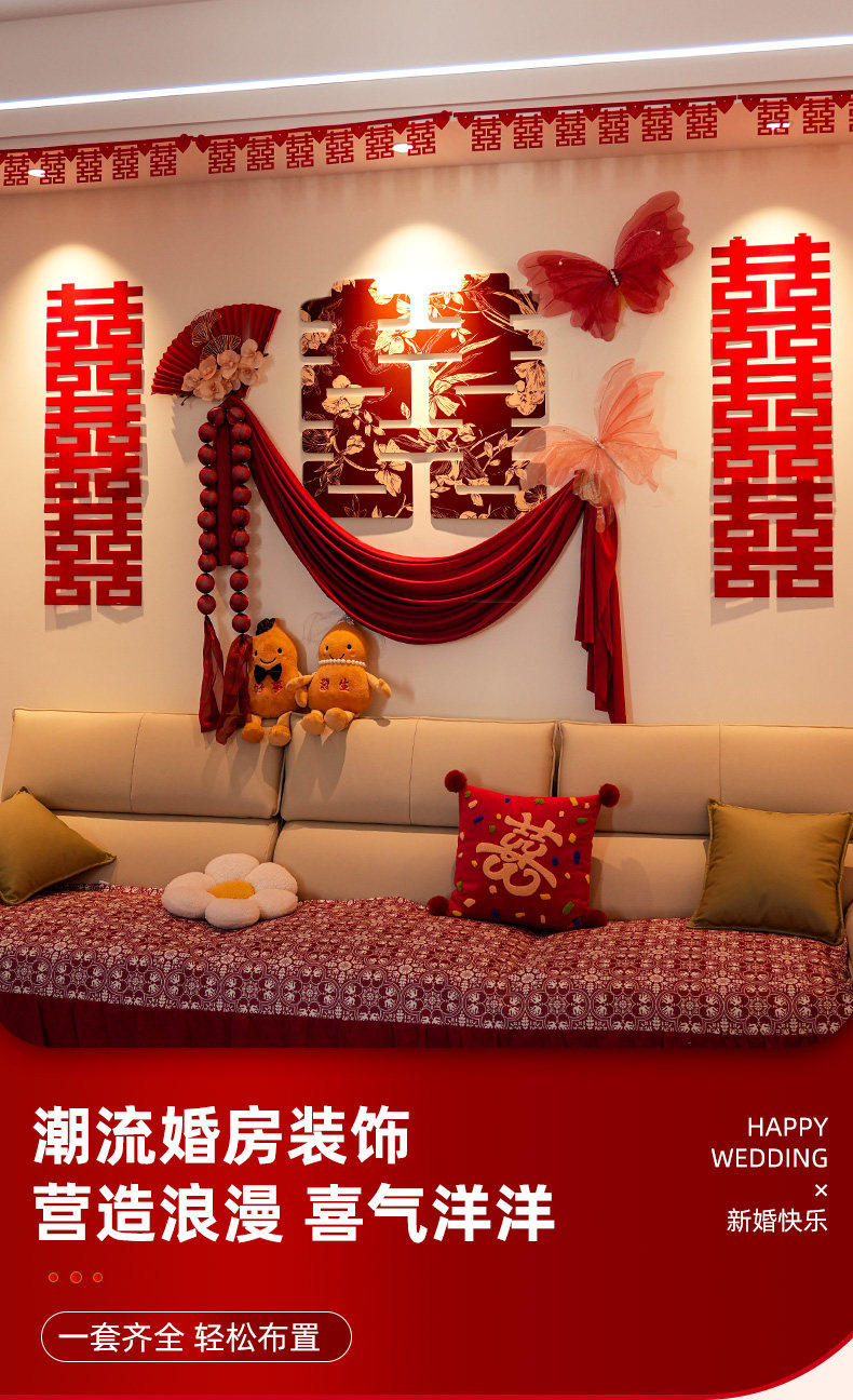 结婚礼喜字kt板背景墙男女方新婚房间新款布置卧室床头装饰全套装