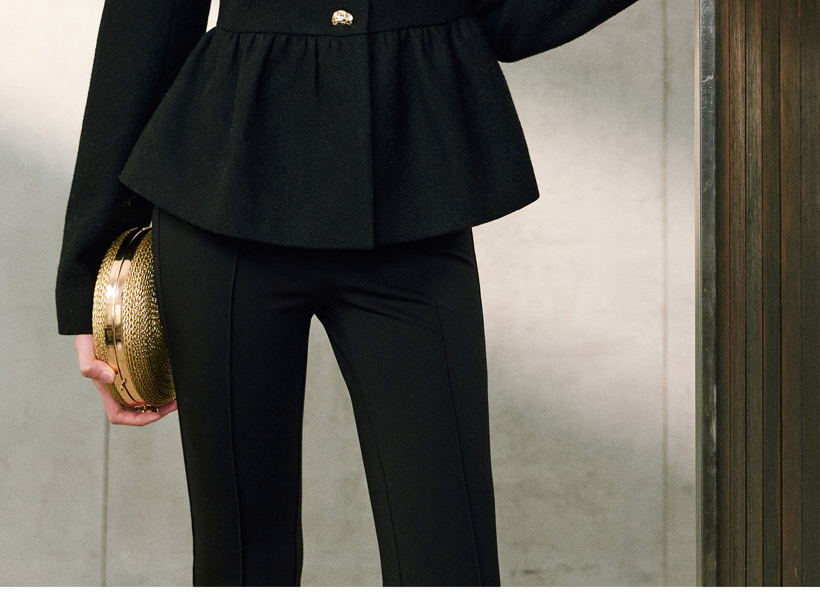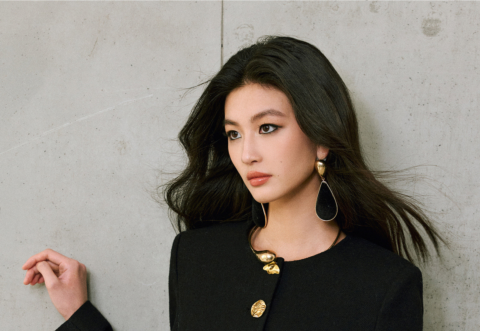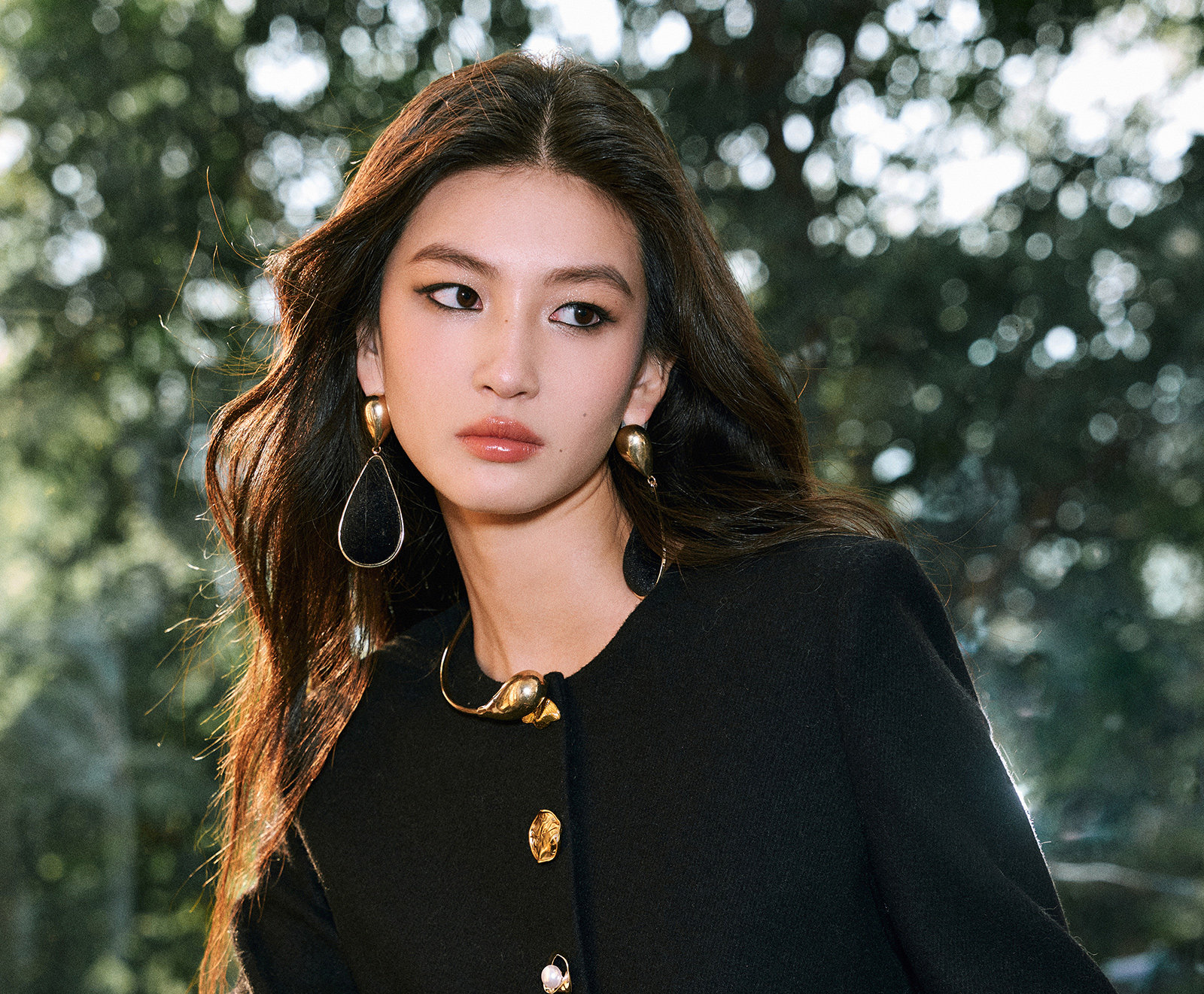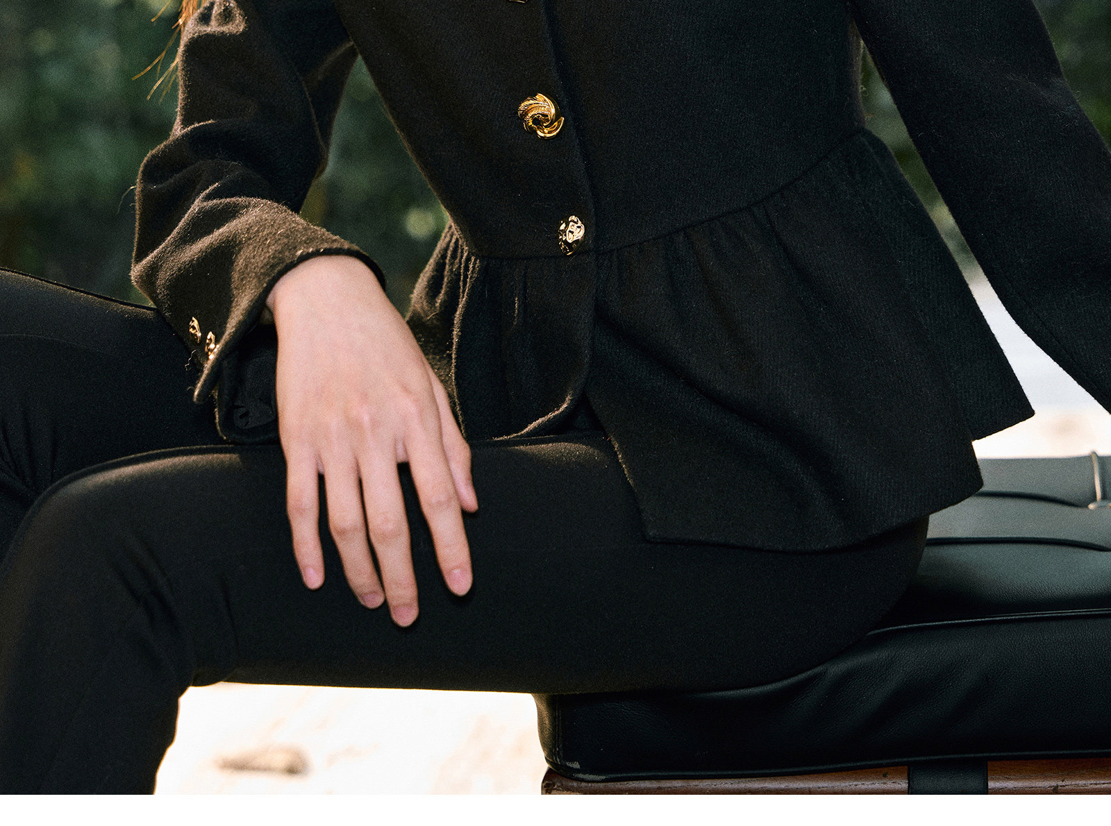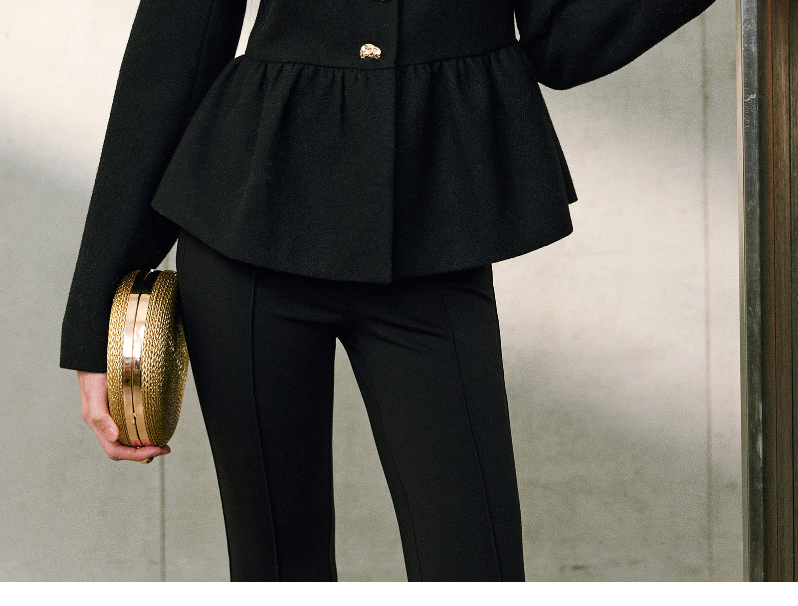 Wangxo|Premium Custom-Woven Woolen Fabric|Floral Waist-Cinching Irregular Buttoned Round-Neck Short Coat