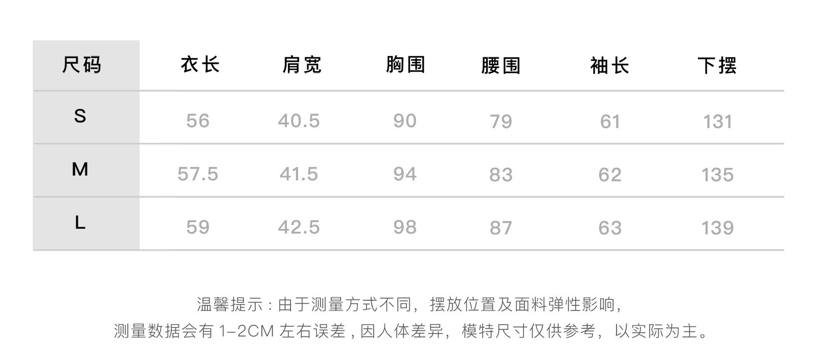 Size (cm) 42 44 46 48 50