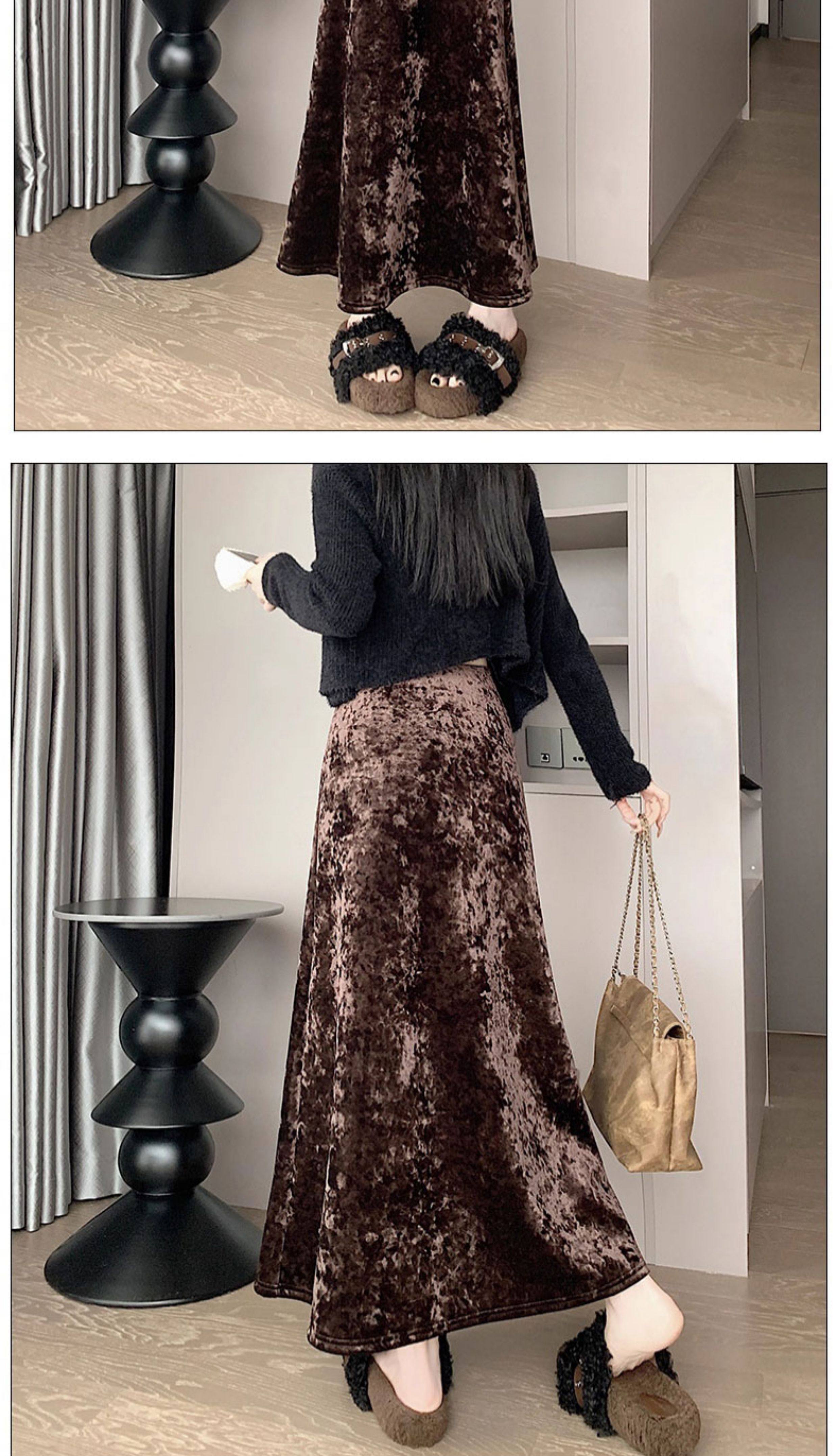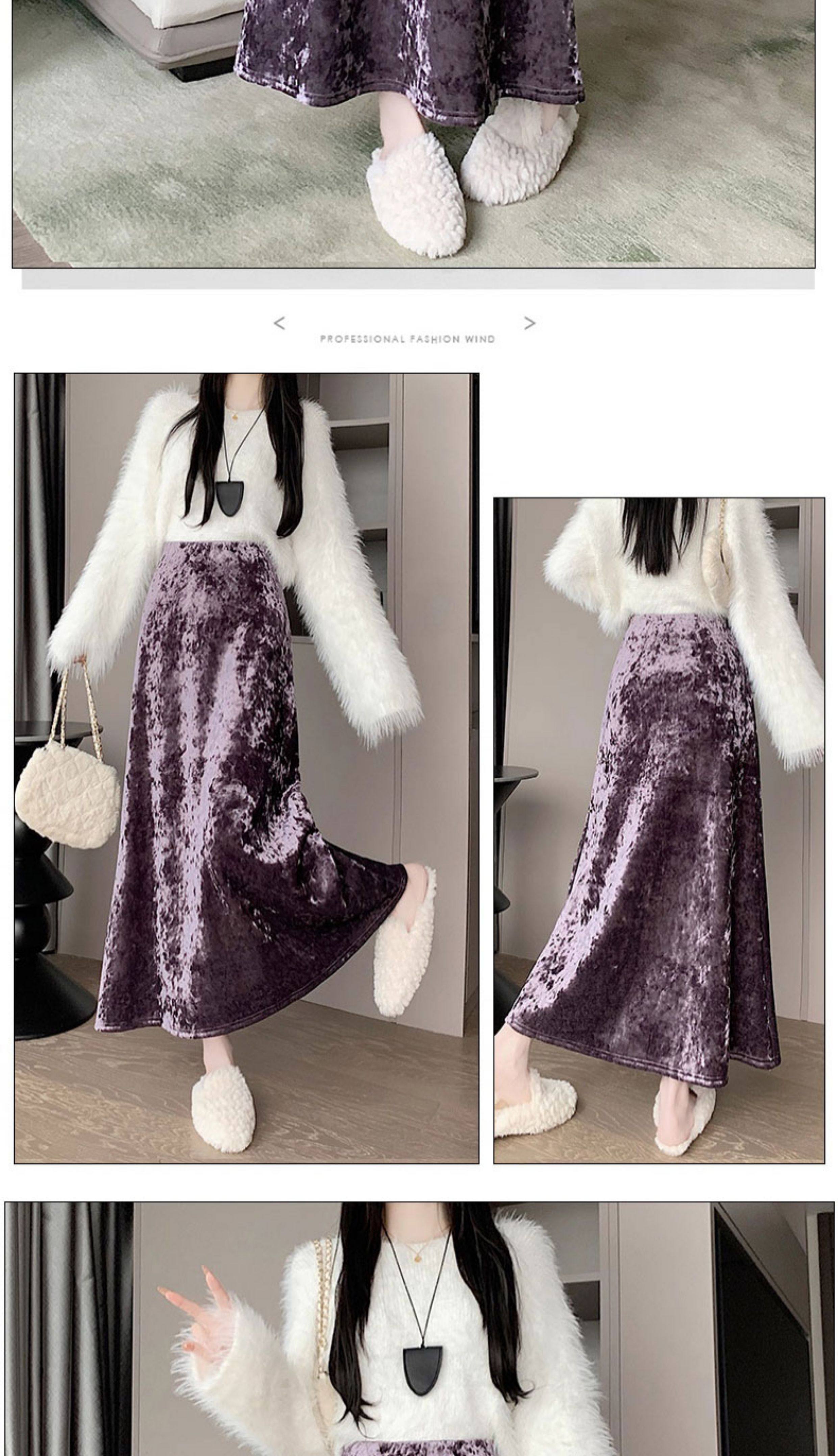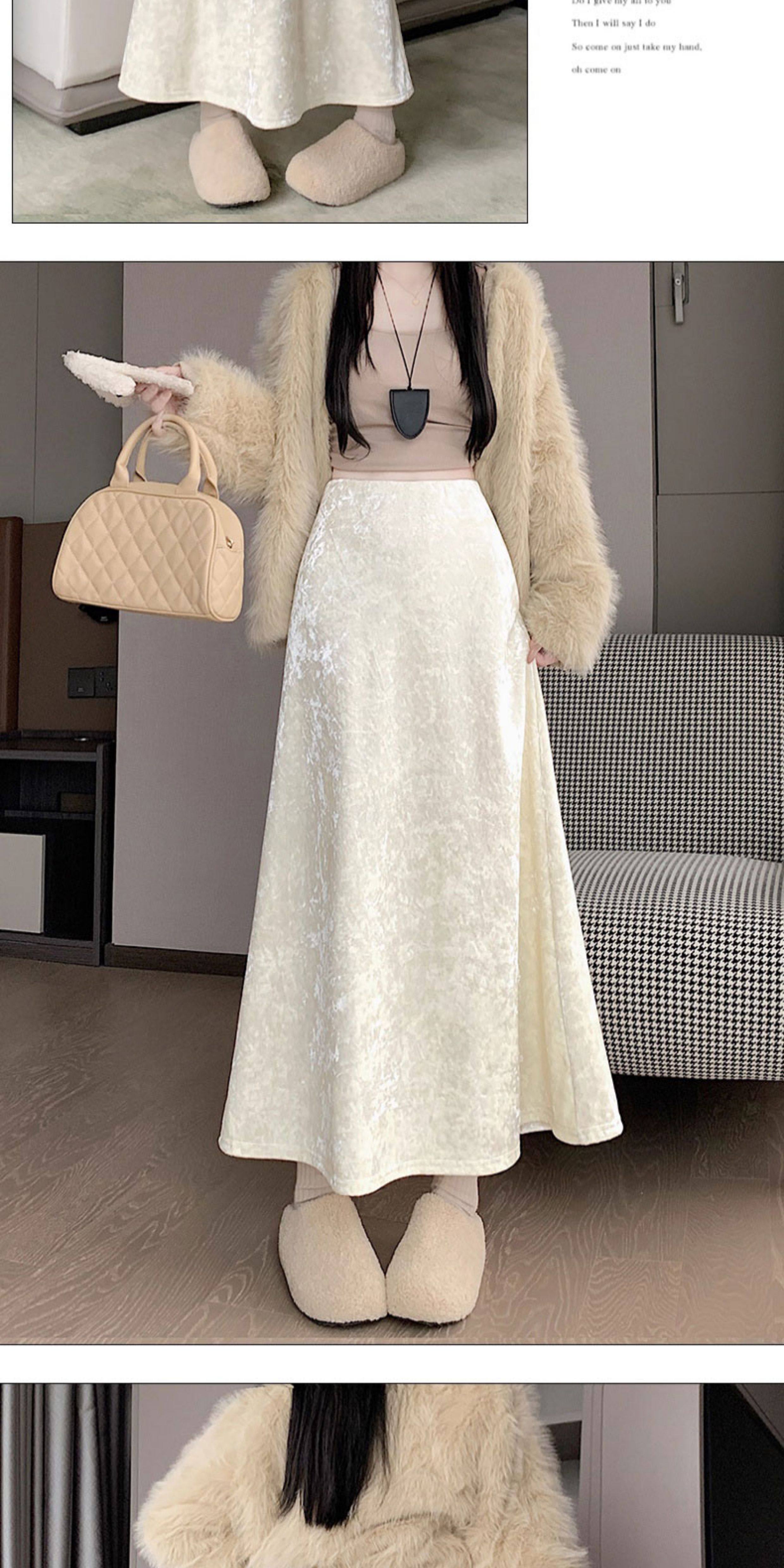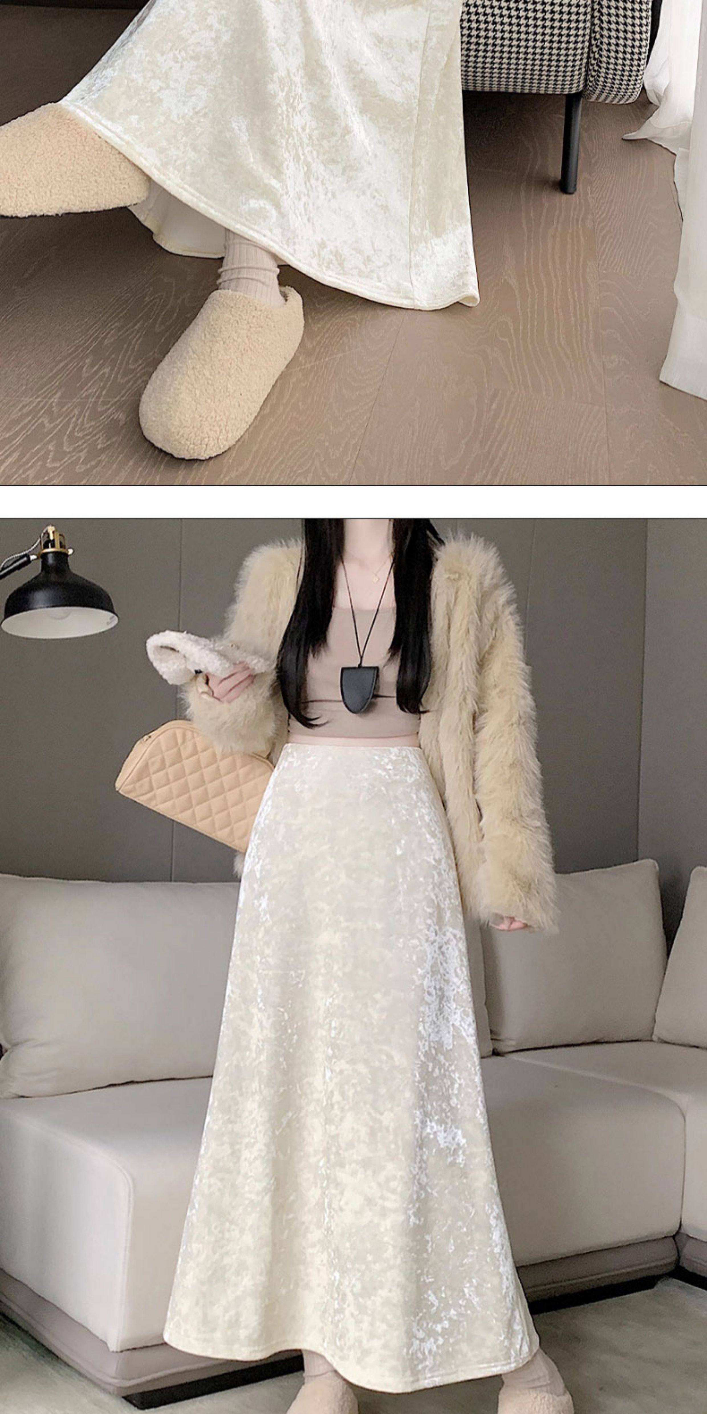 白色加绒加厚丝绒包臀半身裙女秋冬季小个子中长款高腰a字鱼尾裙
