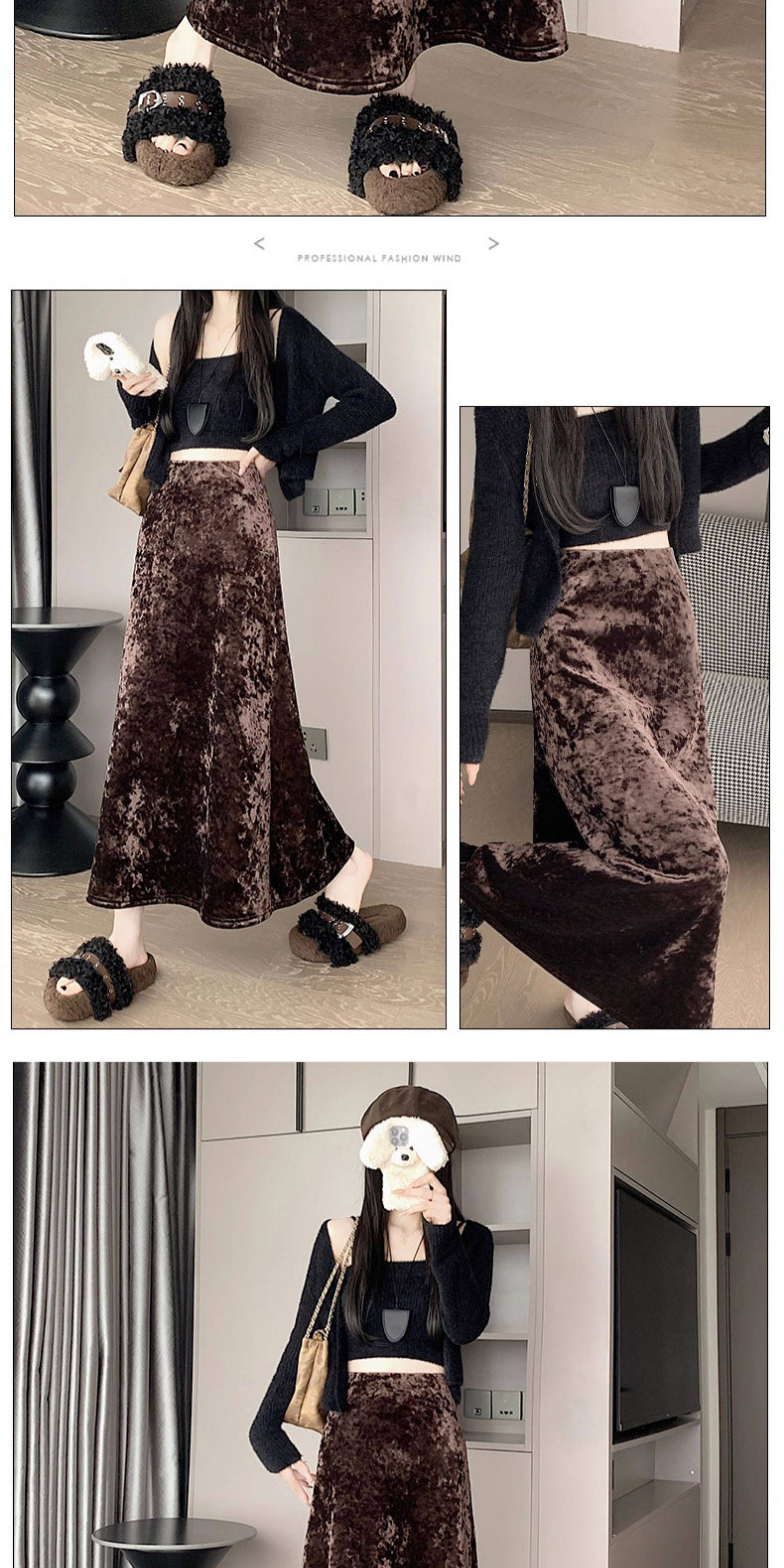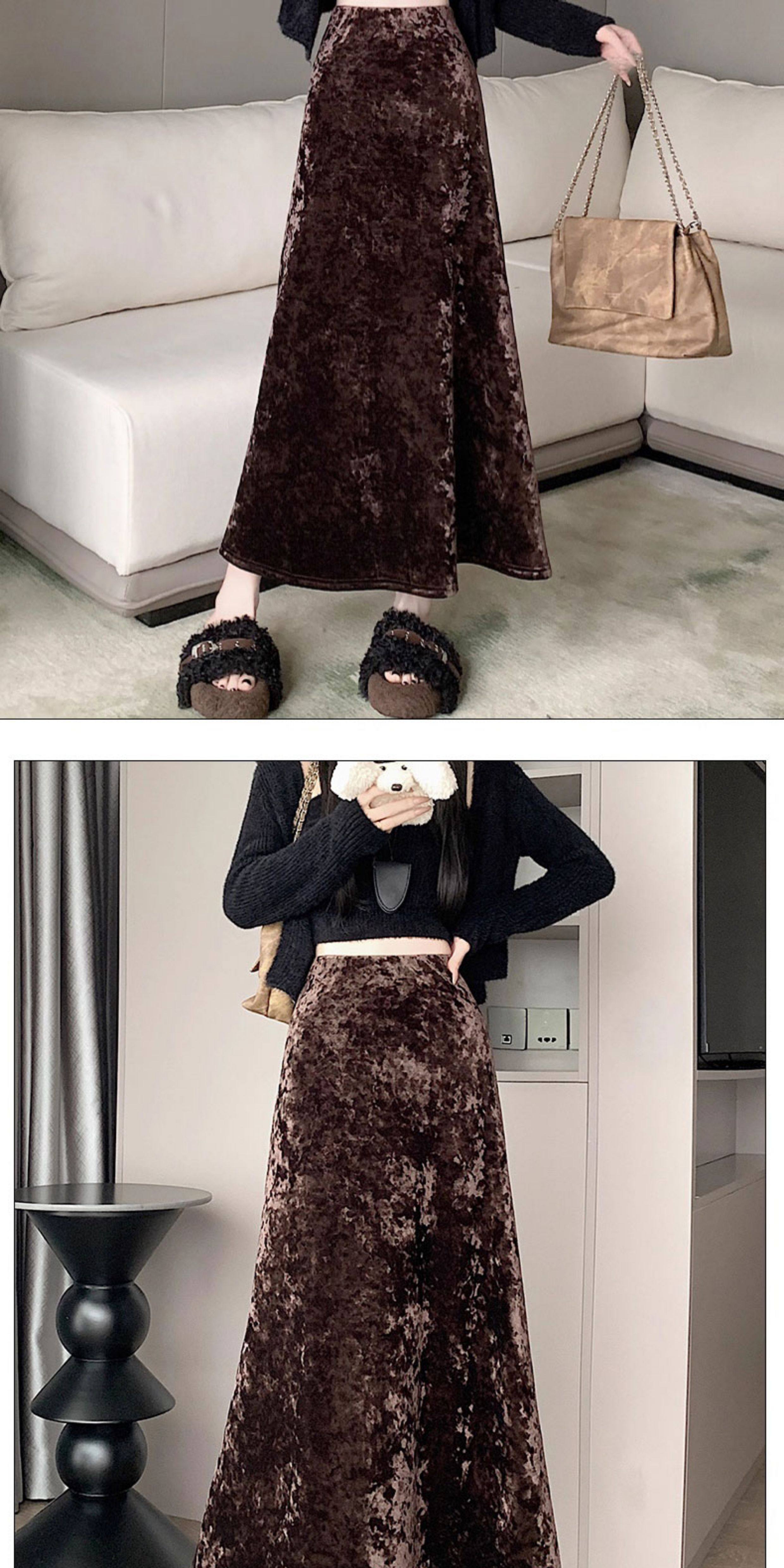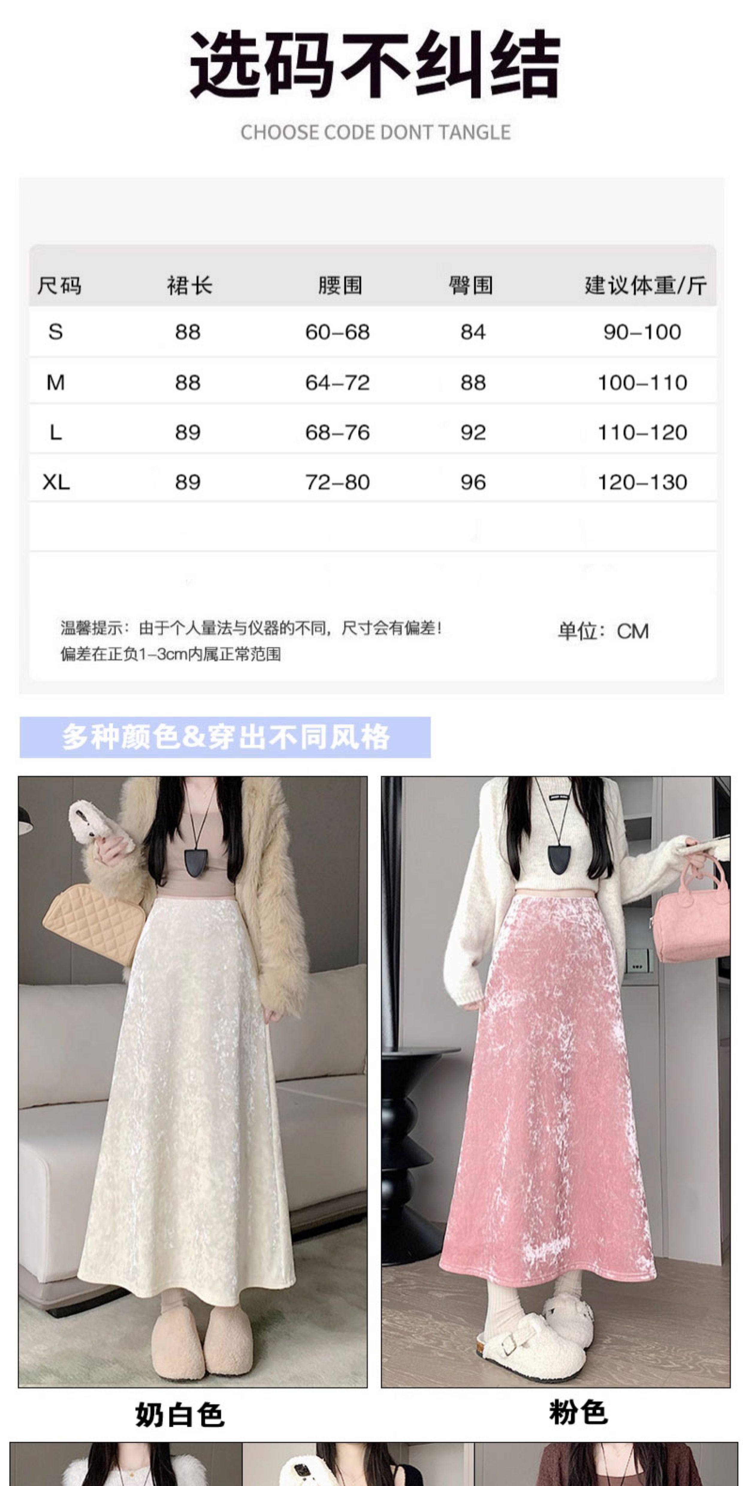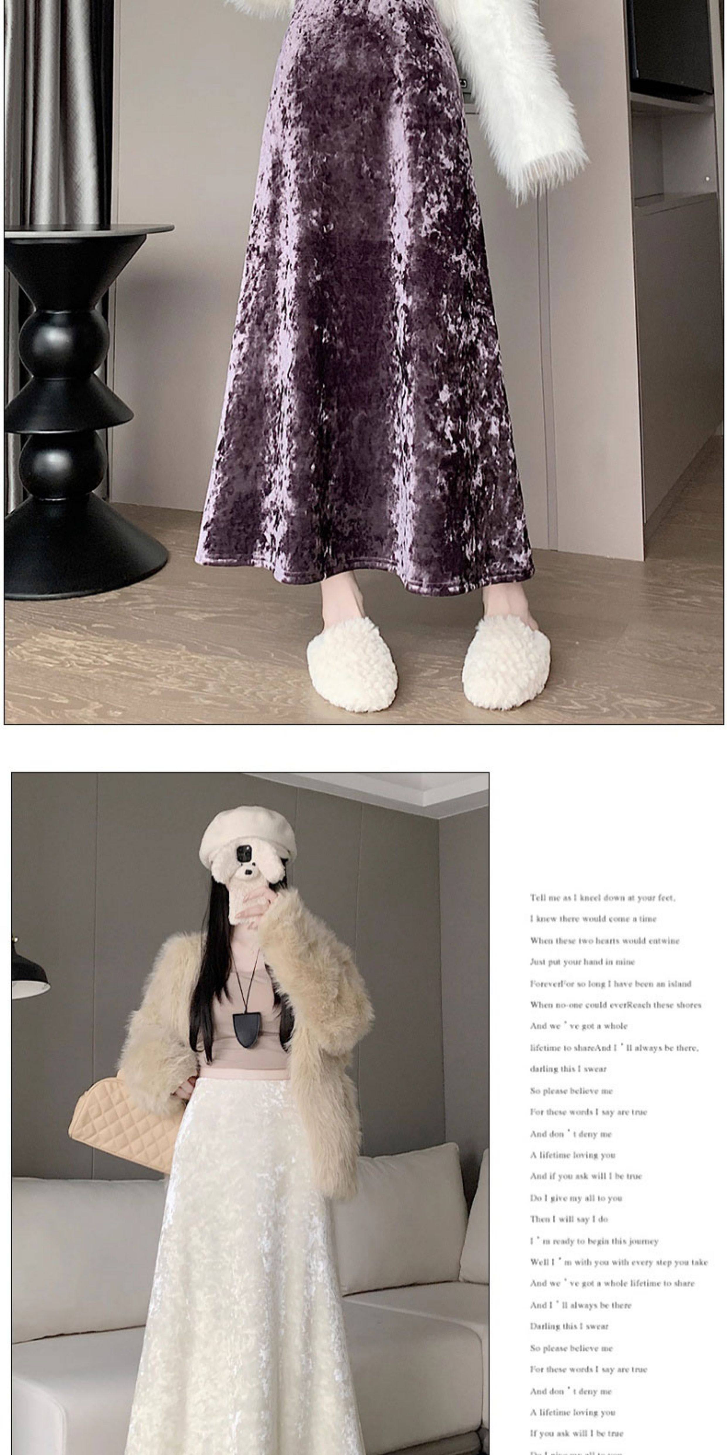 白色加绒加厚丝绒包臀半身裙女秋冬季小个子中长款高腰a字鱼尾裙