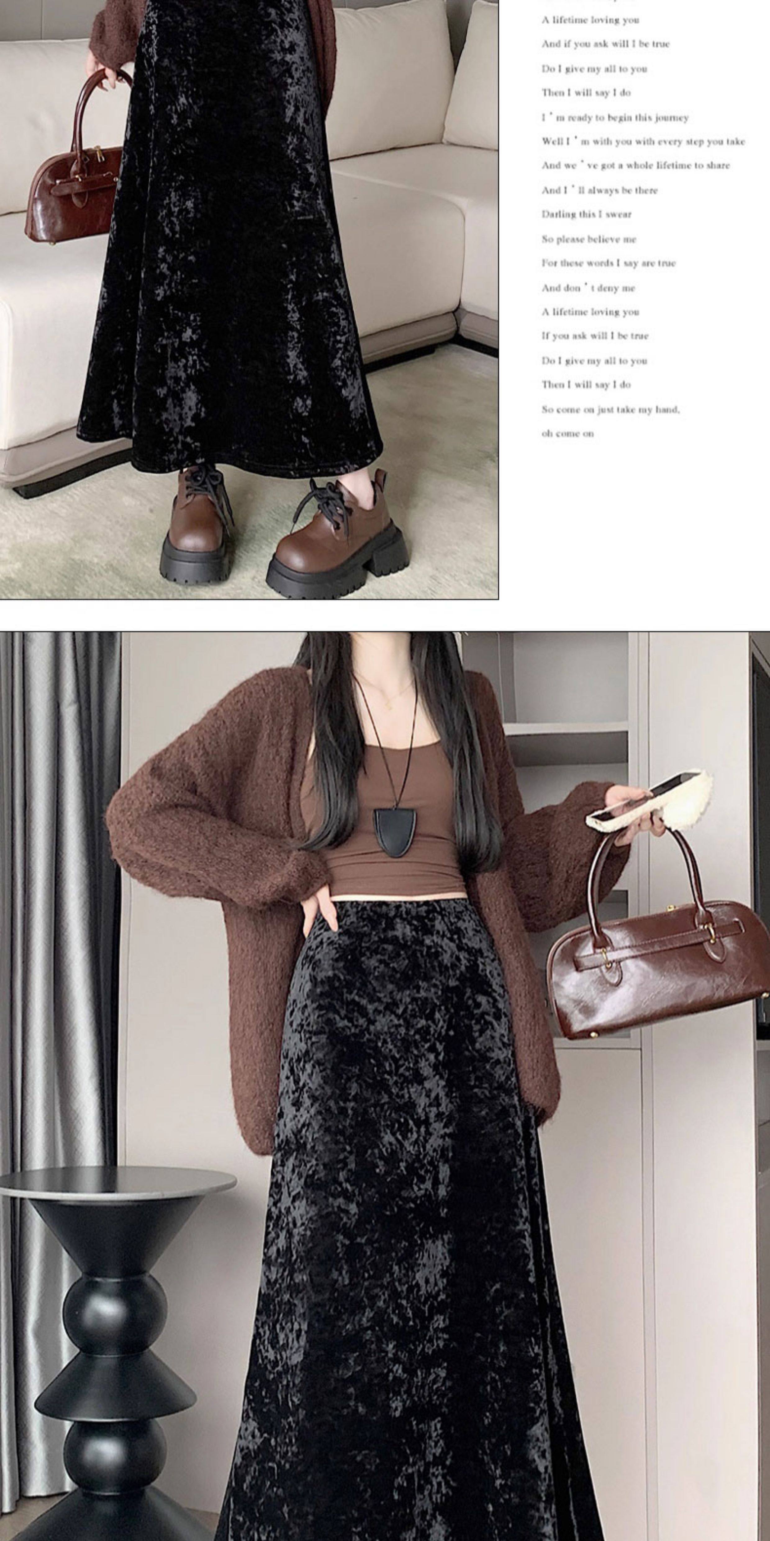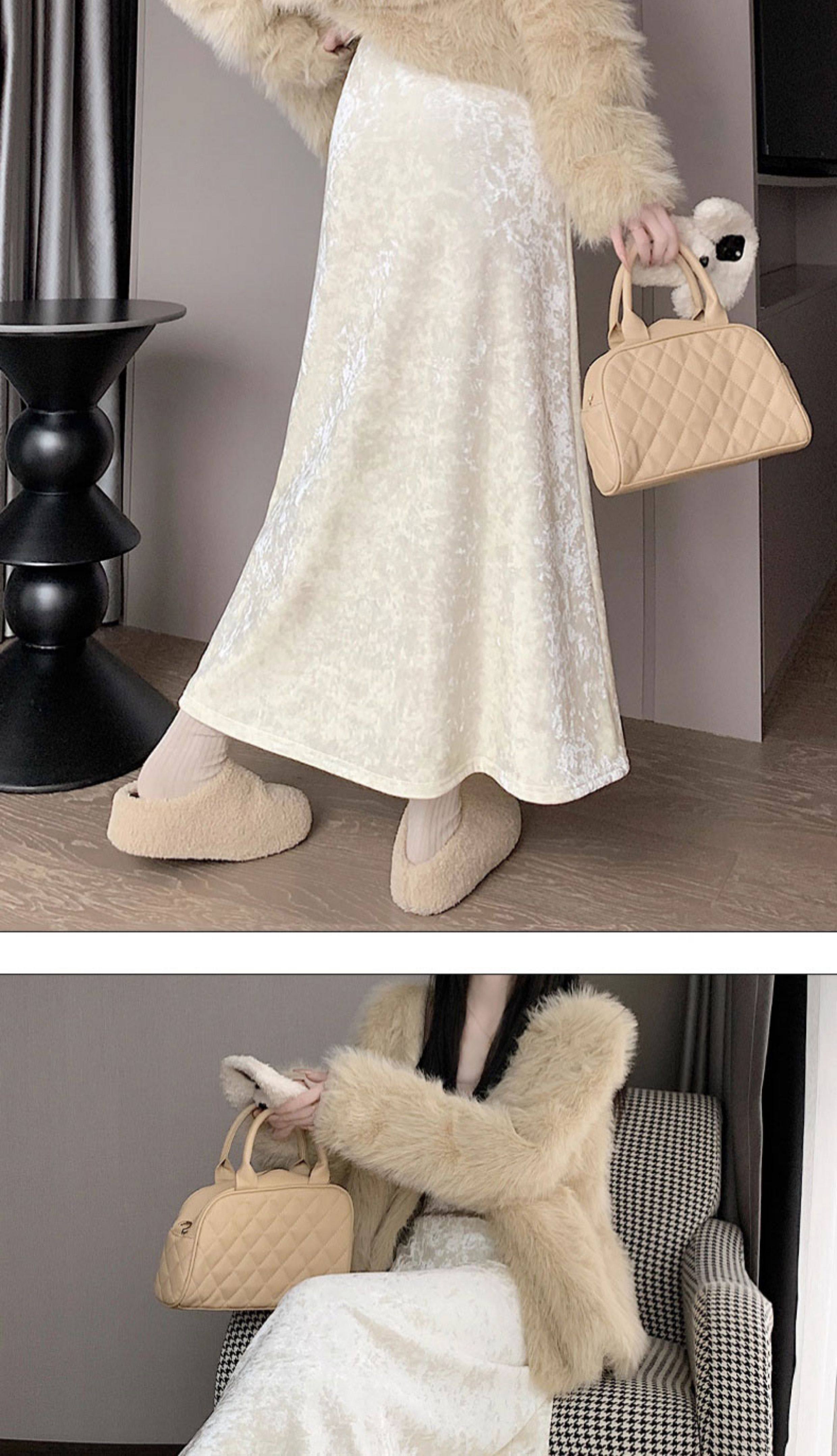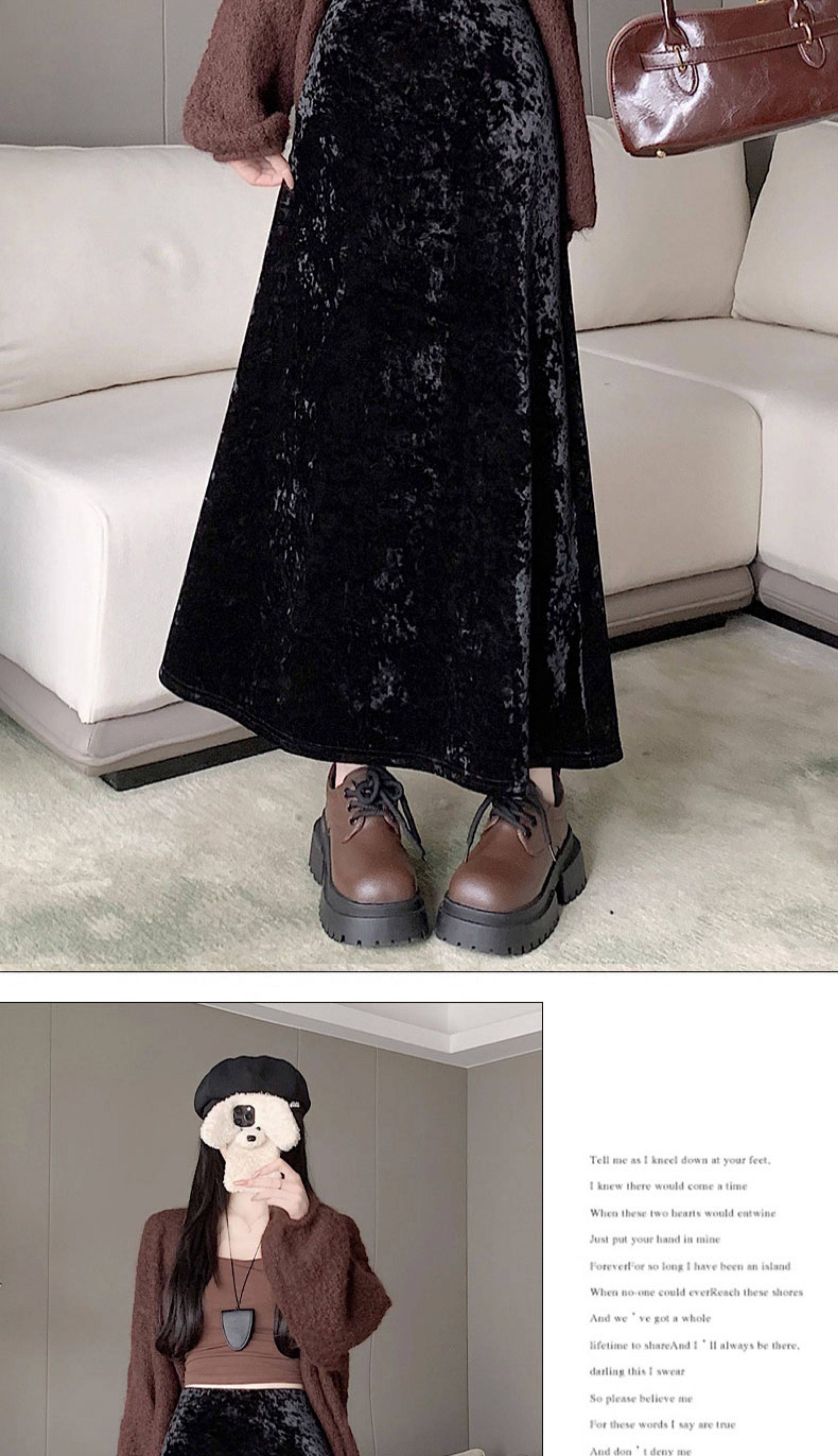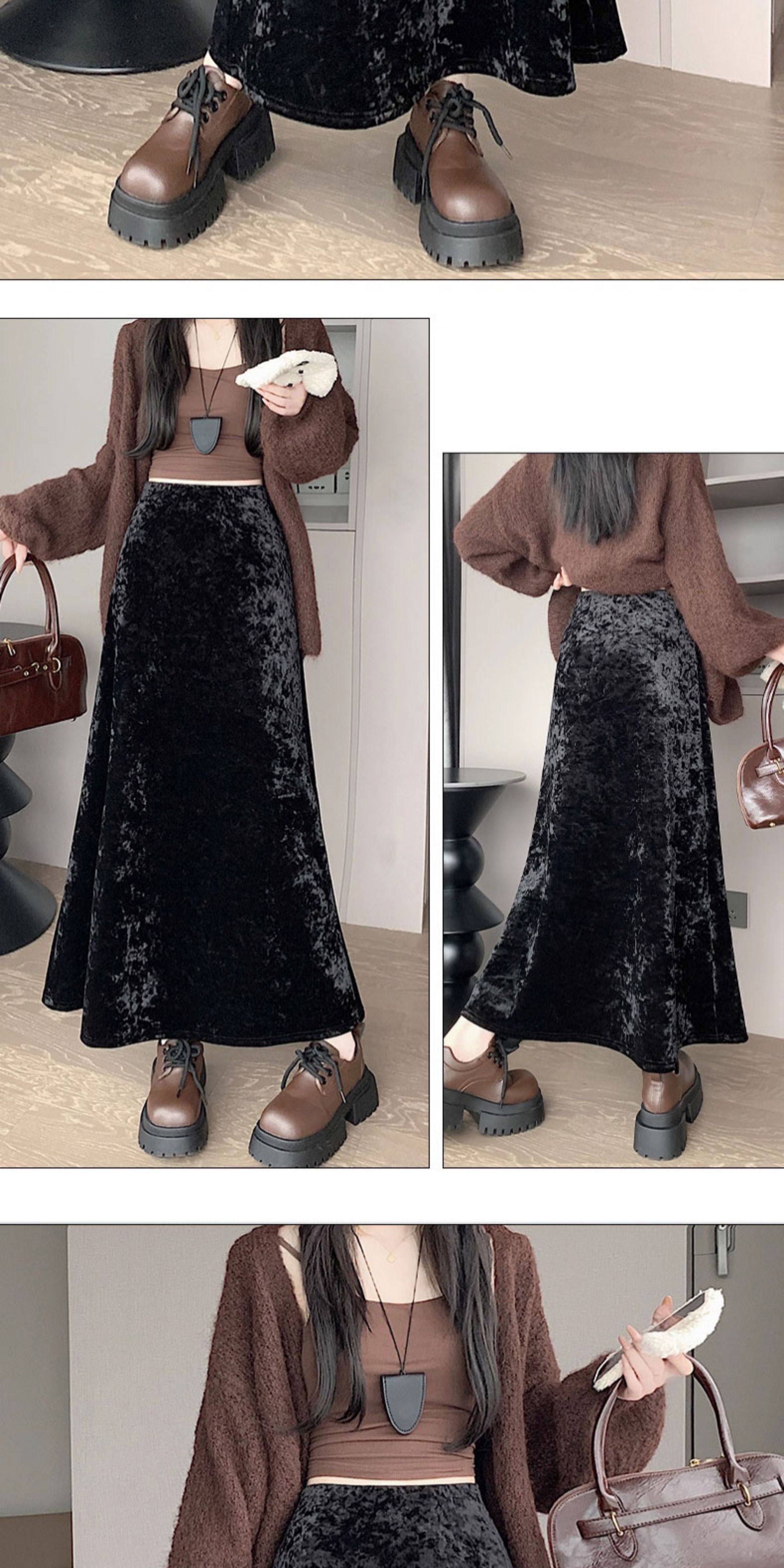 白色加绒加厚丝绒包臀半身裙女秋冬季小个子中长款高腰a字鱼尾裙