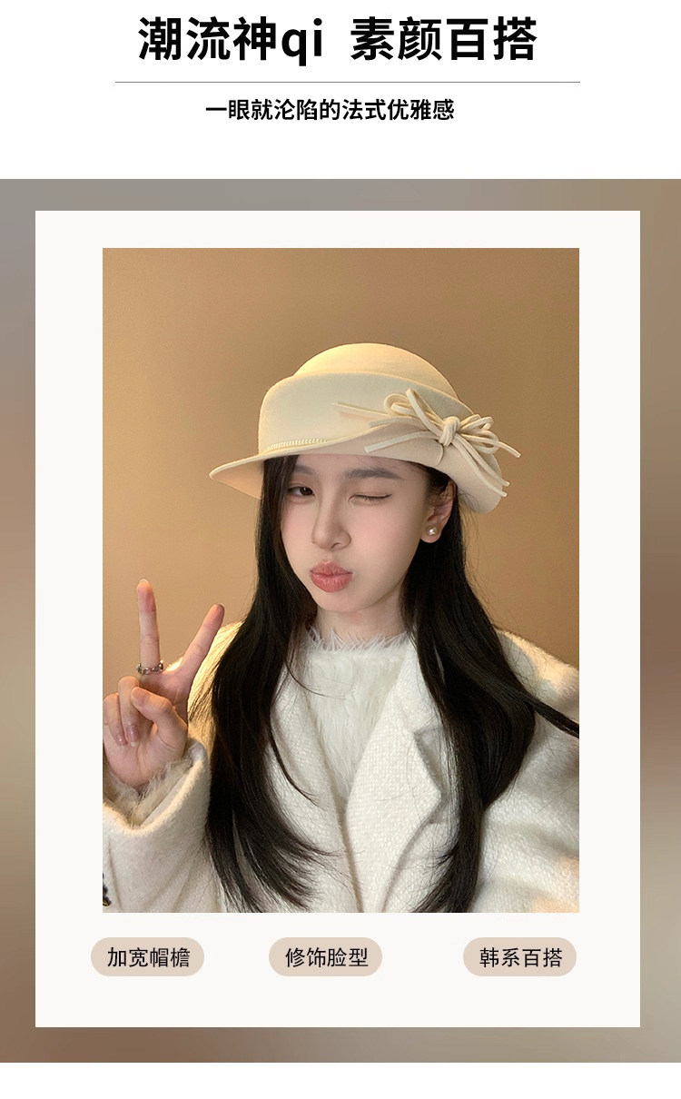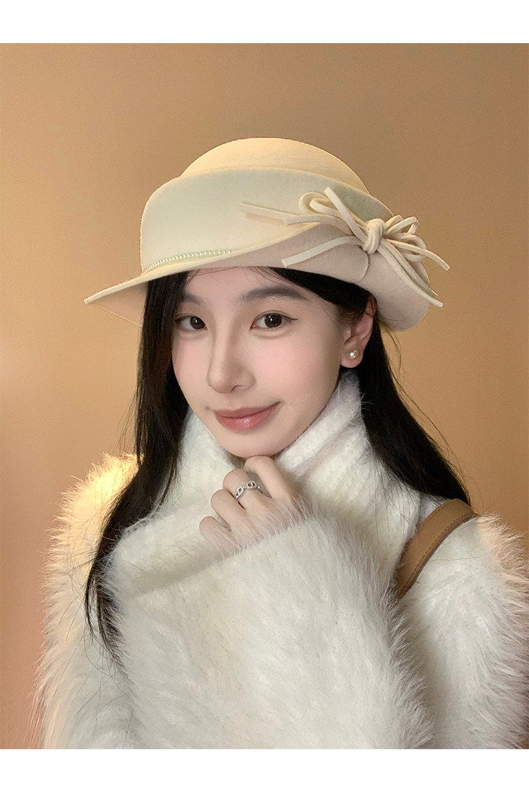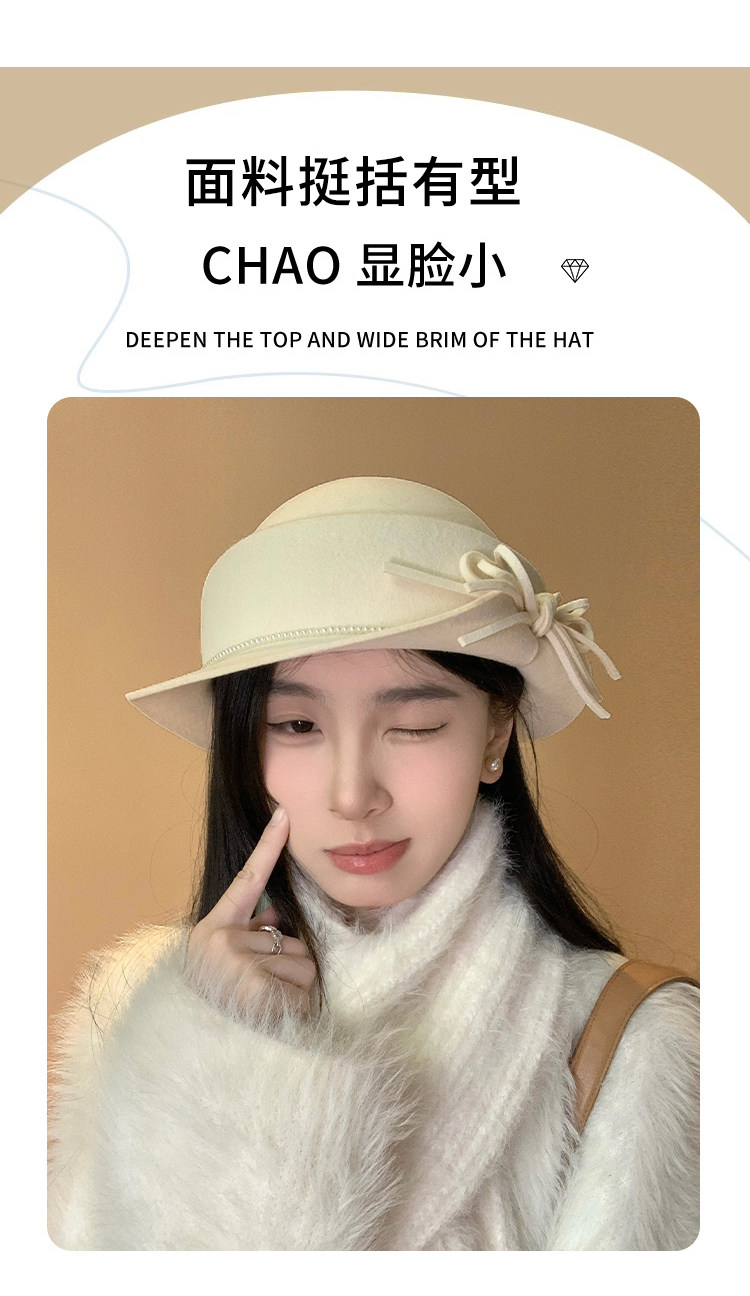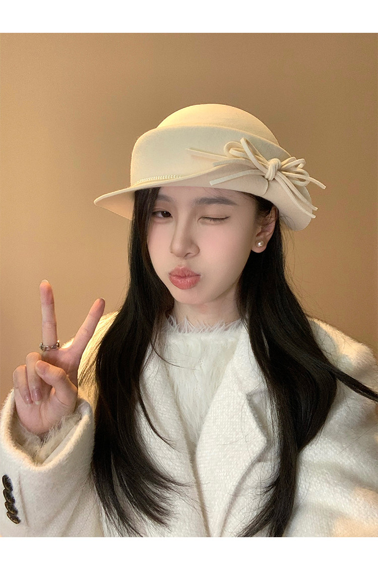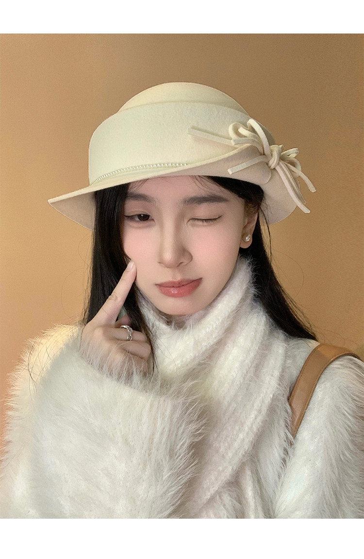 白色礼帽女2025秋冬季赫本风优雅法式盆帽显脸小渔夫帽高级感帽子