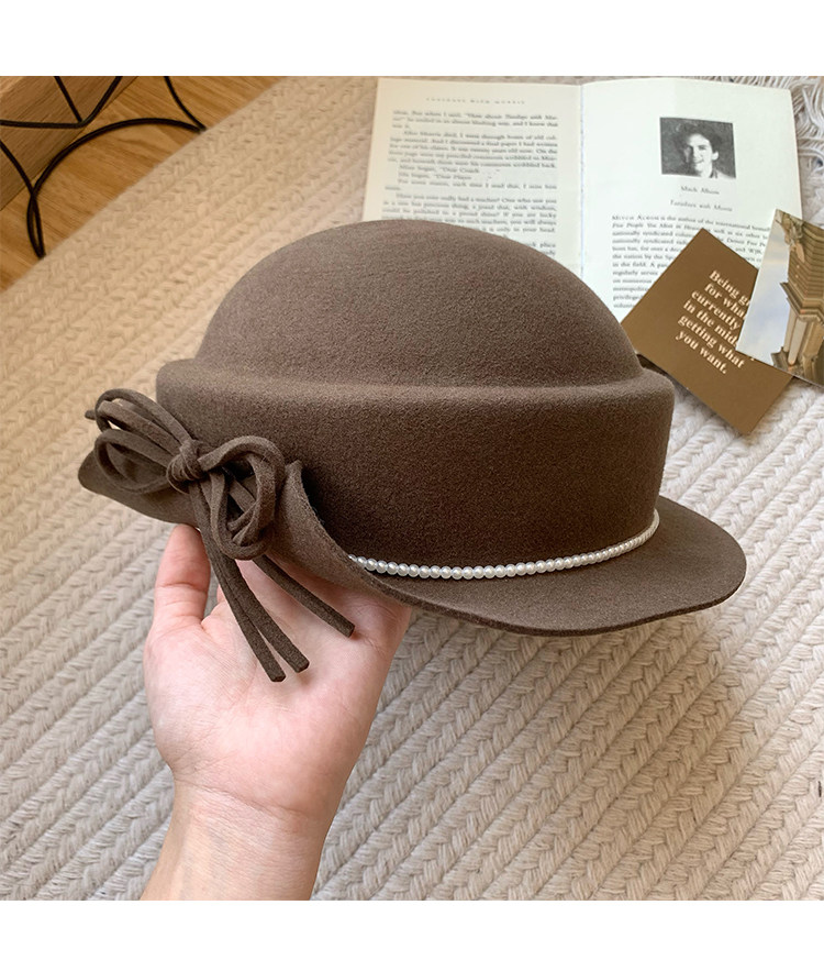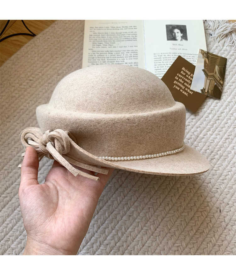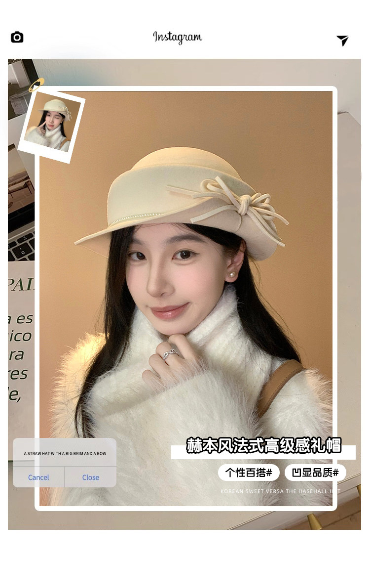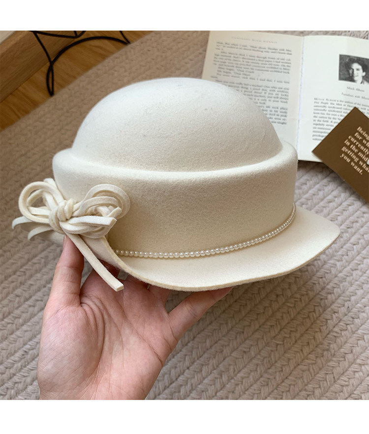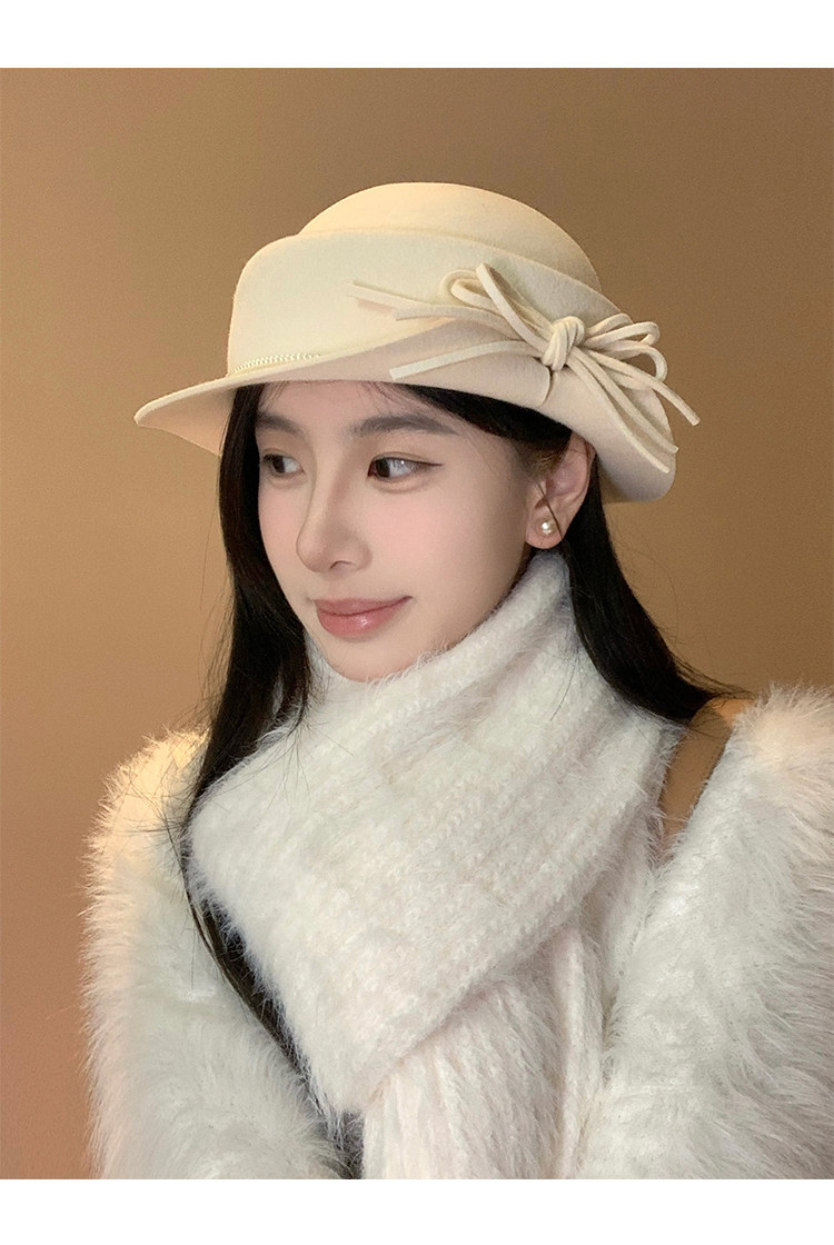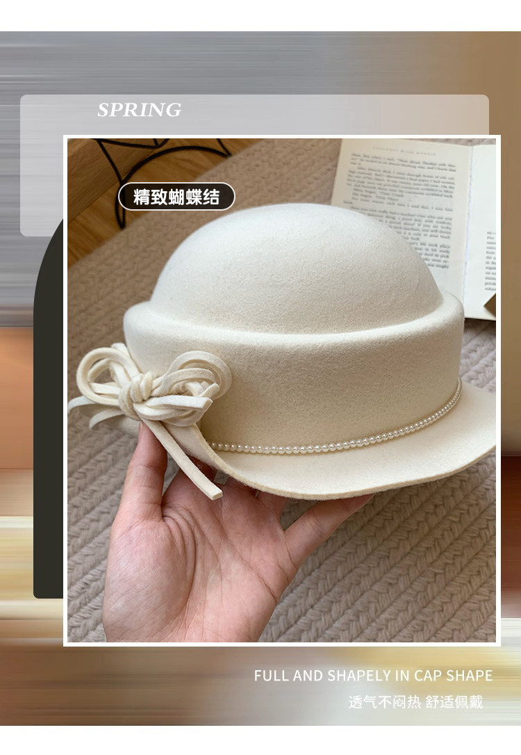白色礼帽女2025秋冬季赫本风优雅法式盆帽显脸小渔夫帽高级感帽子
