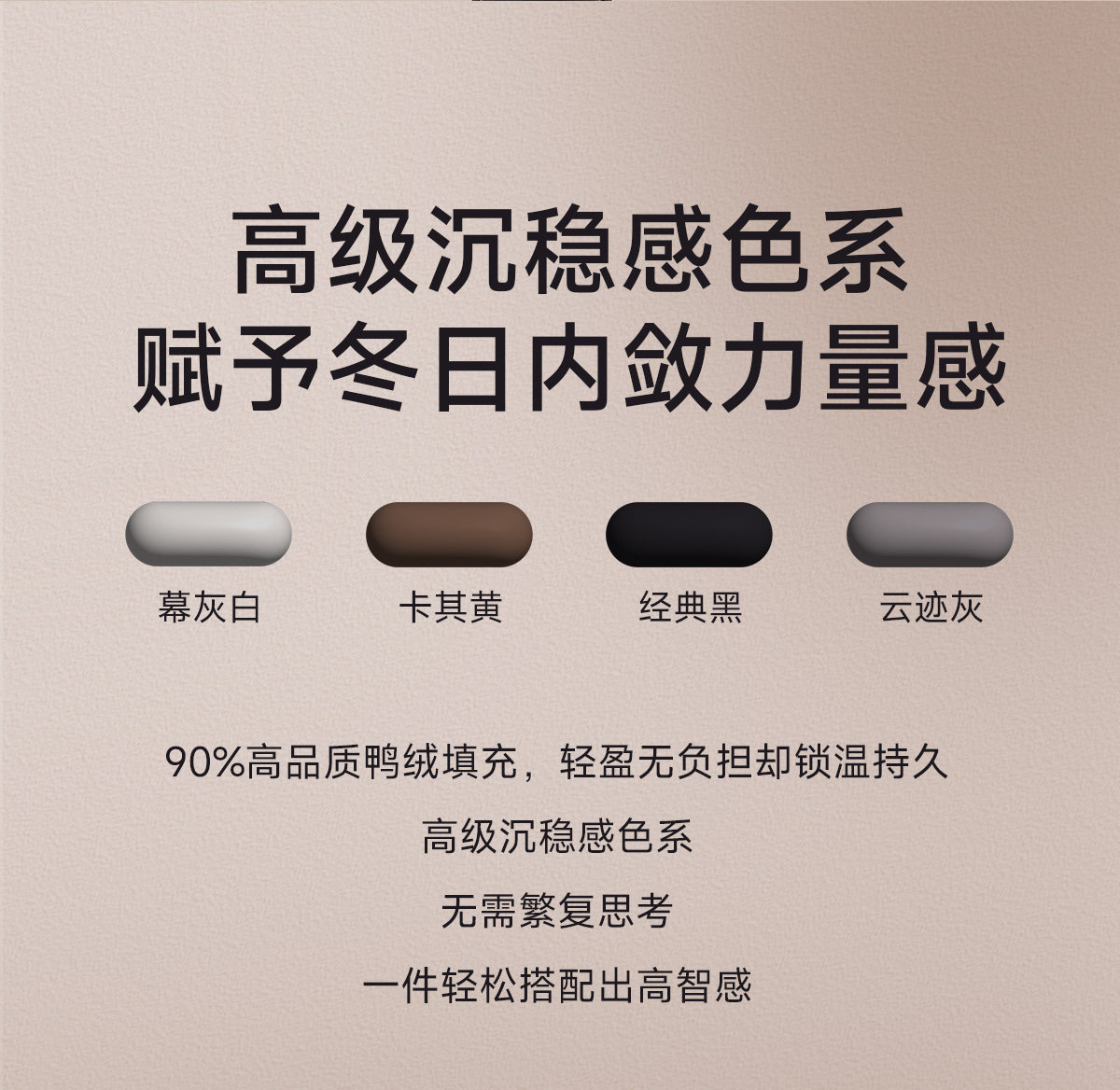 雅鹿羽绒服2025新款女冬季极简廓形舒适显瘦高级内敛轻便舒适休闲