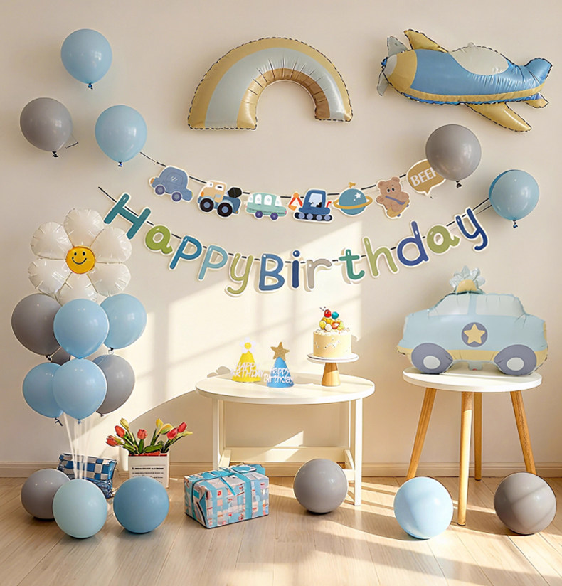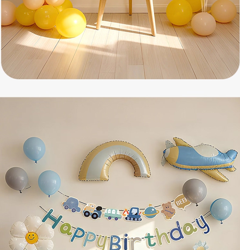 Airplane, Car, Children's Balloons, Scene Decoration, Baby, Home, Family Party, Happy Birthday, Sense of Ceremony
