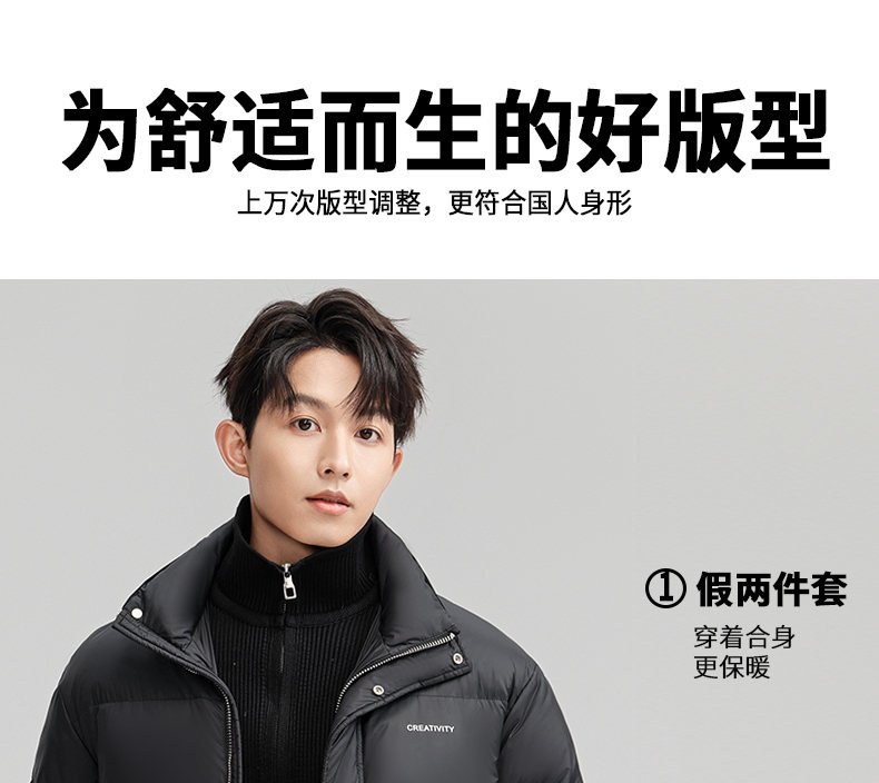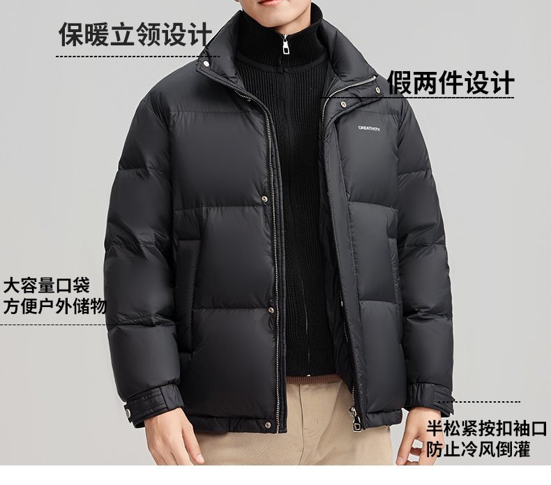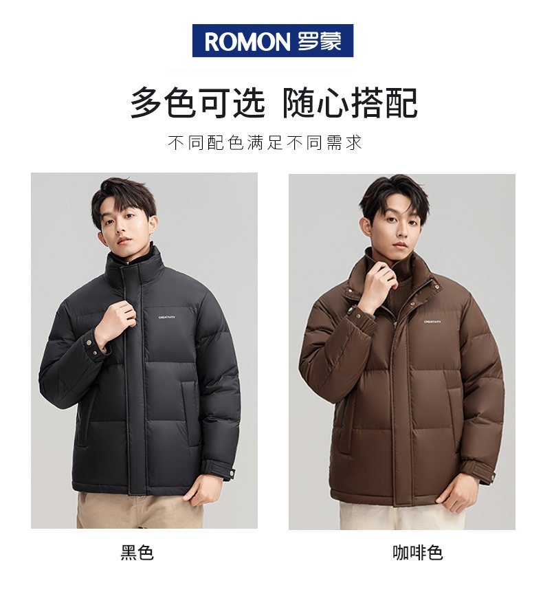 Romon Fake Two-Piece down Jacket Men's Casual Warm Duck down Top Winter New Thickened Stand-Up Collar Coat Men's Clothing