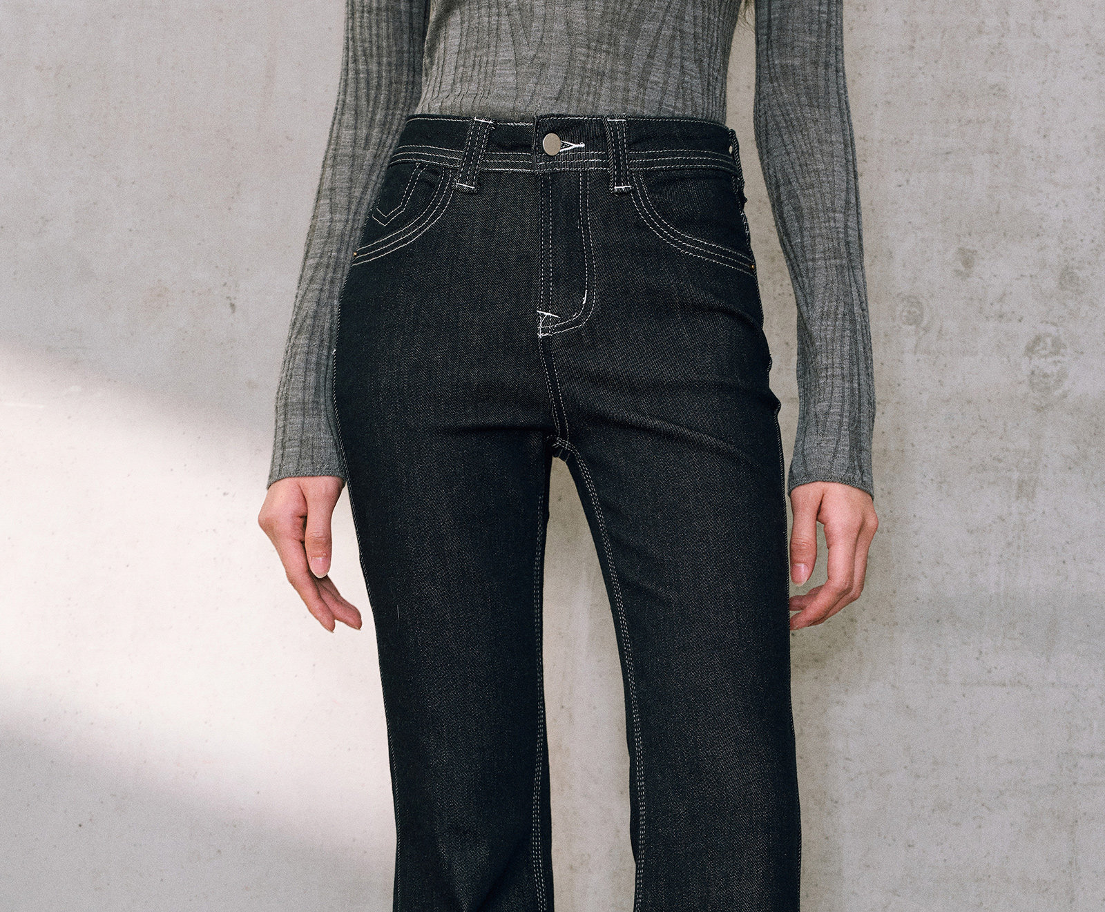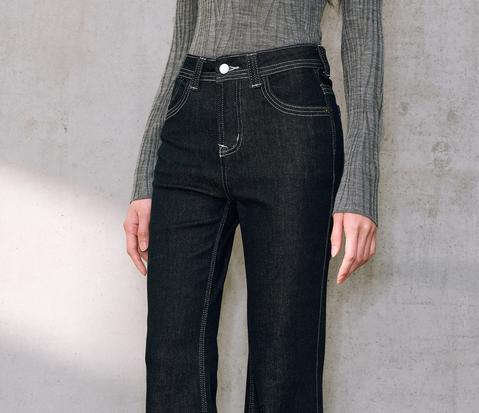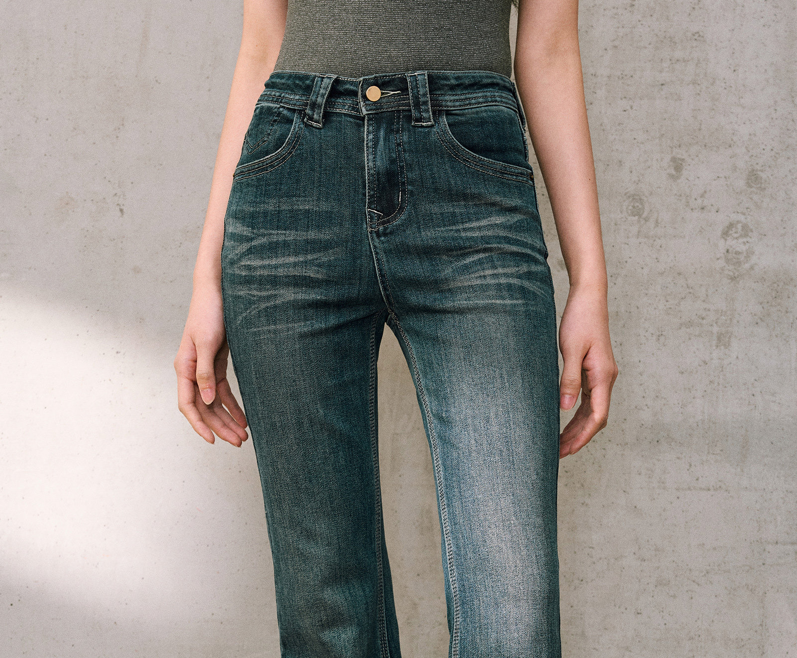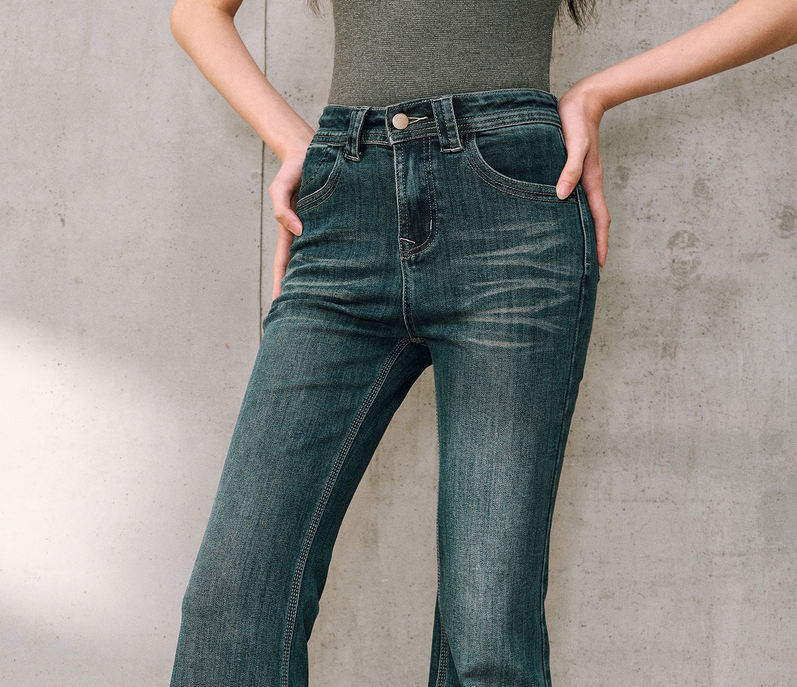 Wangxo|High-Proportion Cotton-Feel Denim with Heavy-Duty Enzyme Wash and Slub Texture|Thickened High-Waisted Slimming Flared Pants