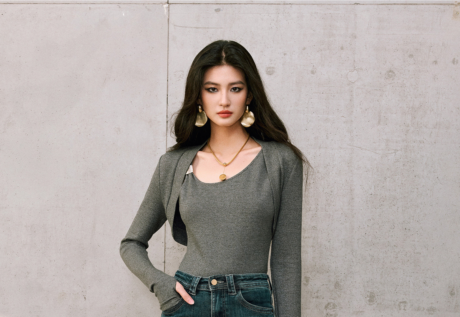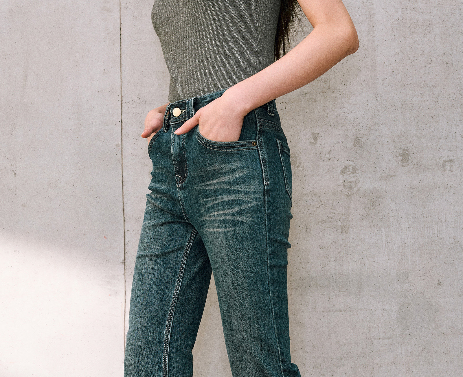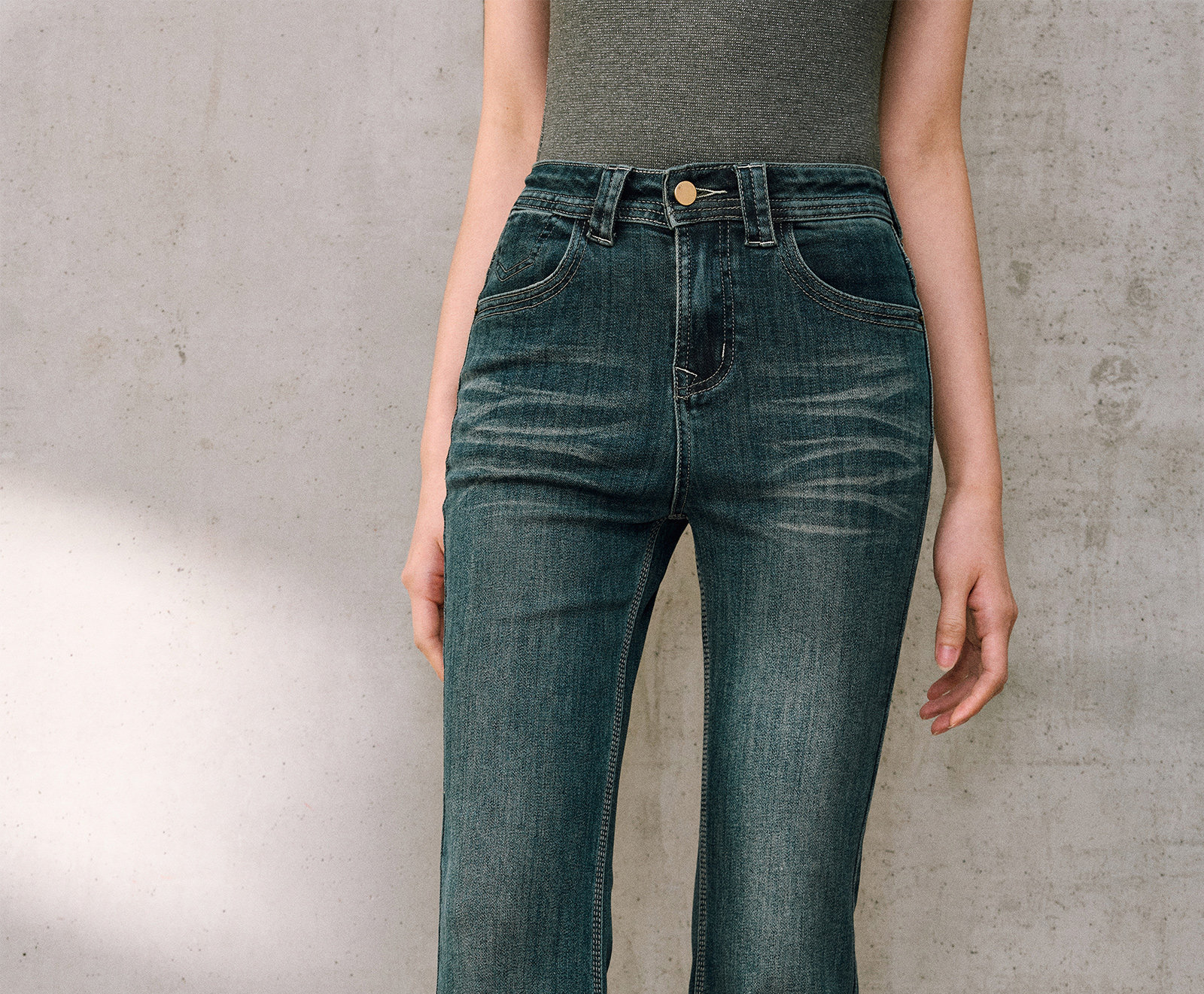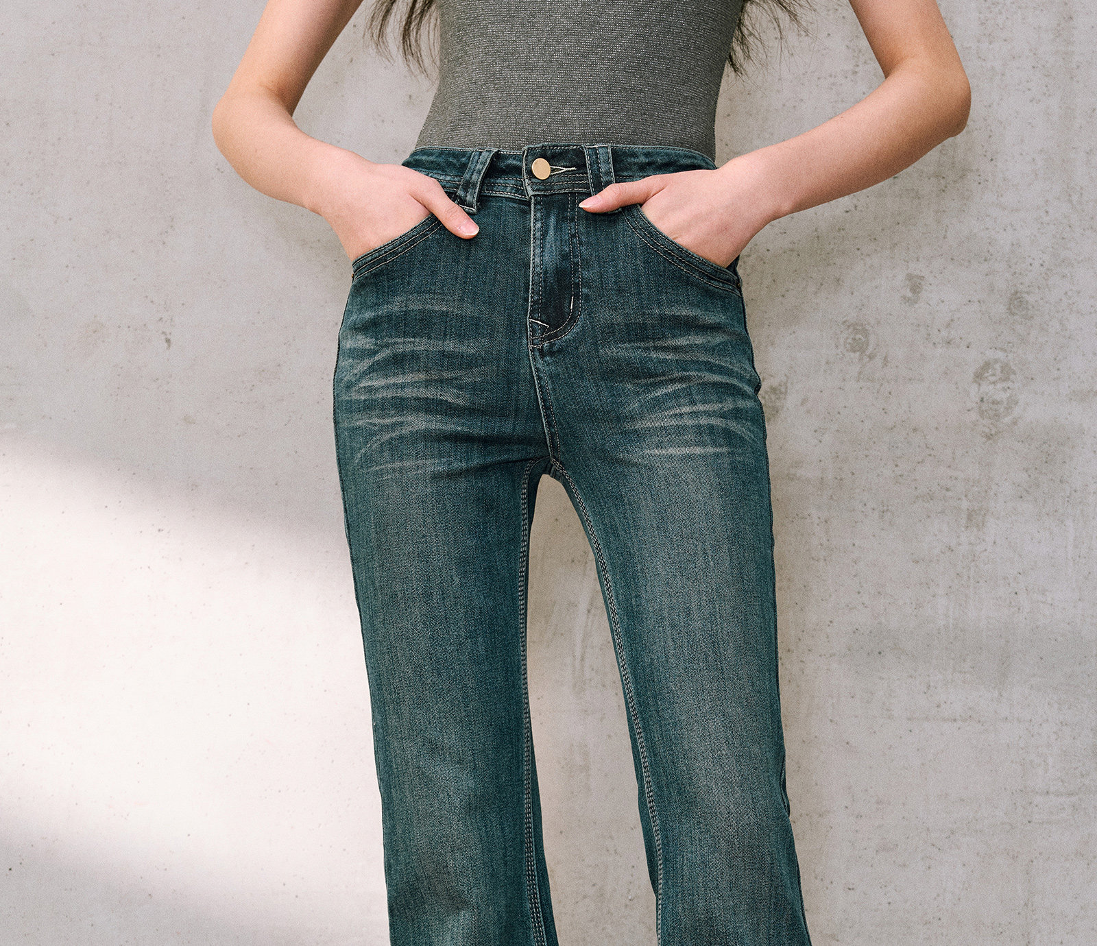 Wangxo|High-Proportion Cotton-Feel Denim with Heavy-Duty Enzyme Wash and Slub Texture|Thickened High-Waisted Slimming Flared Pants