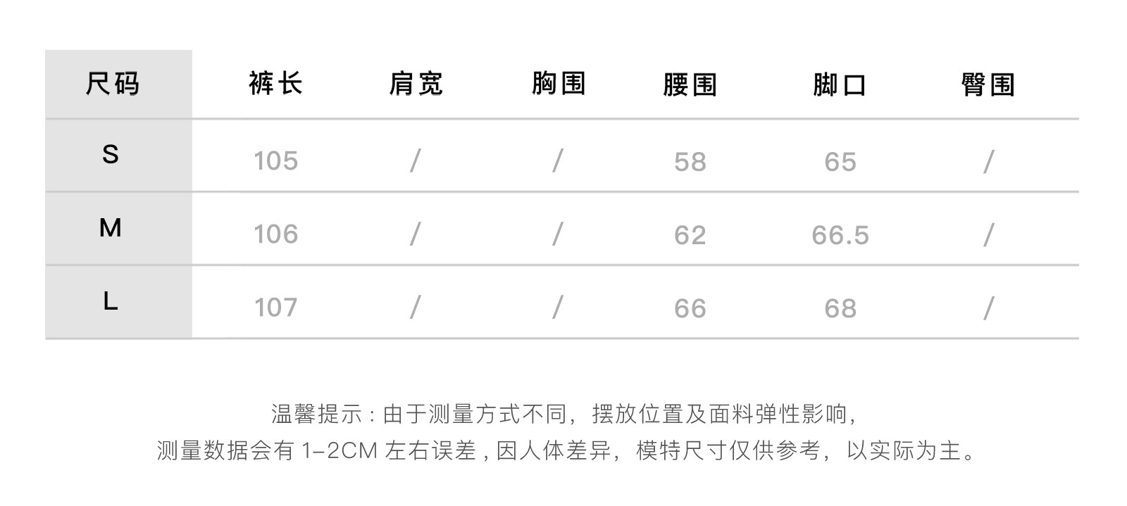 Outseam (cm) 99 cm 101.5 cm 104 cm 106.5 cm 109 cm