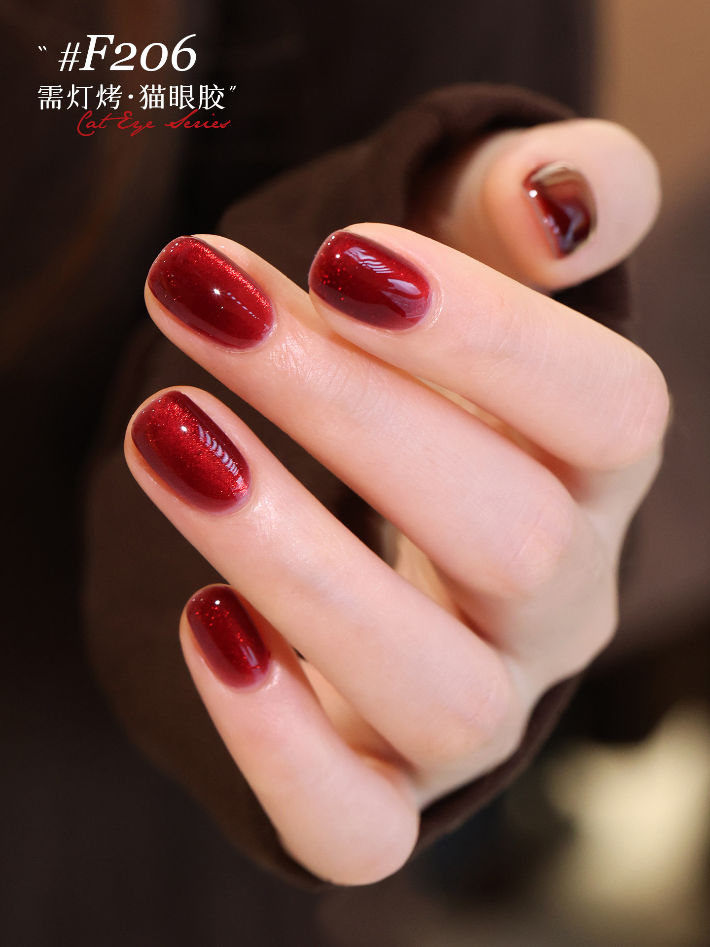 Autumn and Winter Cherry Wine Red Cat Eye Nail Polish 2025 New Model Lazy Five-In-One High-End Whitening Nail Polish
