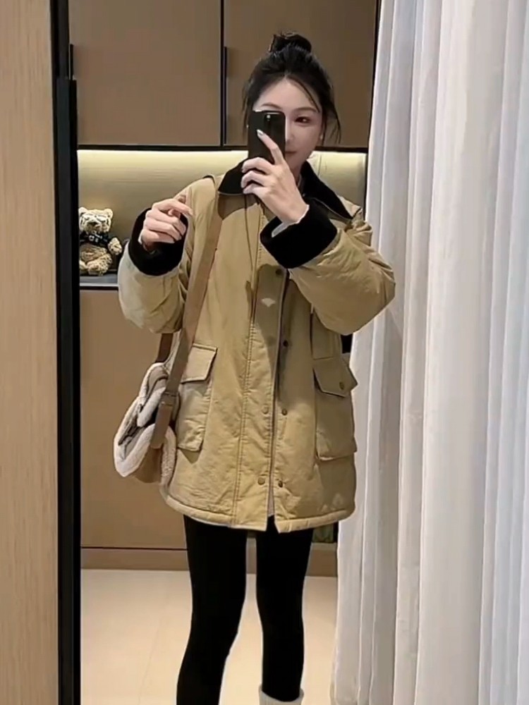 Куртка женская в корейском стиле с отложным воротником, утепленная, из хлопка, осень-зима 2025, новая модель, высококачественная, свободного кроя, повседневная, утолщенная, теплая, хлопковая.