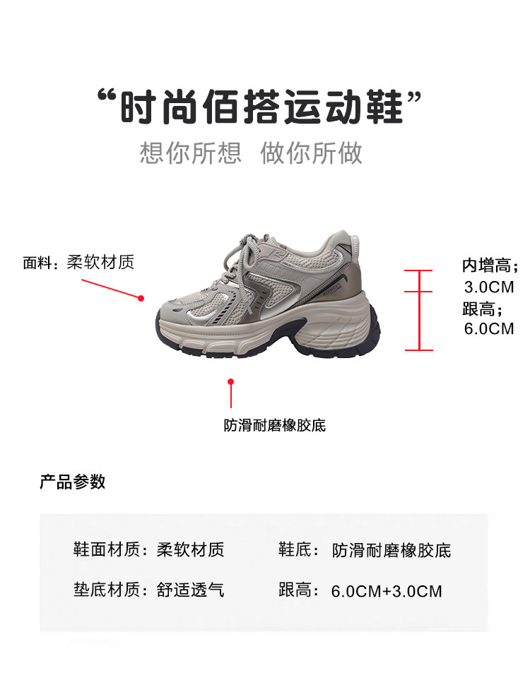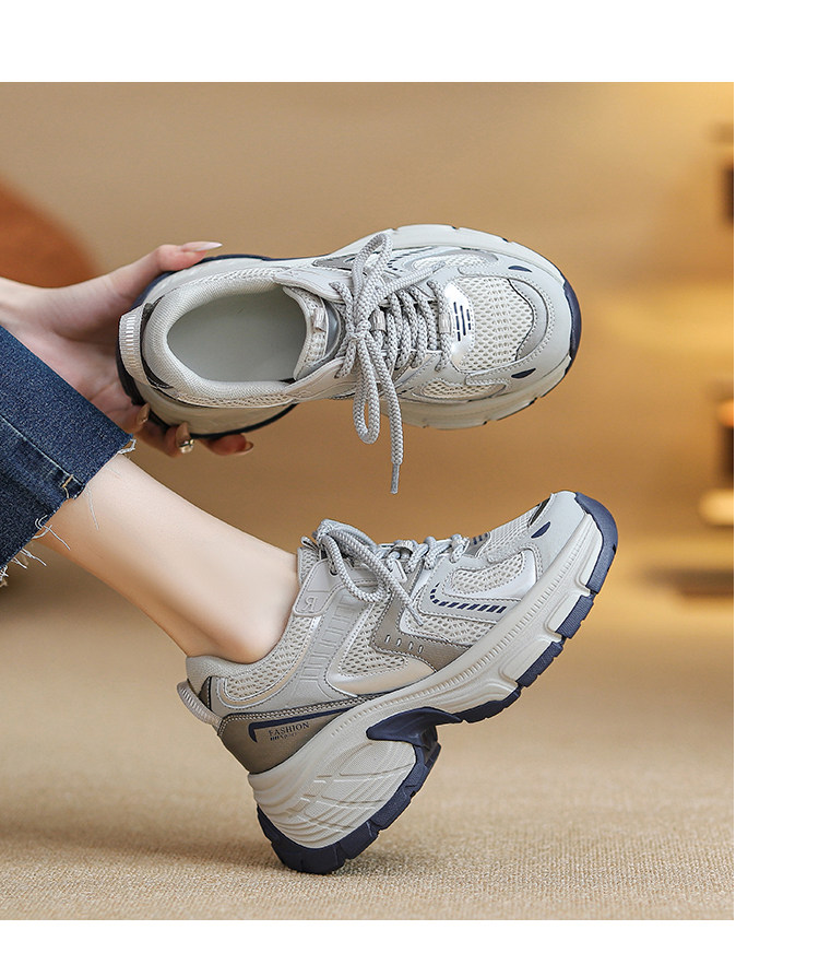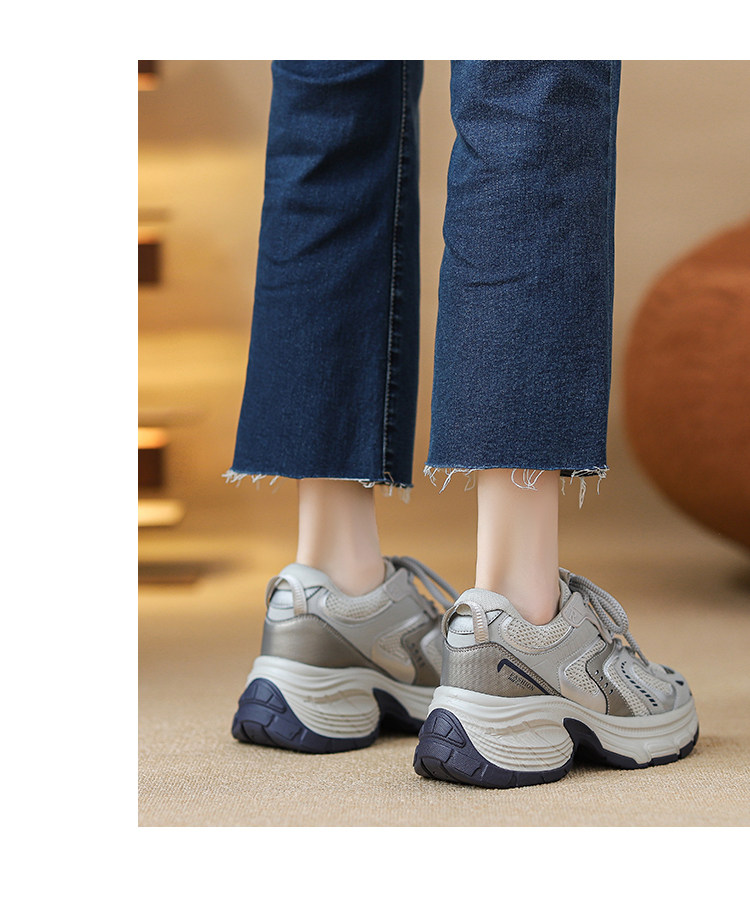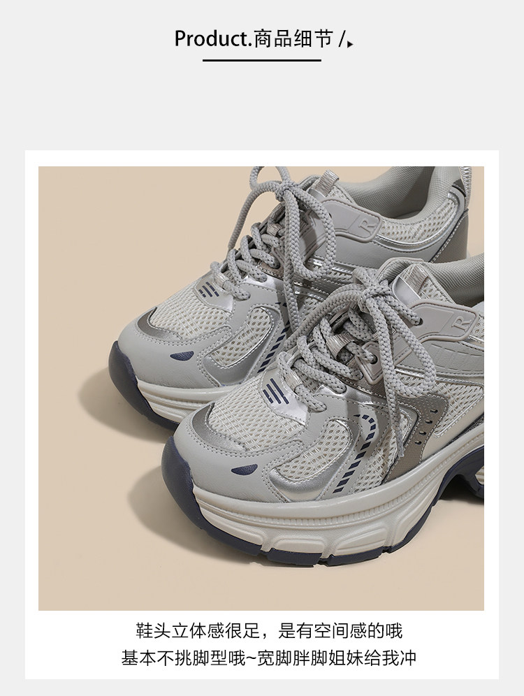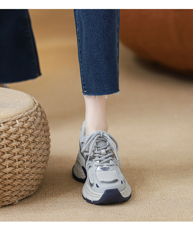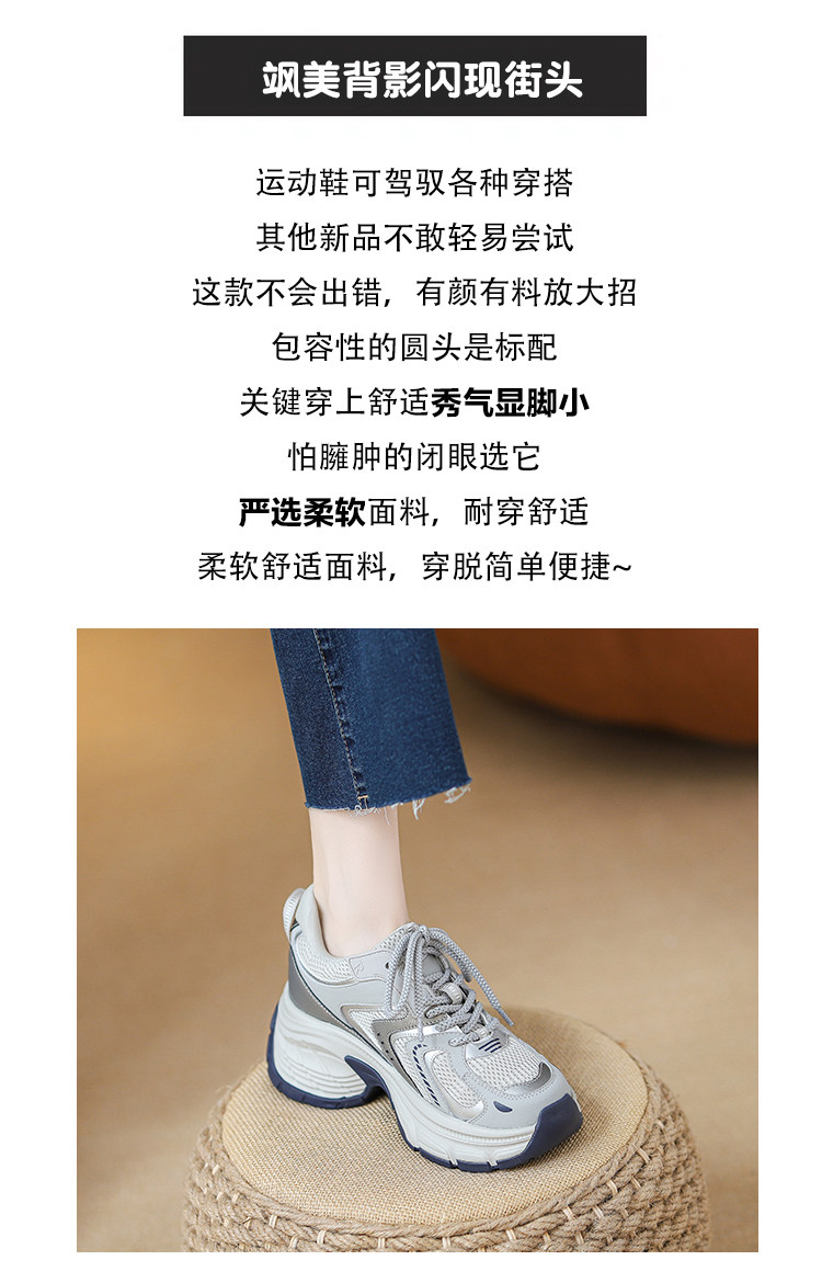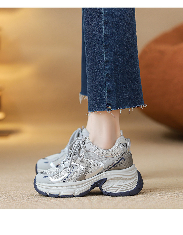 Женские кроссовки со скрытой платформой для увеличения роста, новинка 2025 года, весенне-осенние модели, дышащие универсальные повседневные кроссовки на толстой подошве, модные кроссовки в стиле «папины туфли».