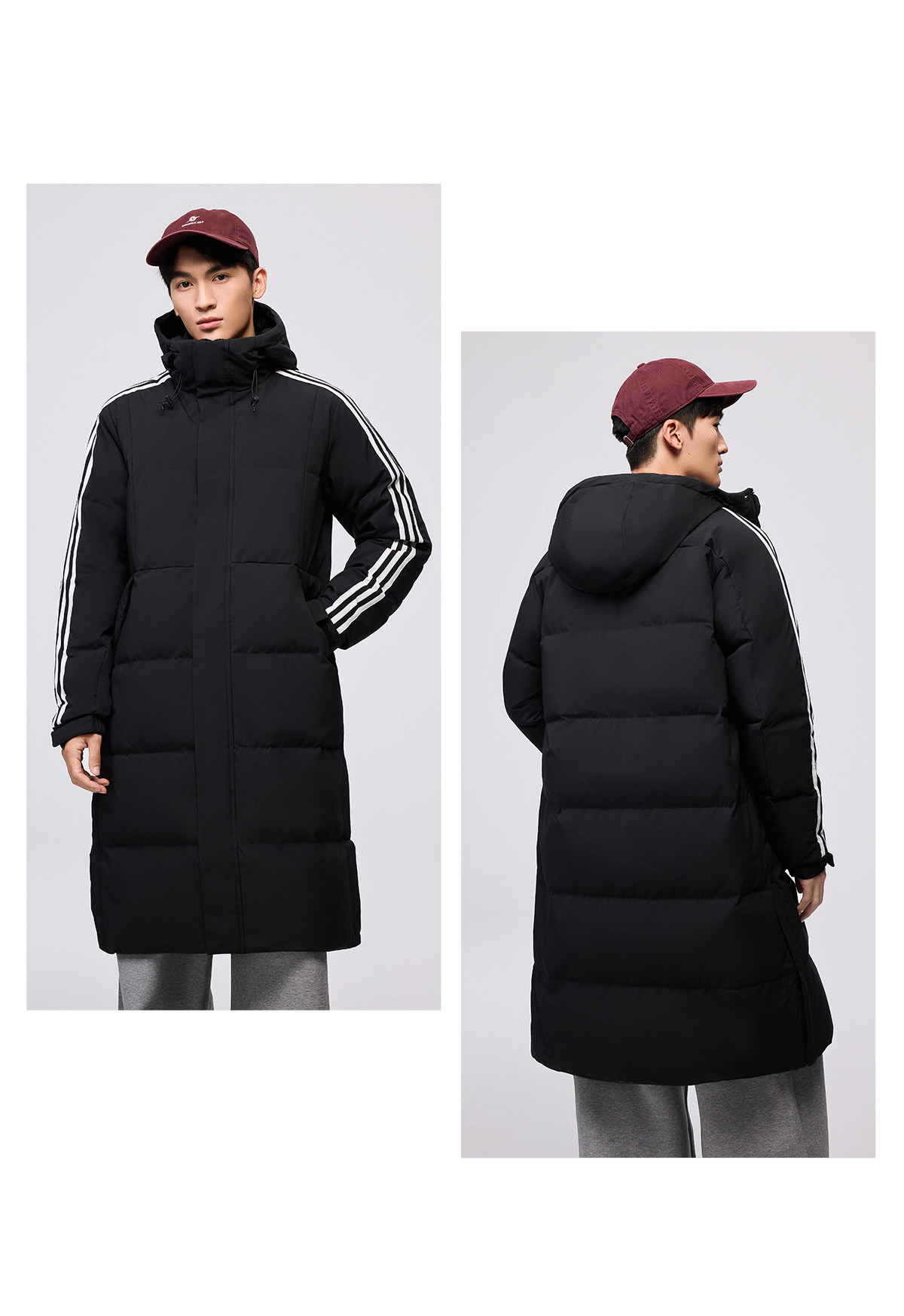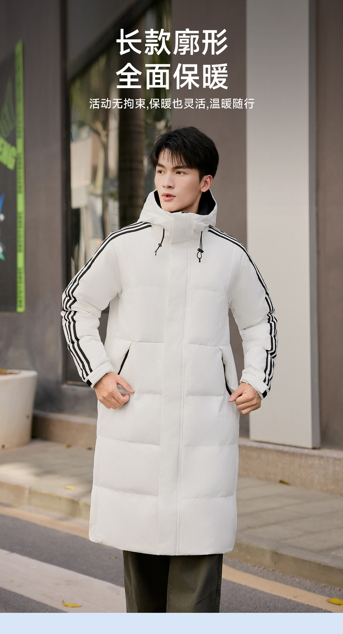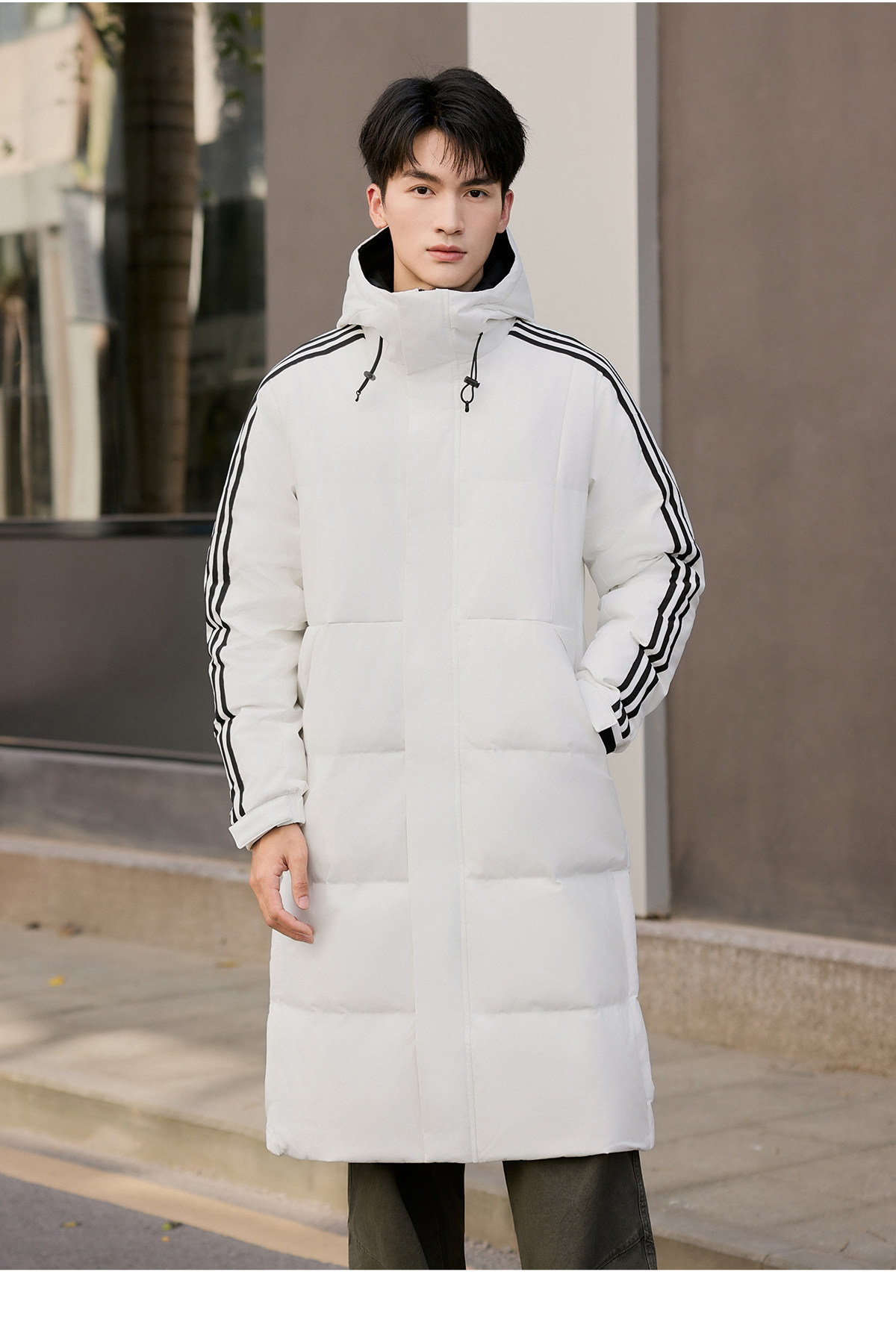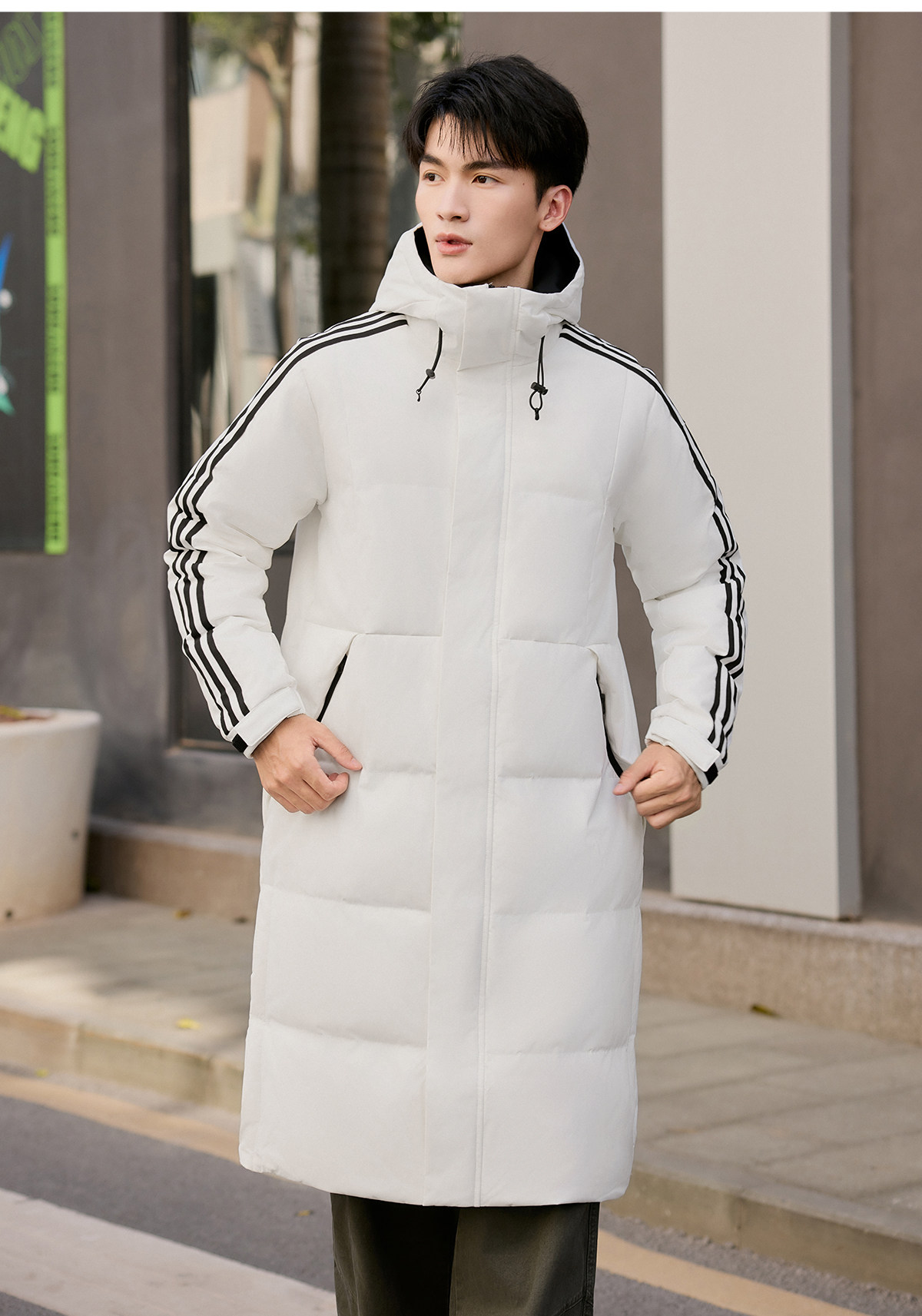 Yalu mid-length down jacket men's 25-year new winter hooded fashionable youth warm jacket striped trend