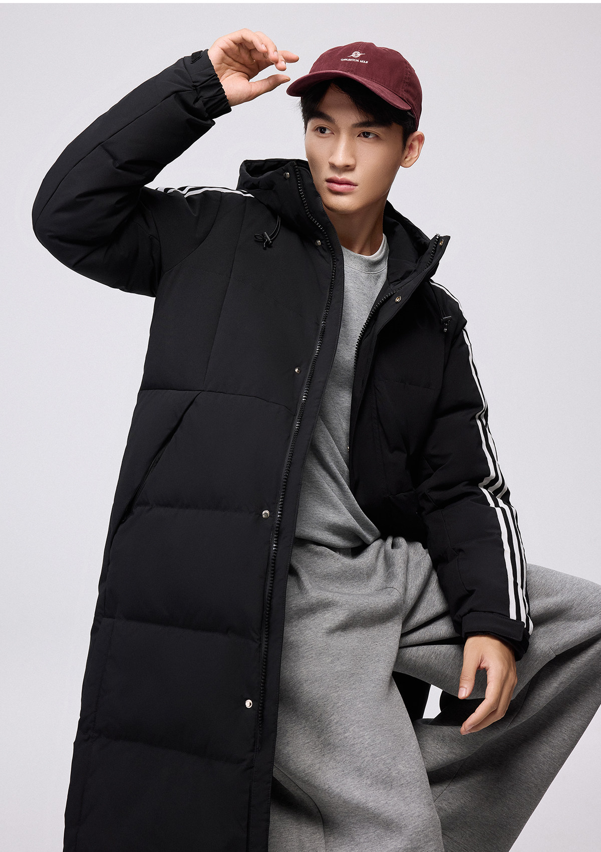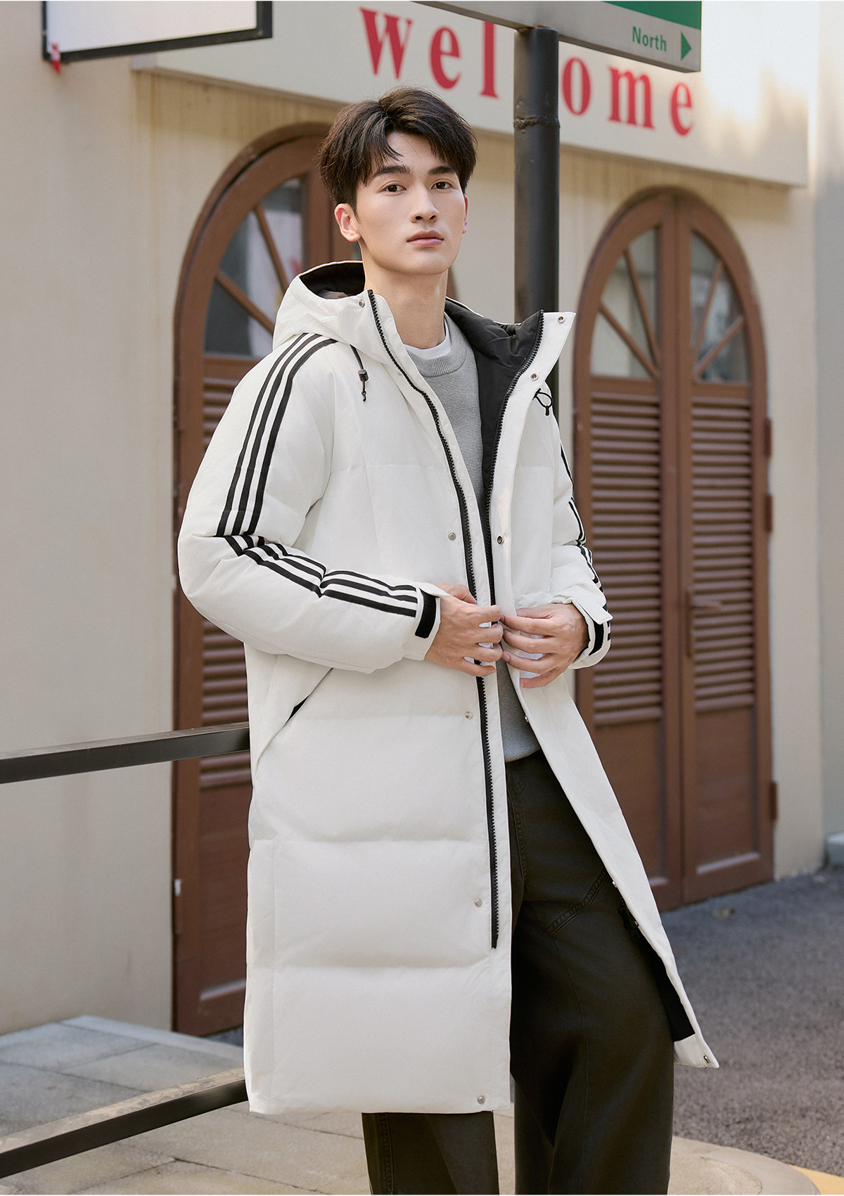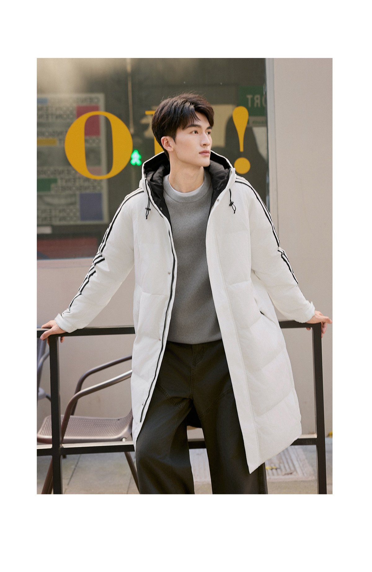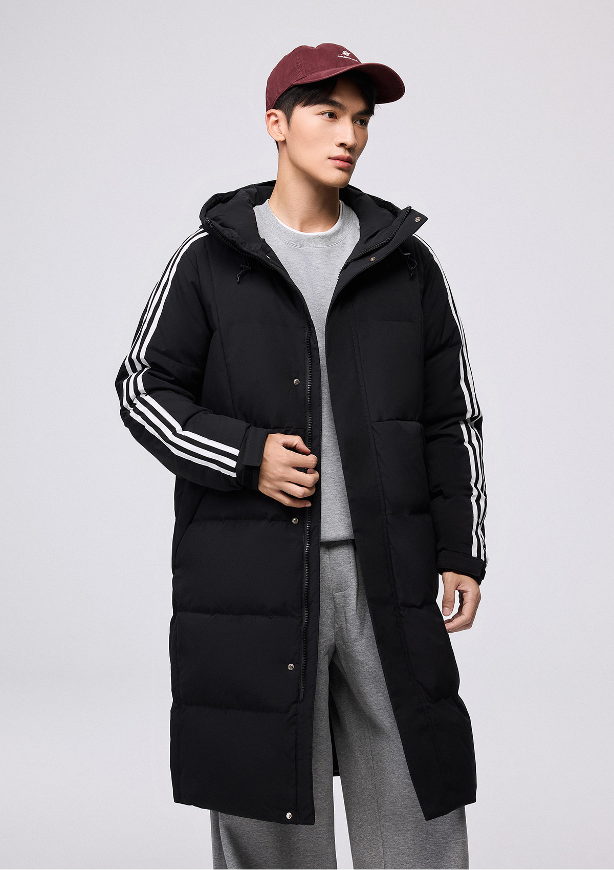 Yalu mid-length down jacket men's 25-year new winter hooded fashionable youth warm jacket striped trend