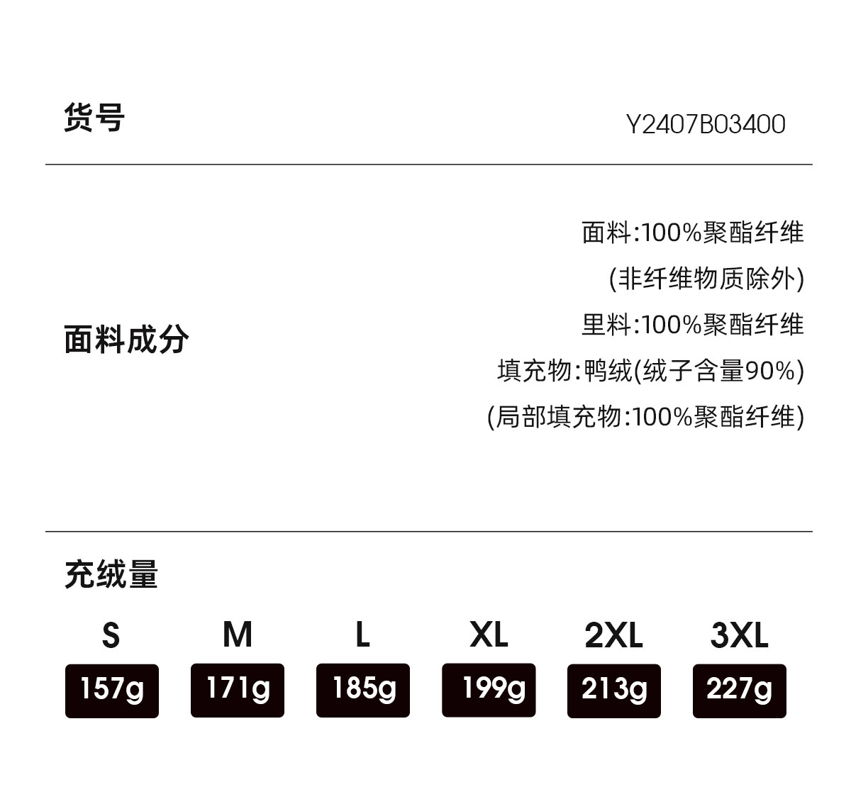 Fleece filling amount 157-227g