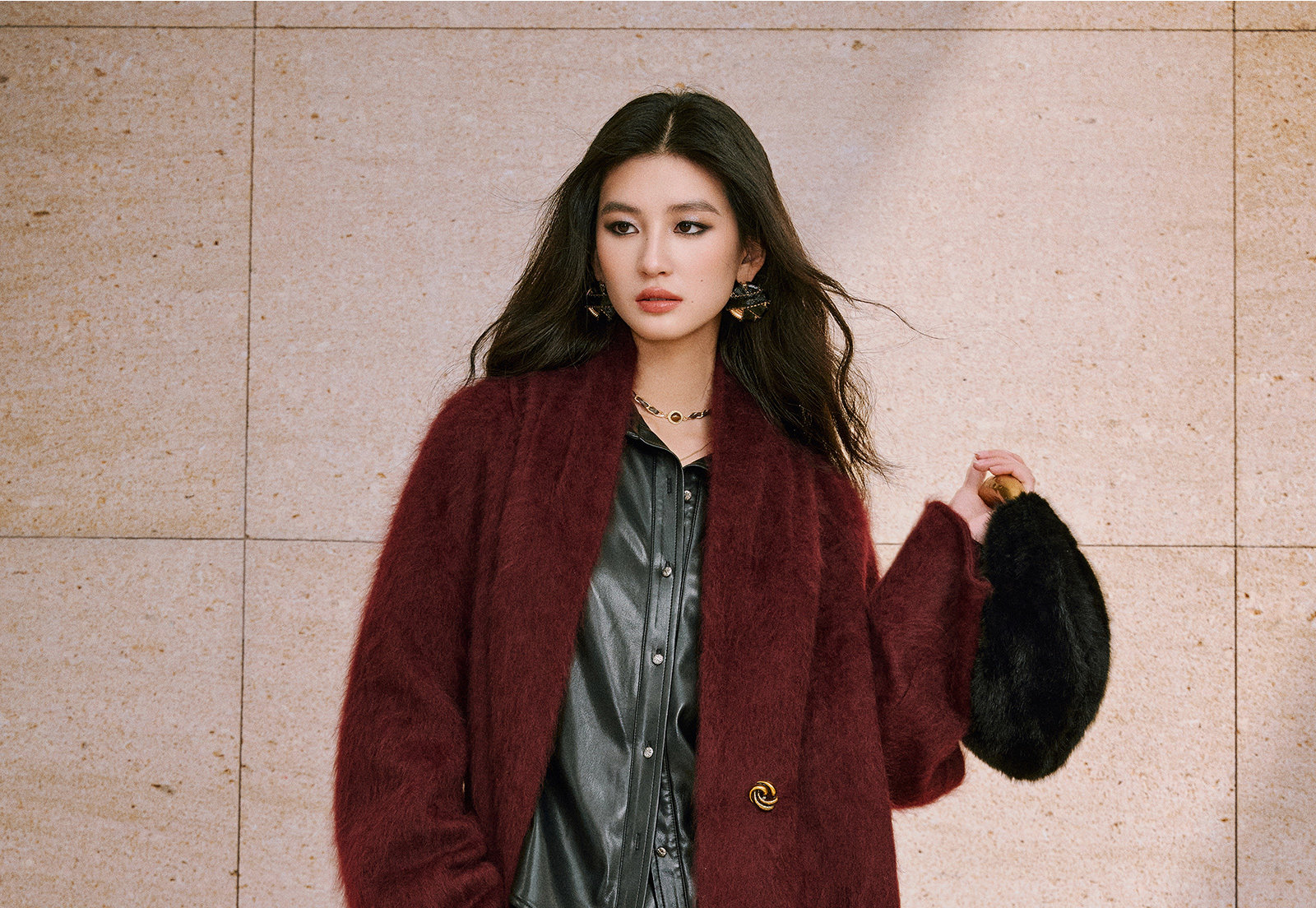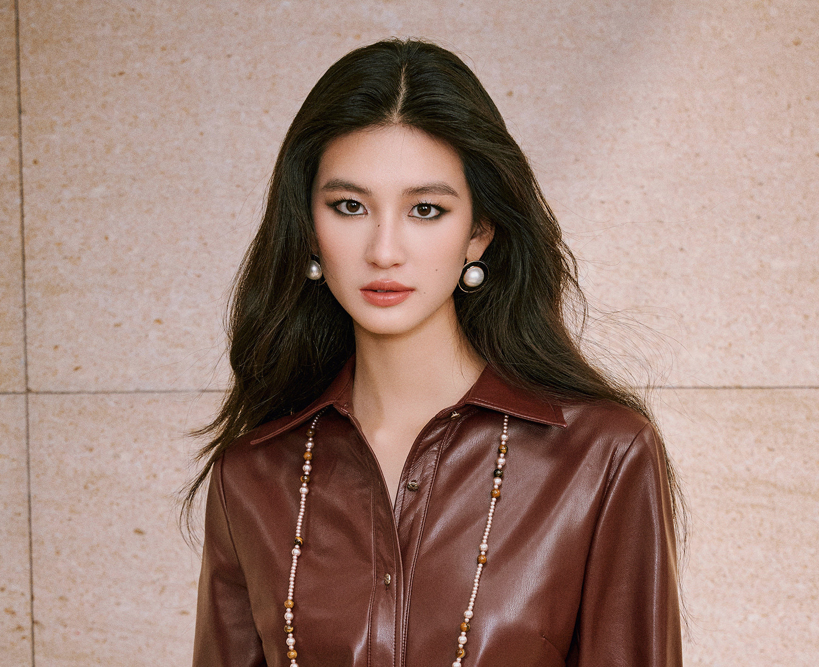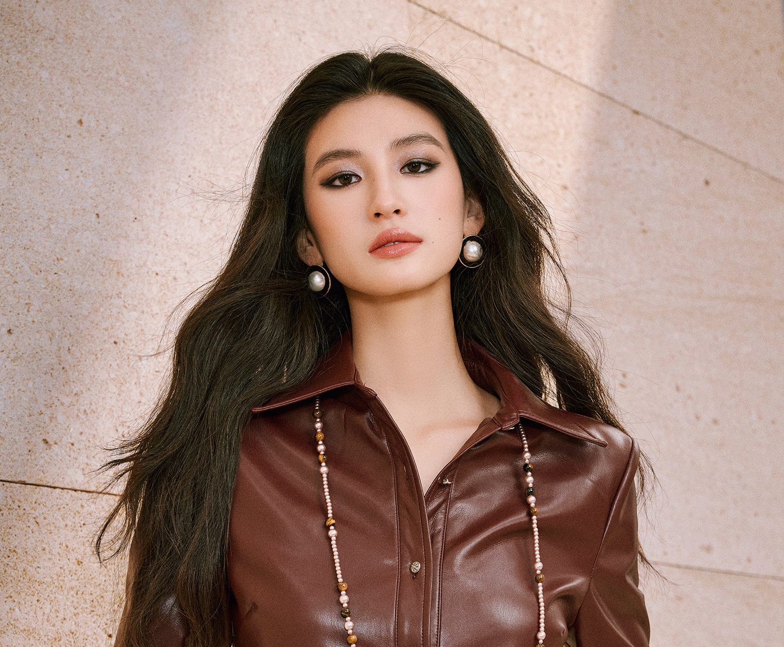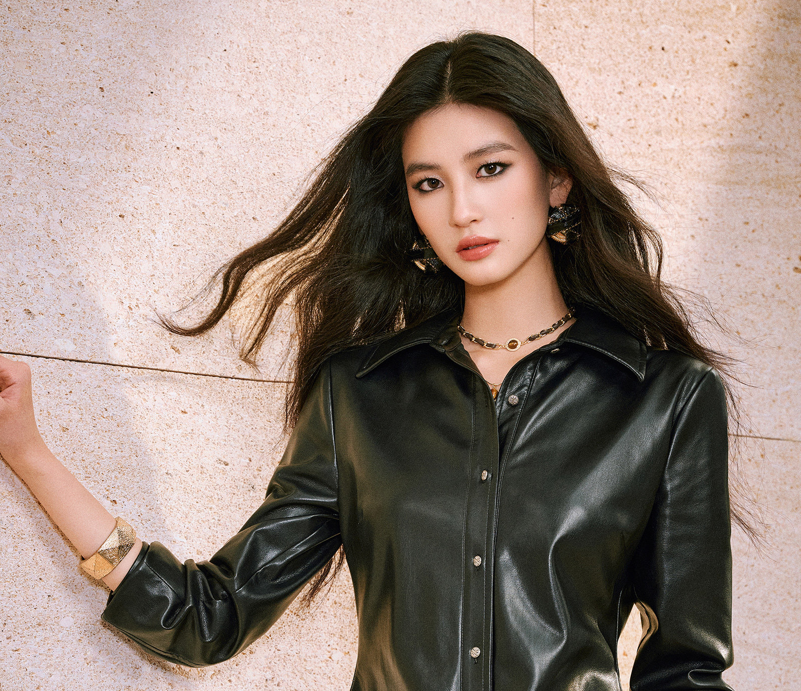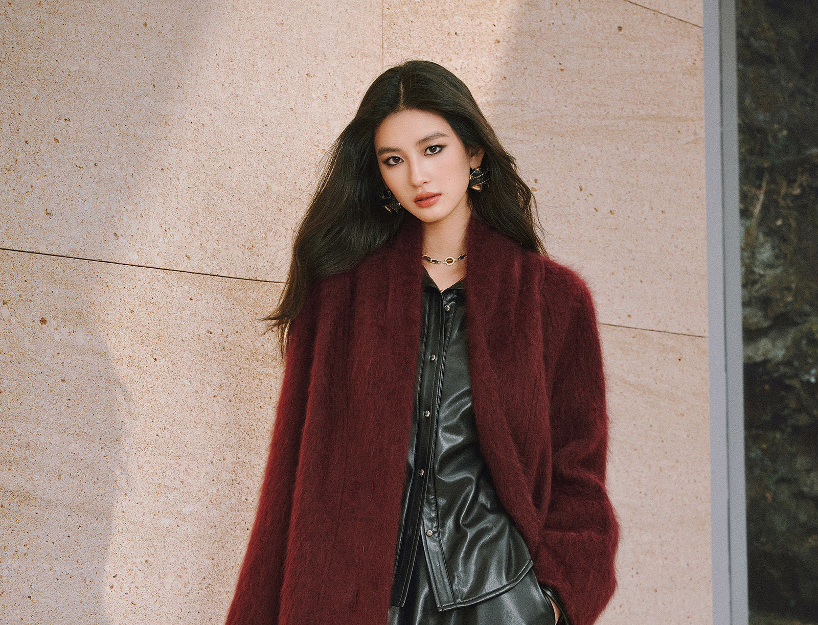 Wangxo|Genuine Leather Texture High-Density Protein Leather|Glossy Waist-Cinching Shirt & Multi-Panel Spliced Umbrella Skirt