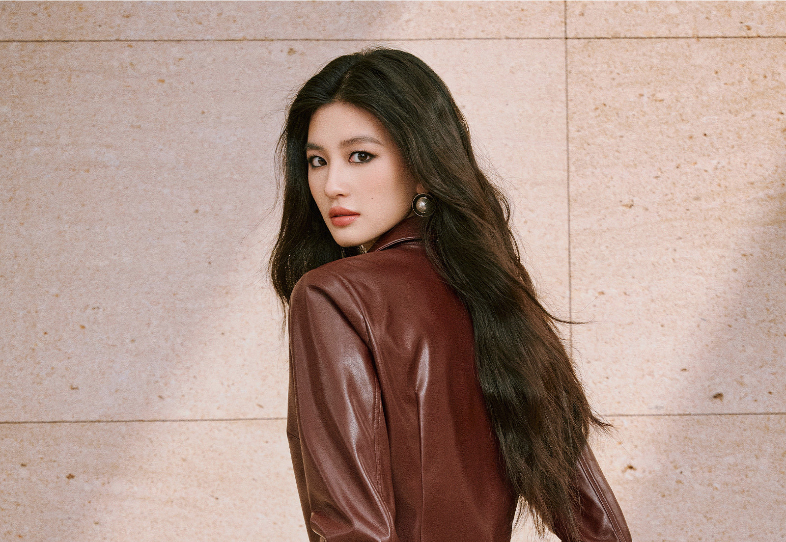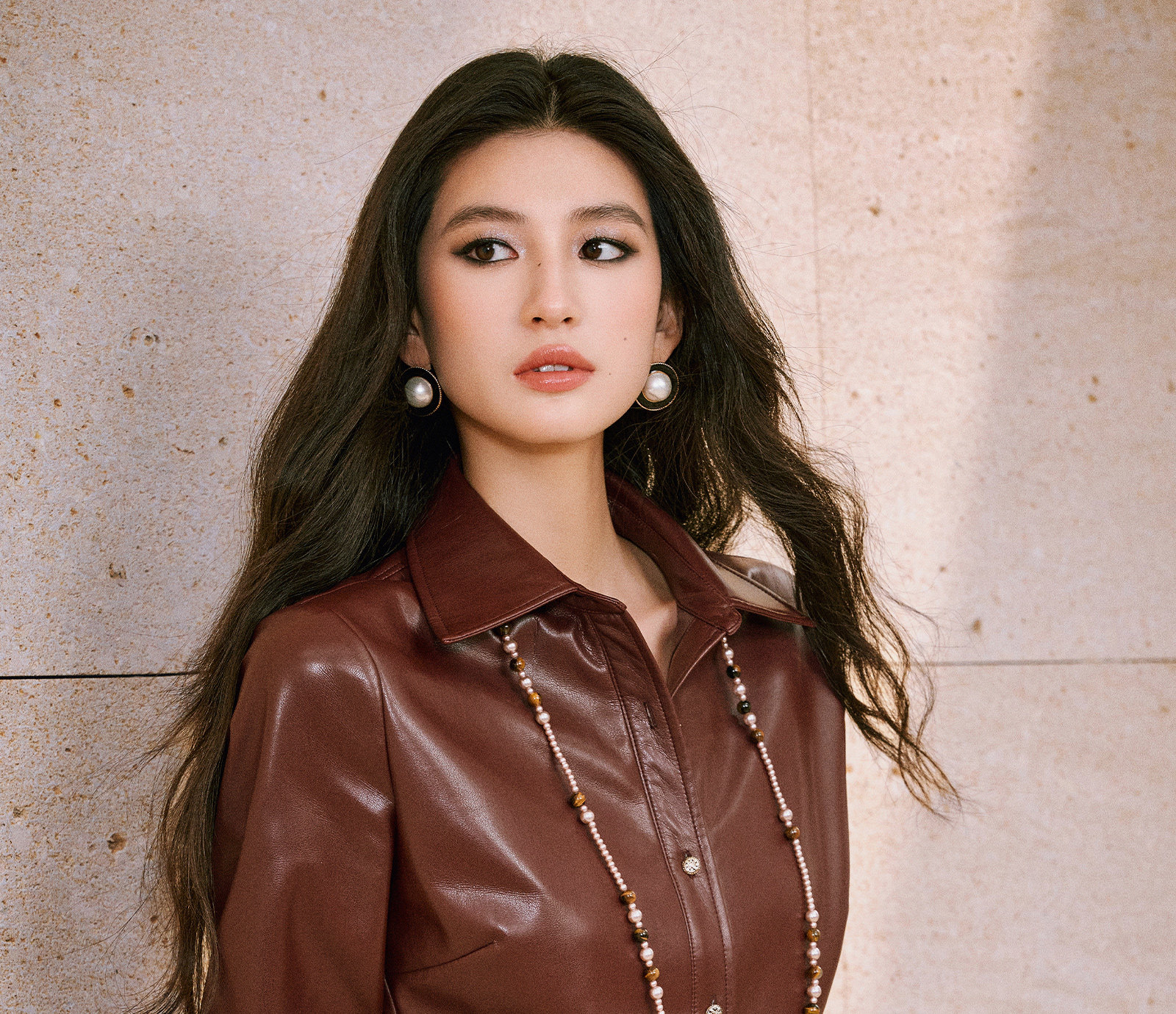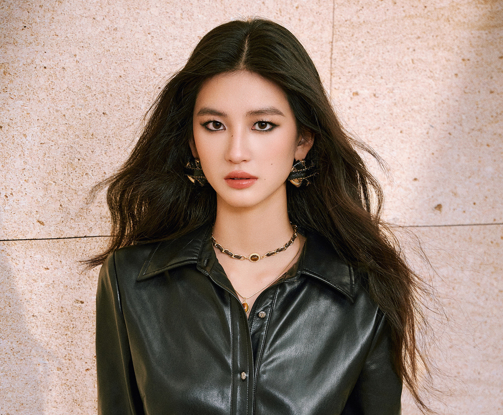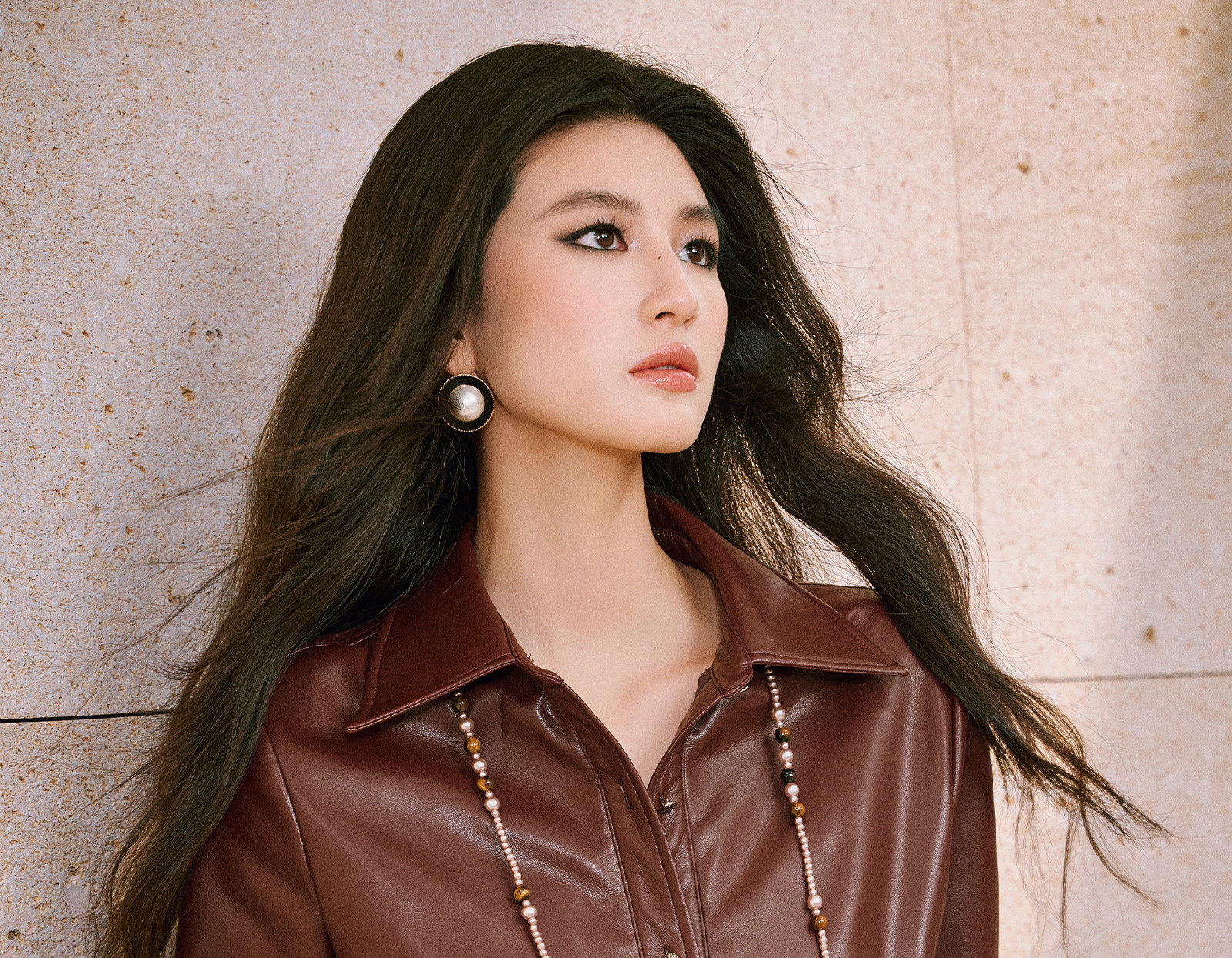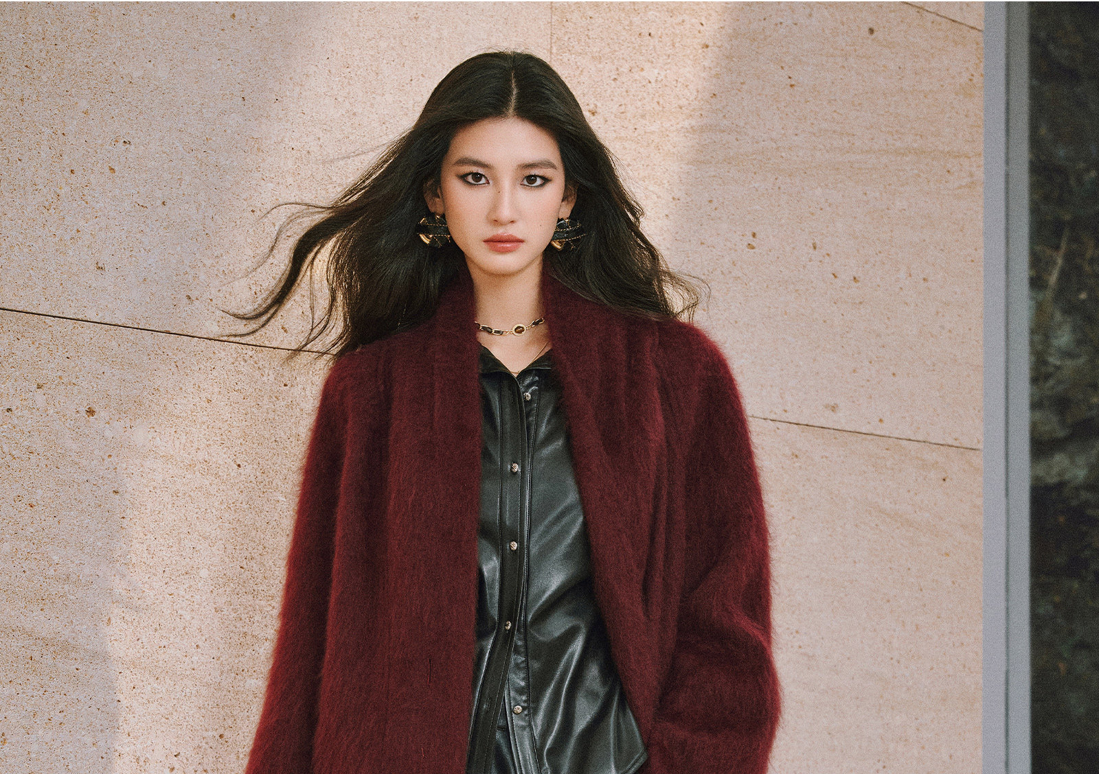 Wangxo|Genuine Leather Texture High-Density Protein Leather|Glossy Waist-Cinching Shirt & Multi-Panel Spliced Umbrella Skirt