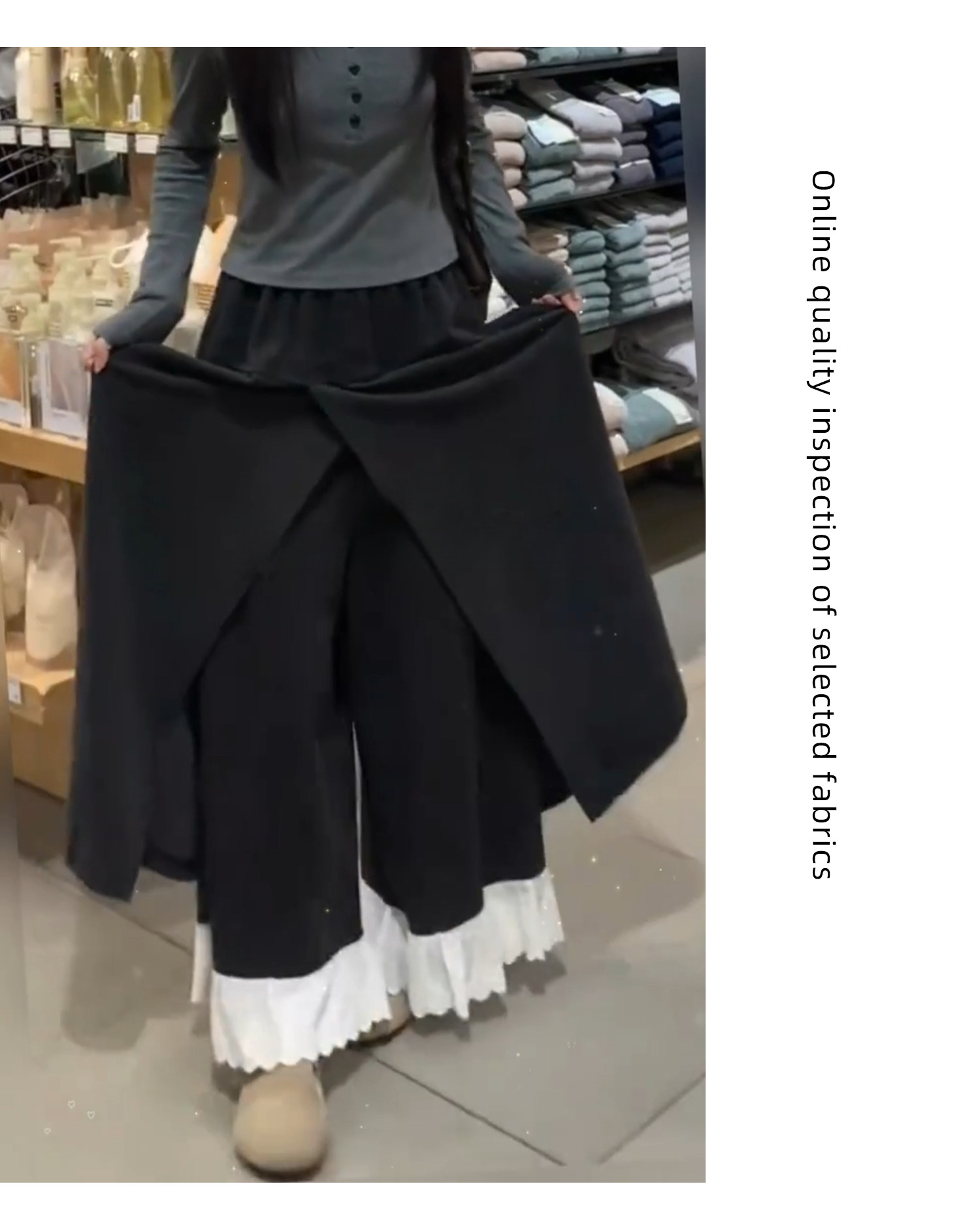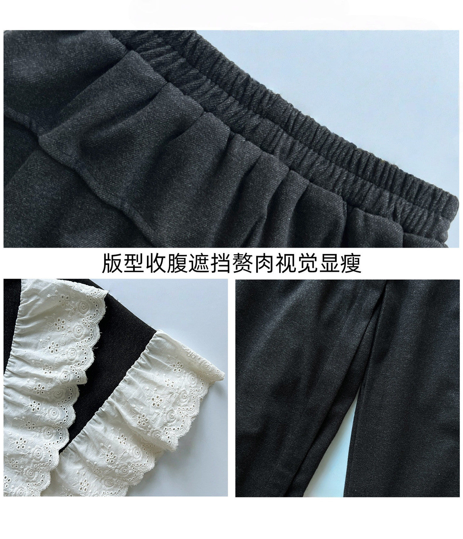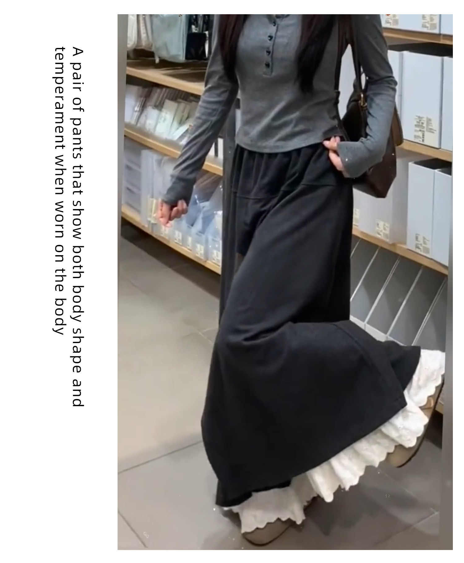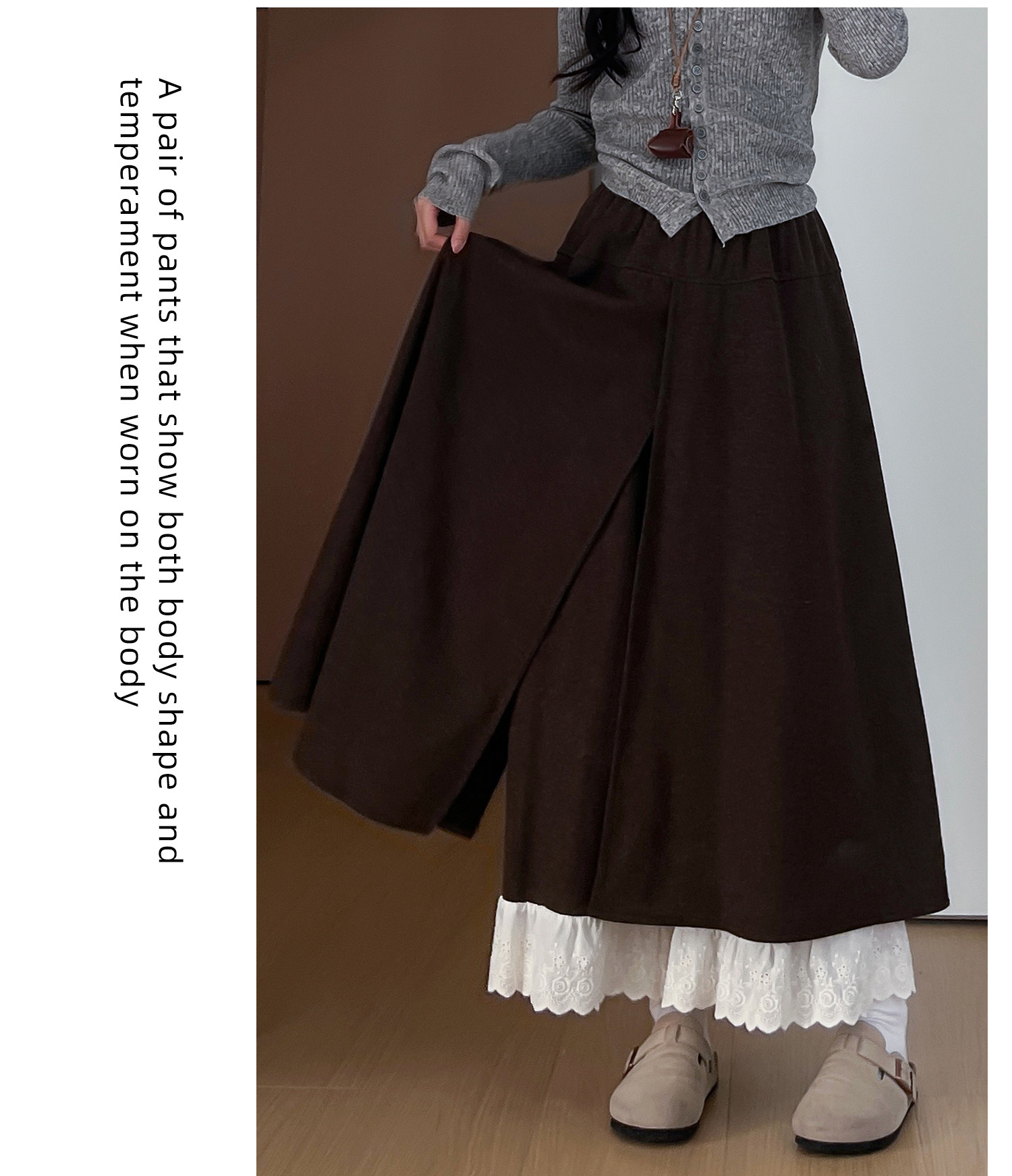 Dunkelgraue Lazy-Woll-Ahornhose für Damen Herbst und Winter 2025, gefälschte zweiteilige Lazy-Style-Hose mit weitem Bein und Spitzennähten