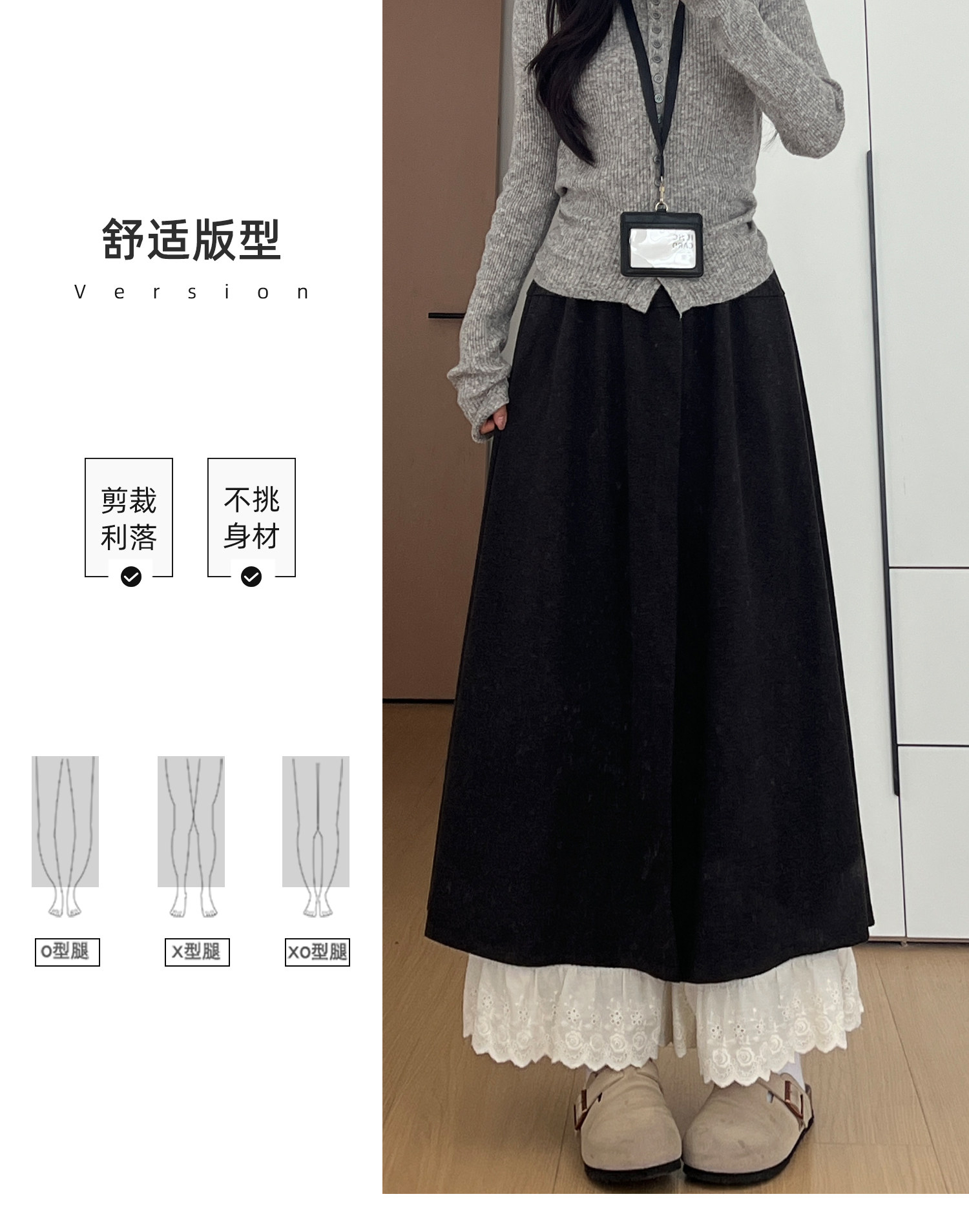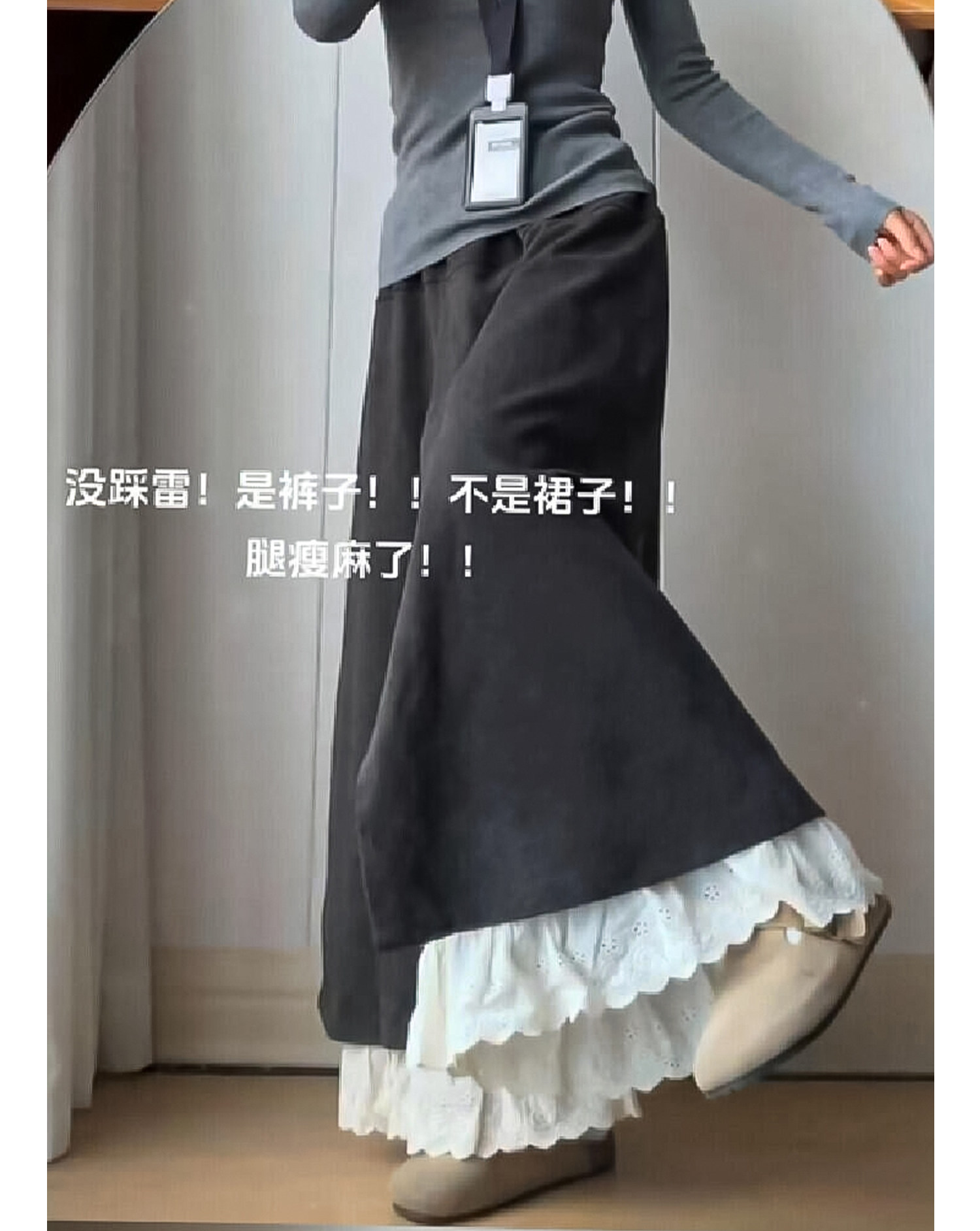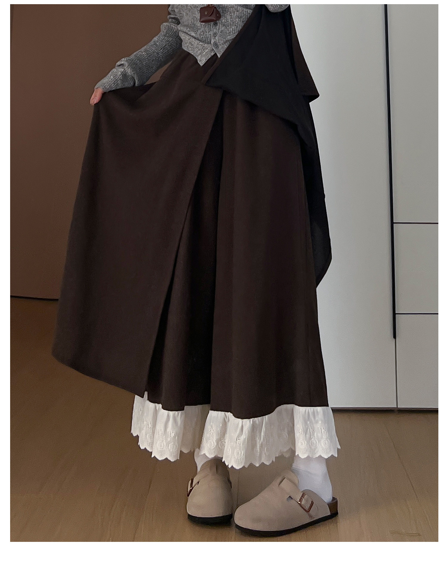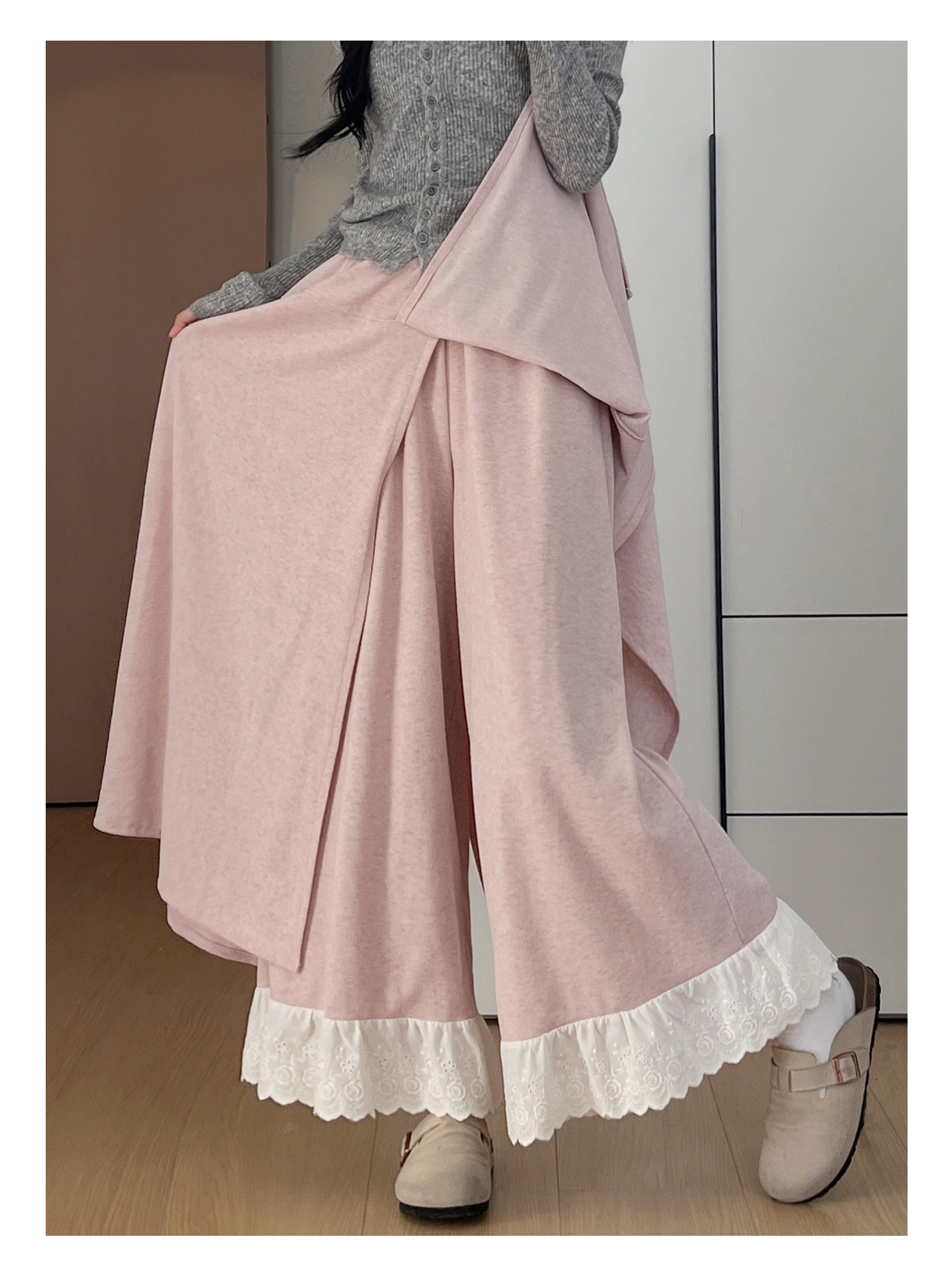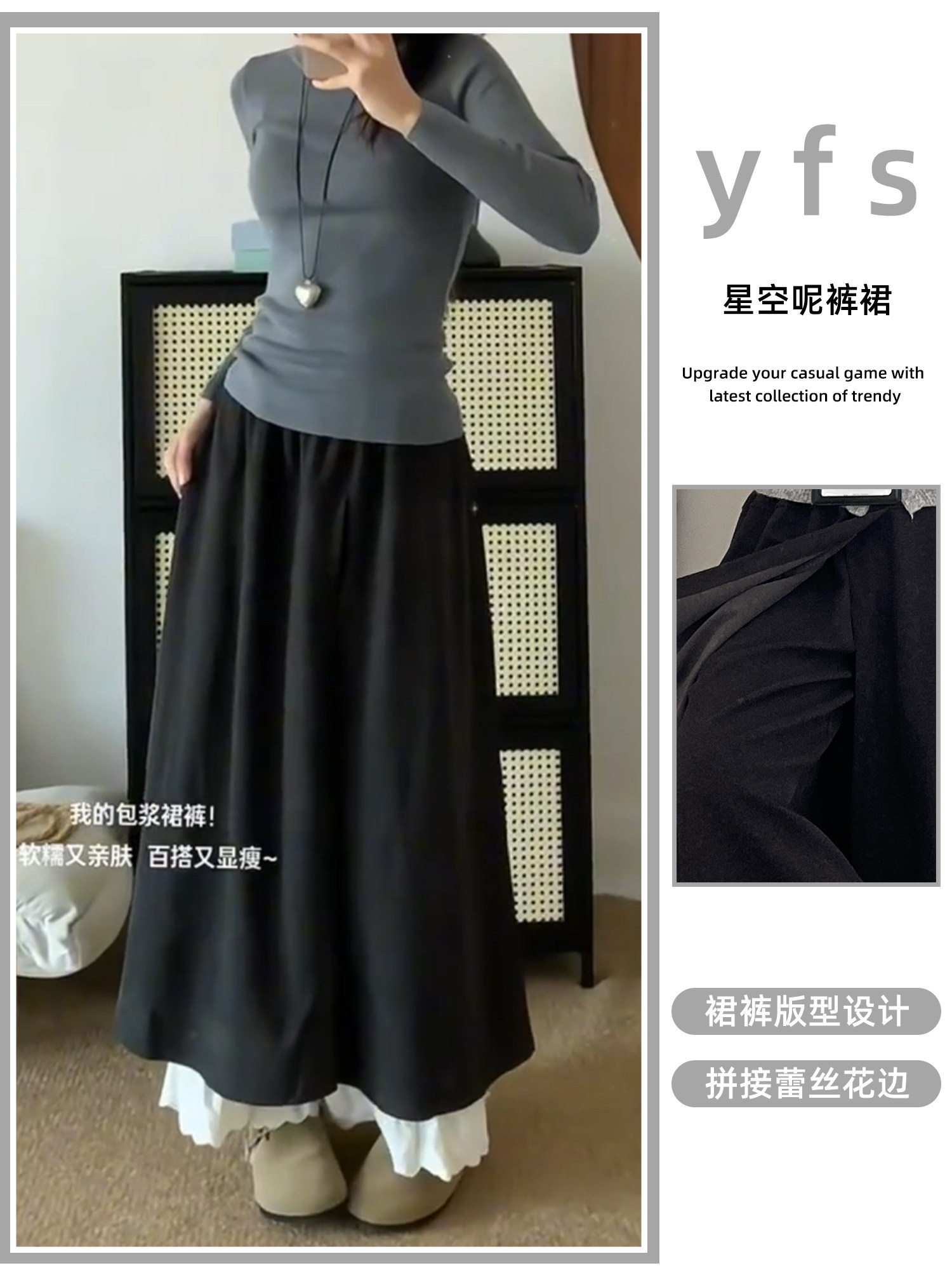Dunkelgraue Lazy-Woll-Ahornhose für Damen Herbst und Winter 2025, gefälschte zweiteilige Lazy-Style-Hose mit weitem Bein und Spitzennähten