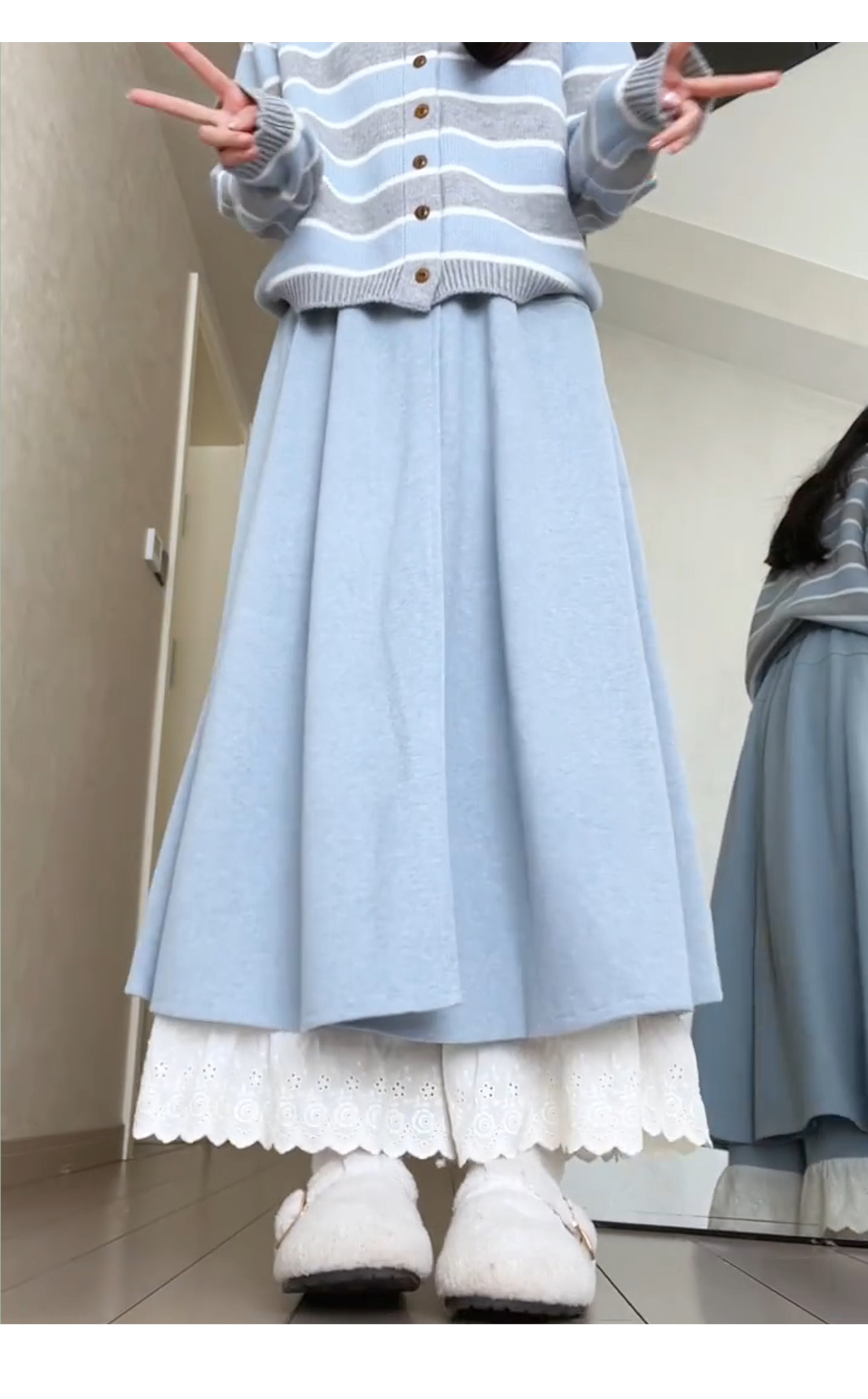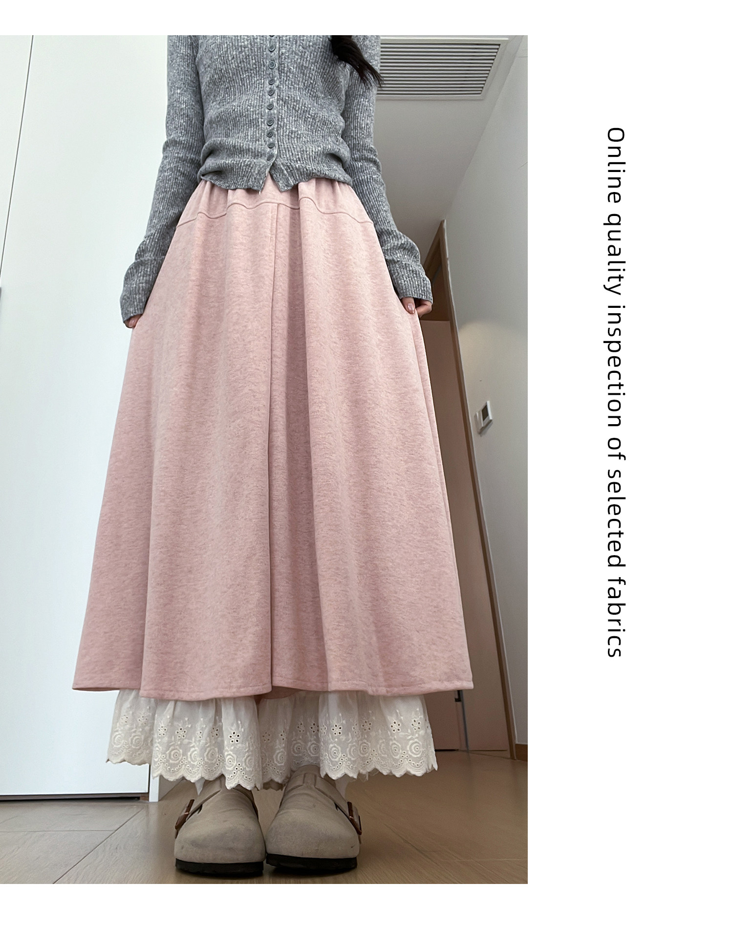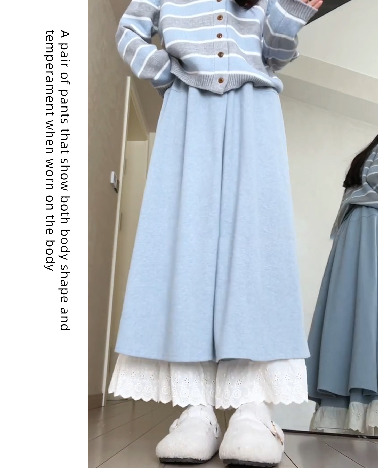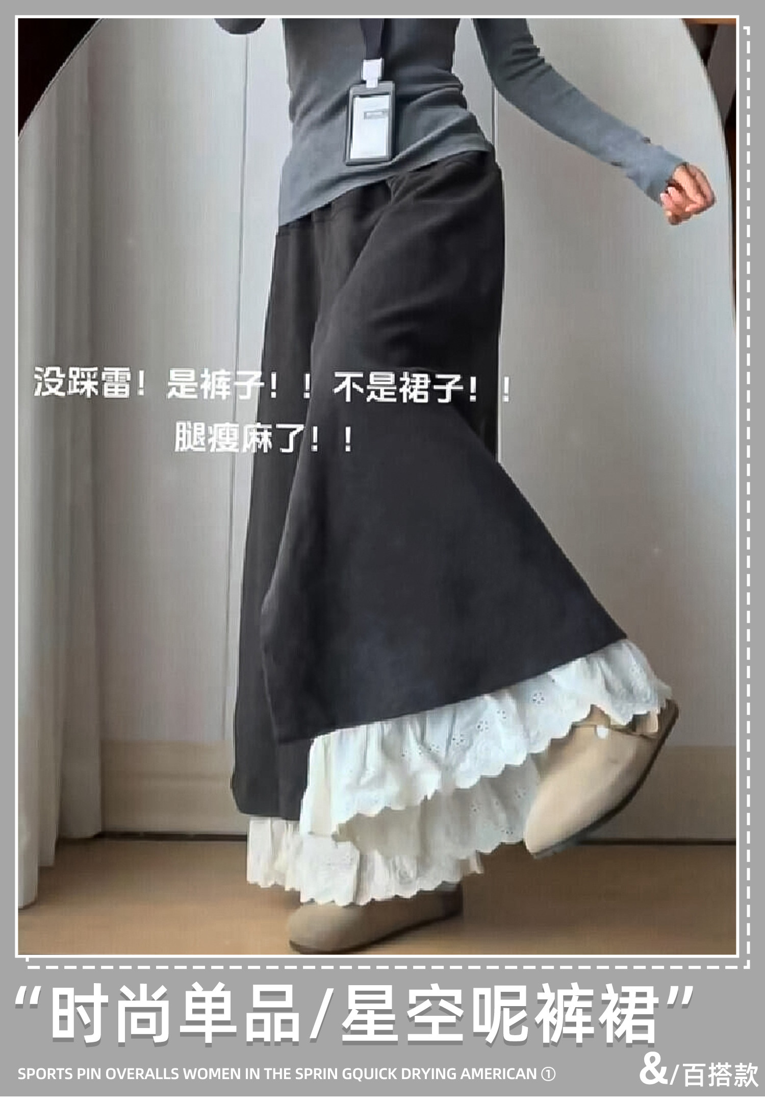 Dunkelgraue Lazy-Woll-Ahornhose für Damen Herbst und Winter 2025, gefälschte zweiteilige Lazy-Style-Hose mit weitem Bein und Spitzennähten