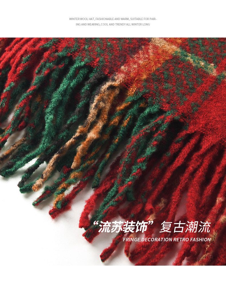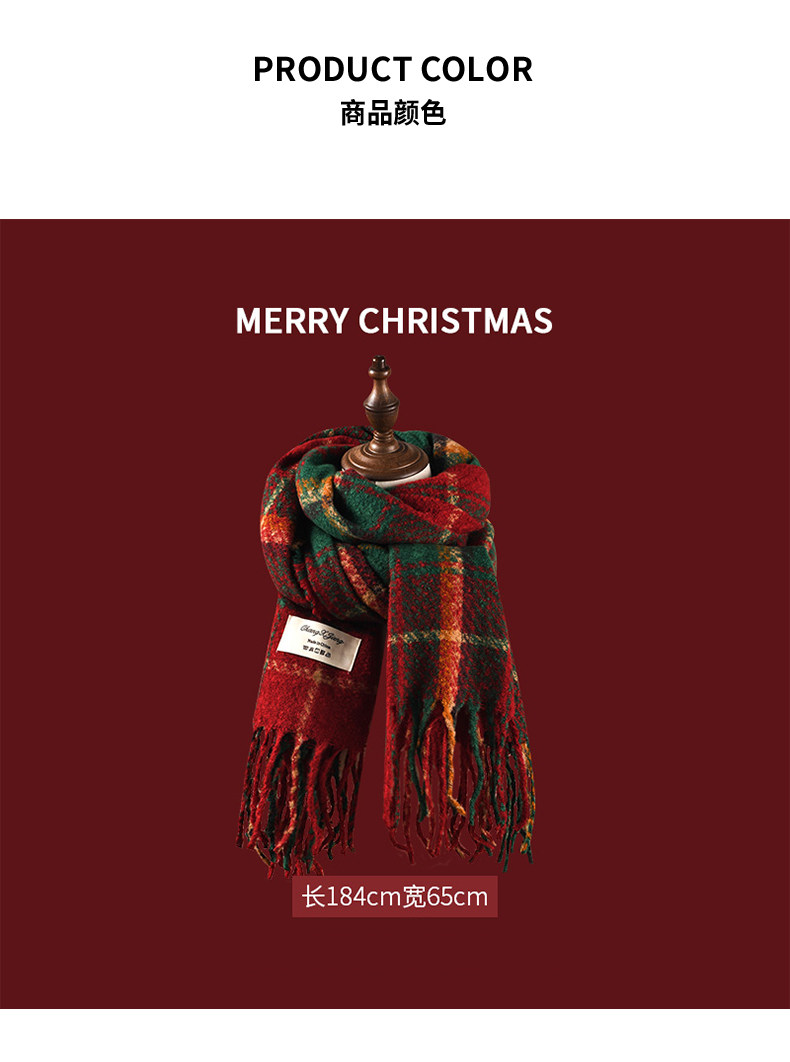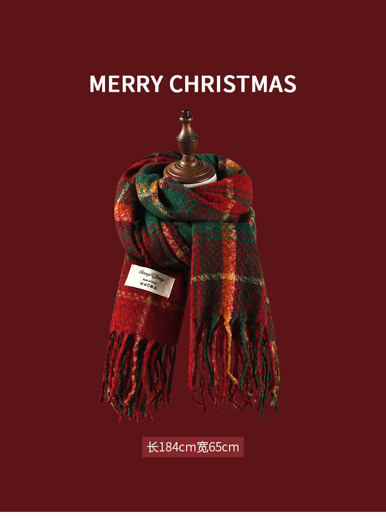 Шарф DIWONOR, новогодний стиль, красный клетчатый женский зимний теплый новый стильный универсальный шарф в стиле ретро