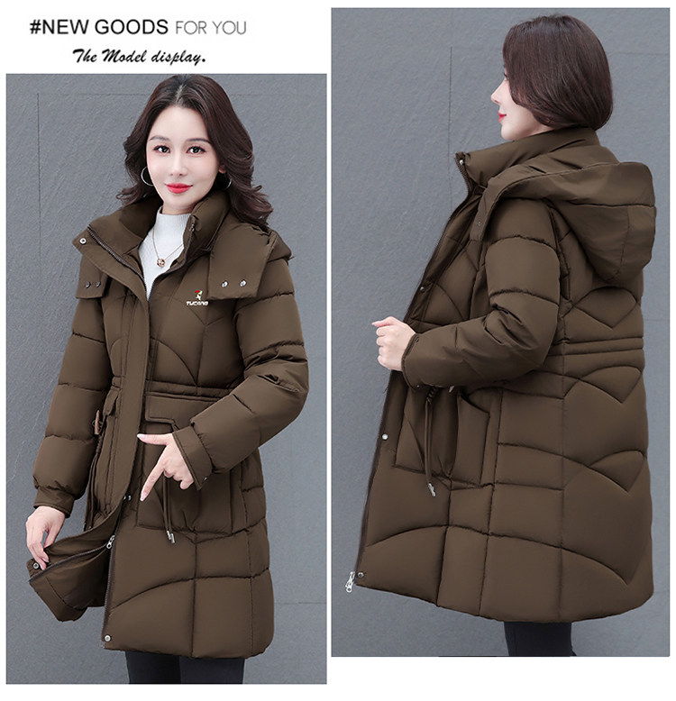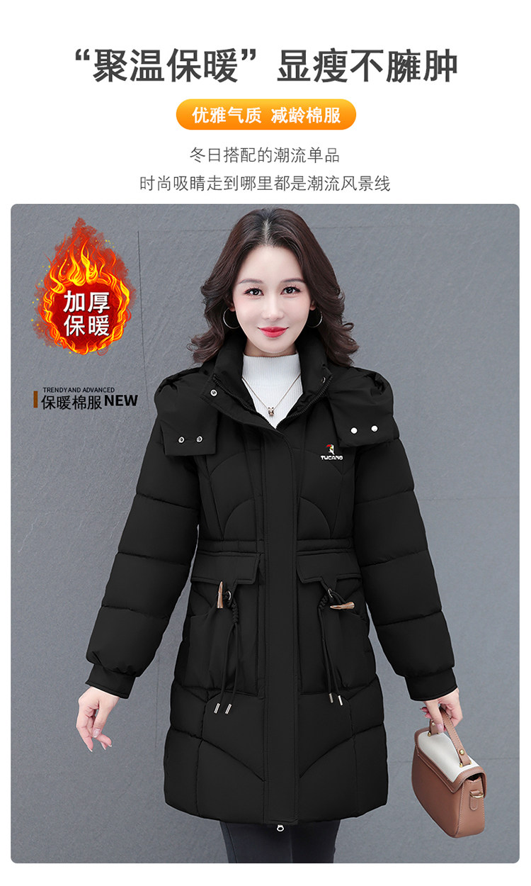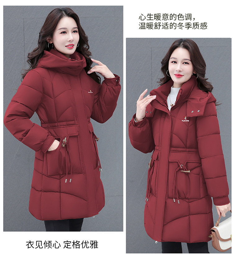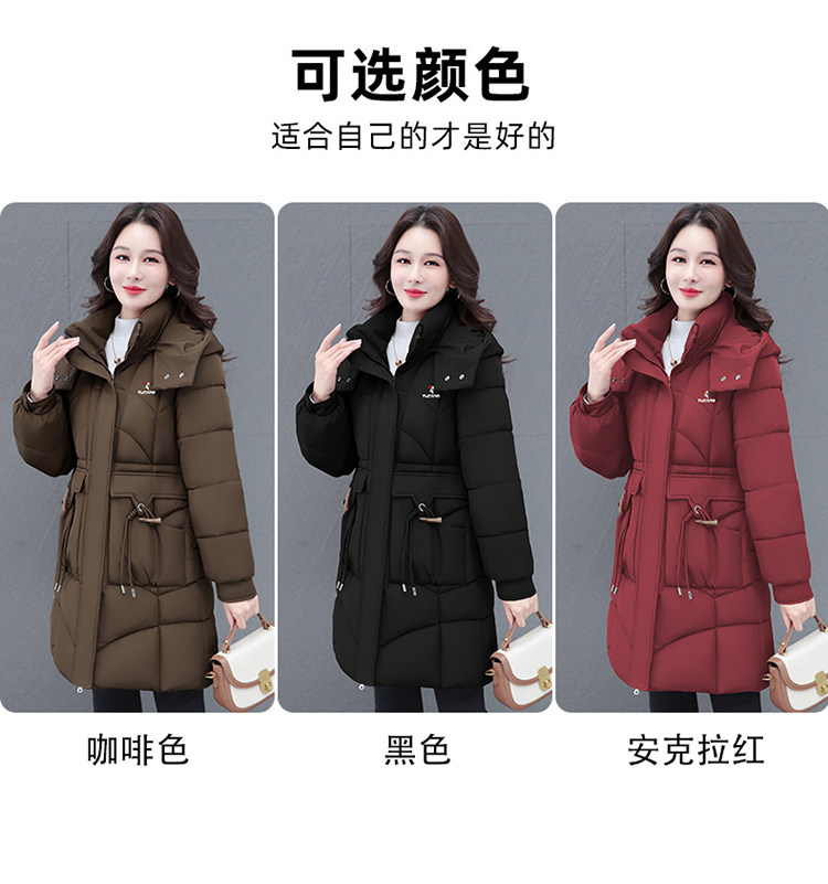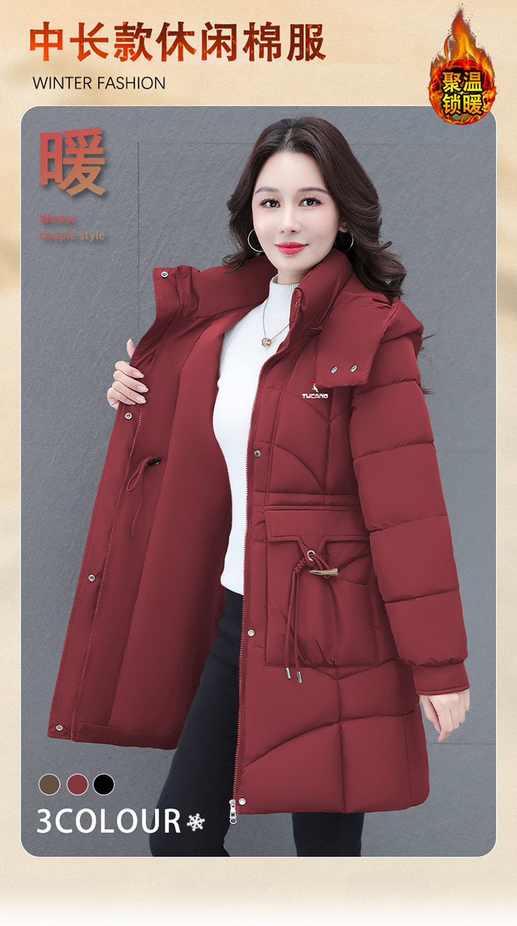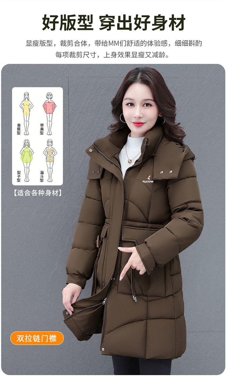 啄木鸟中长款棉服女2025冬季新款收腰显瘦洋气妈妈保暖棉衣外套女