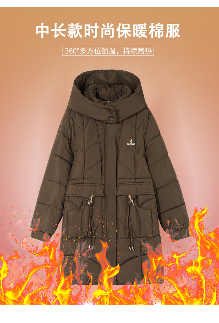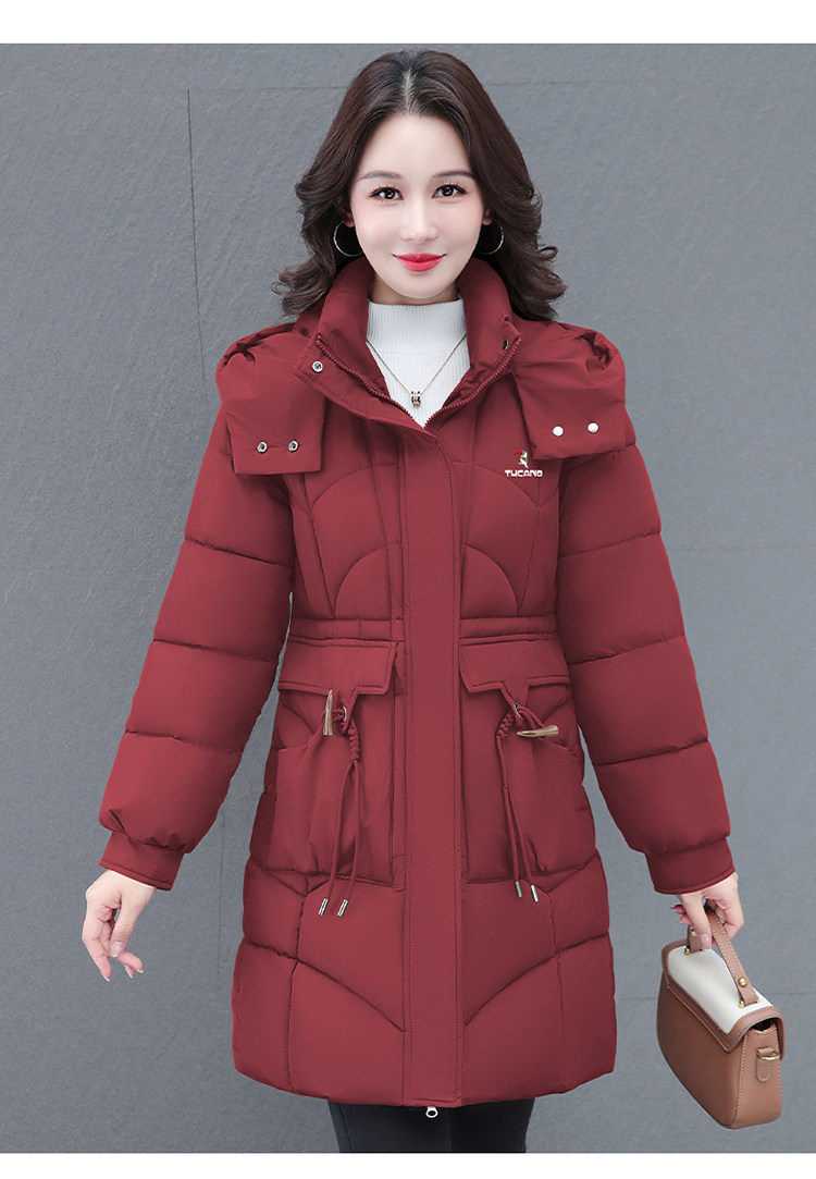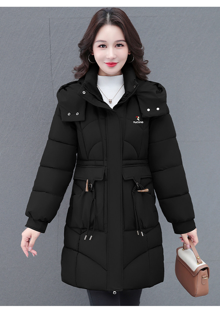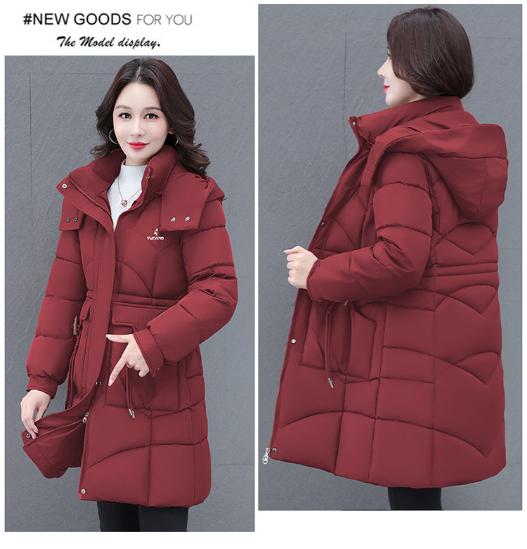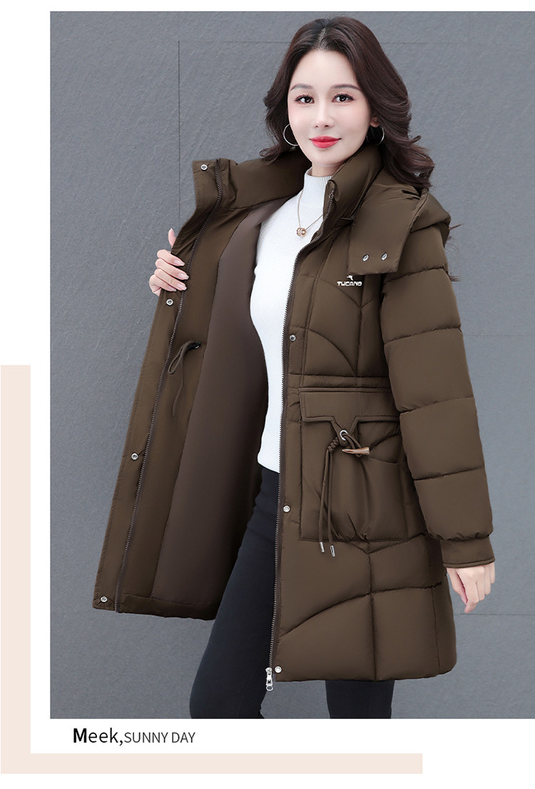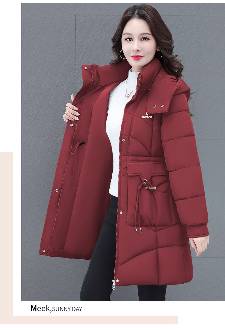 啄木鸟中长款棉服女2025冬季新款收腰显瘦洋气妈妈保暖棉衣外套女
