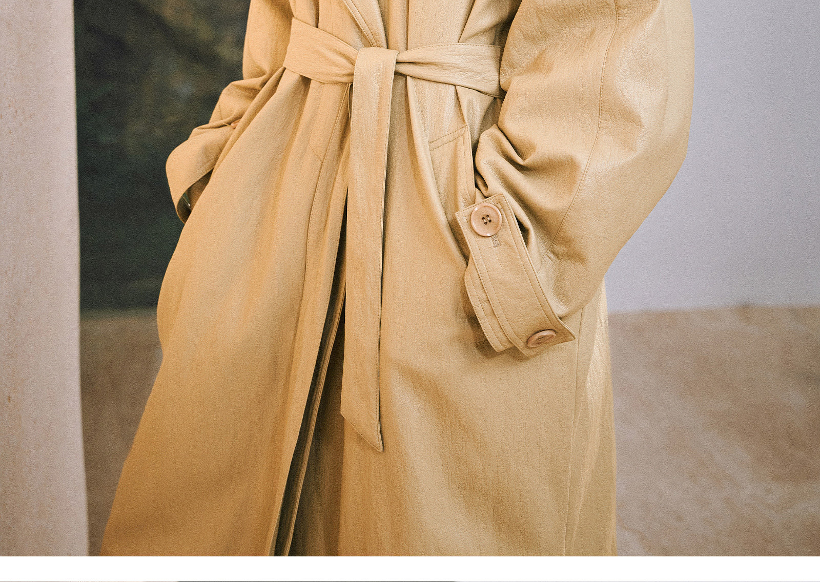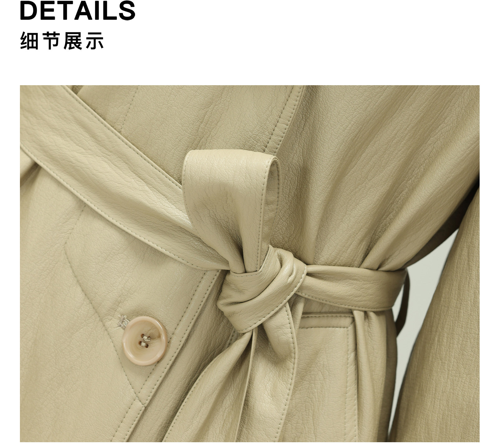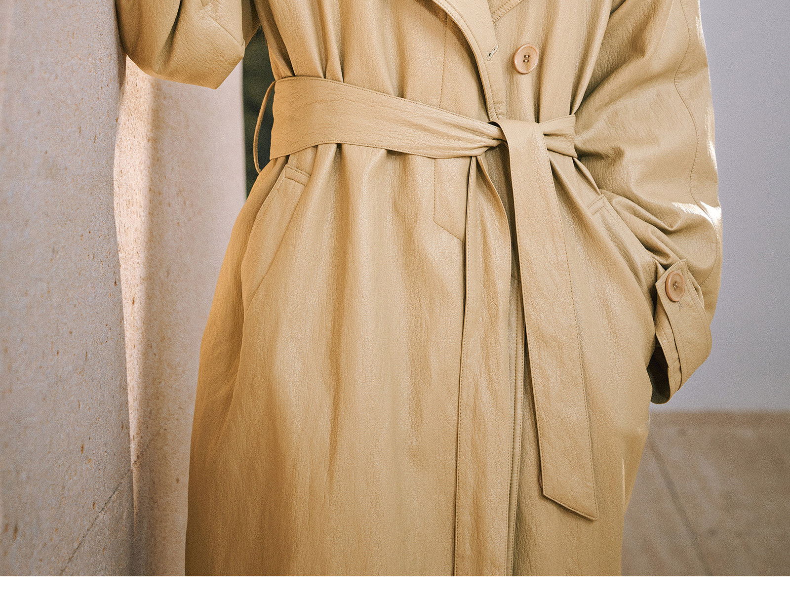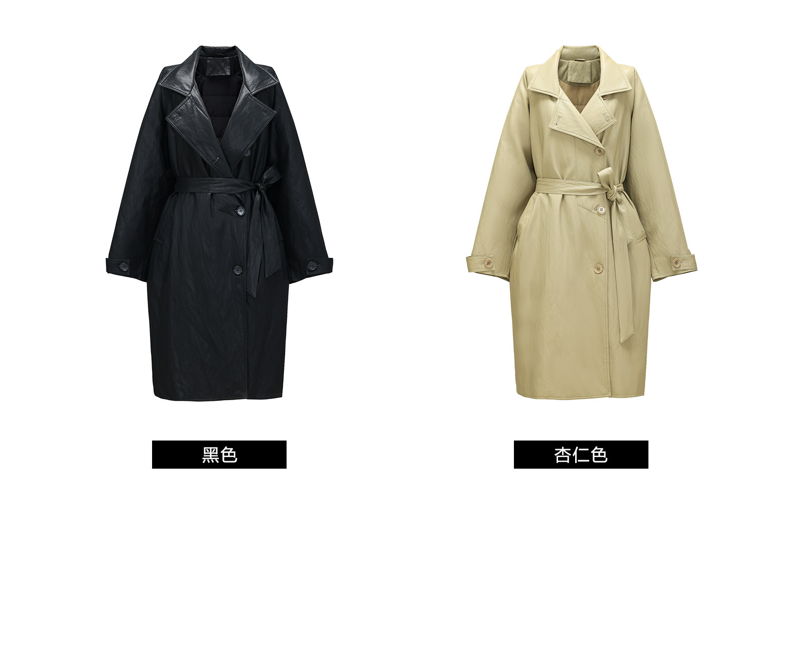 Wangxo|Metallic Plant-Based Leather|90% White Duck down Lapel Belt Leather Trench Coat Style Long down Jacket