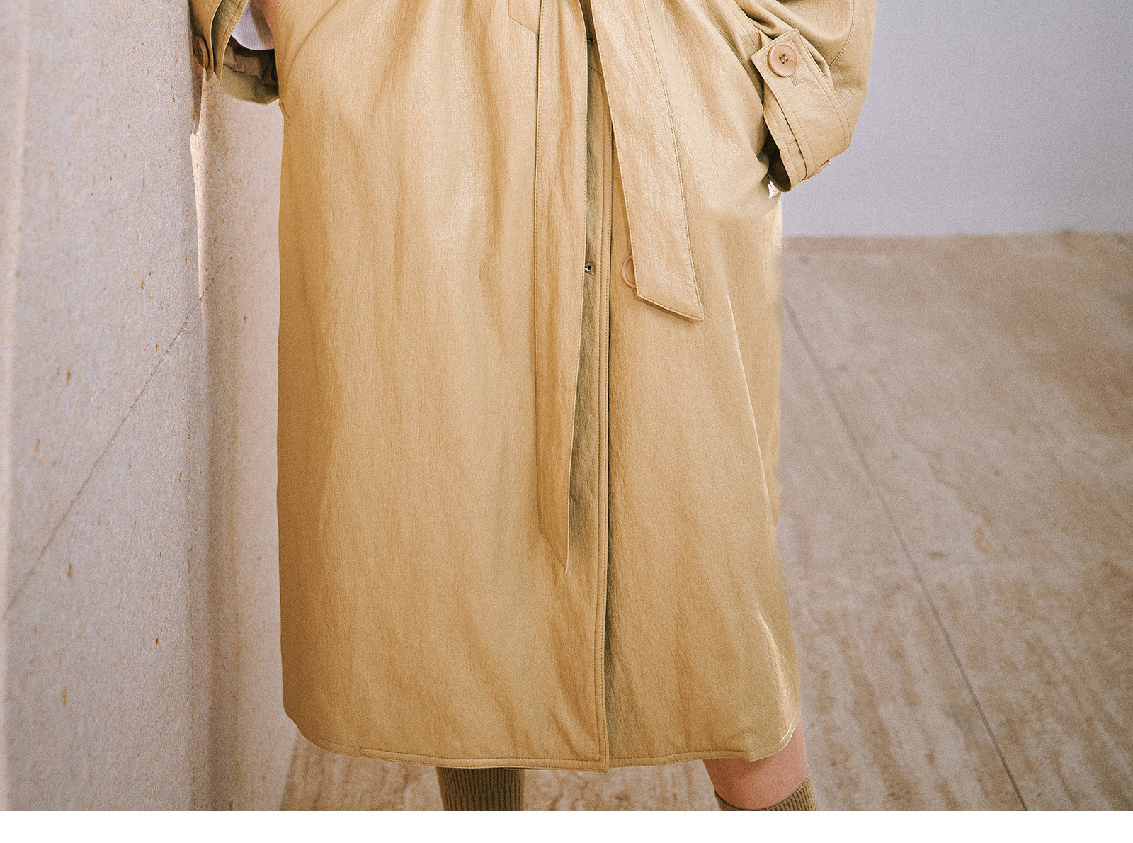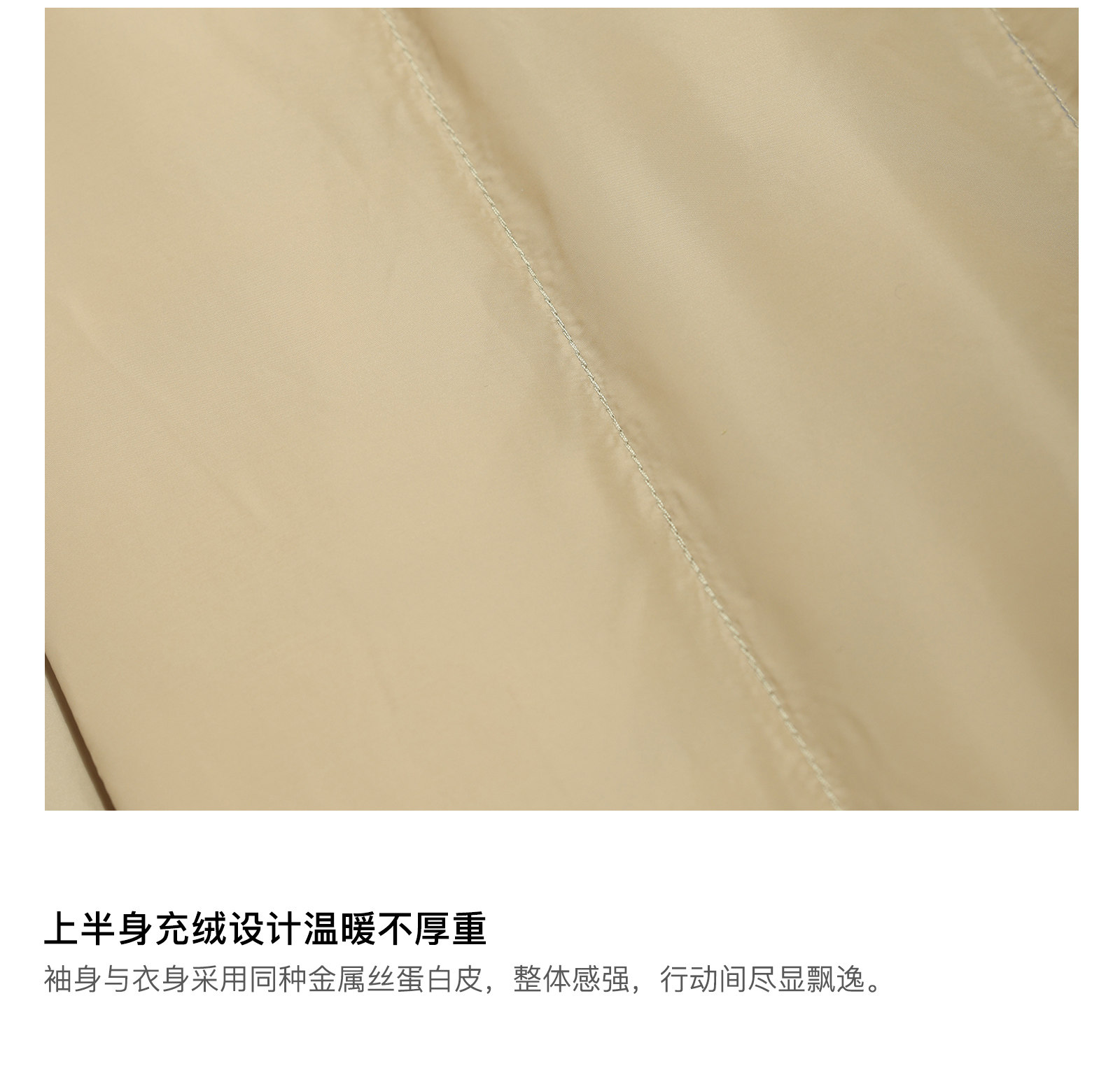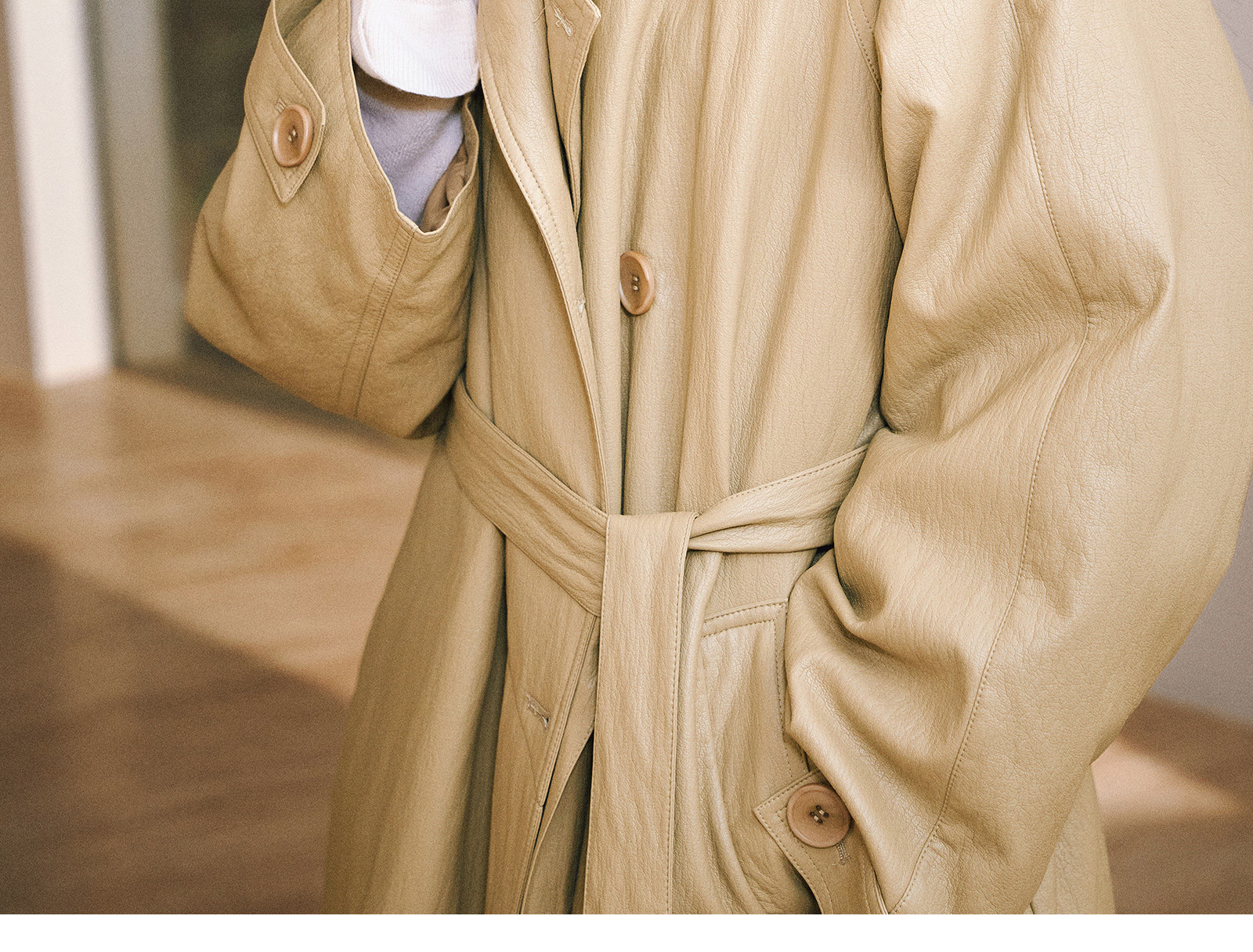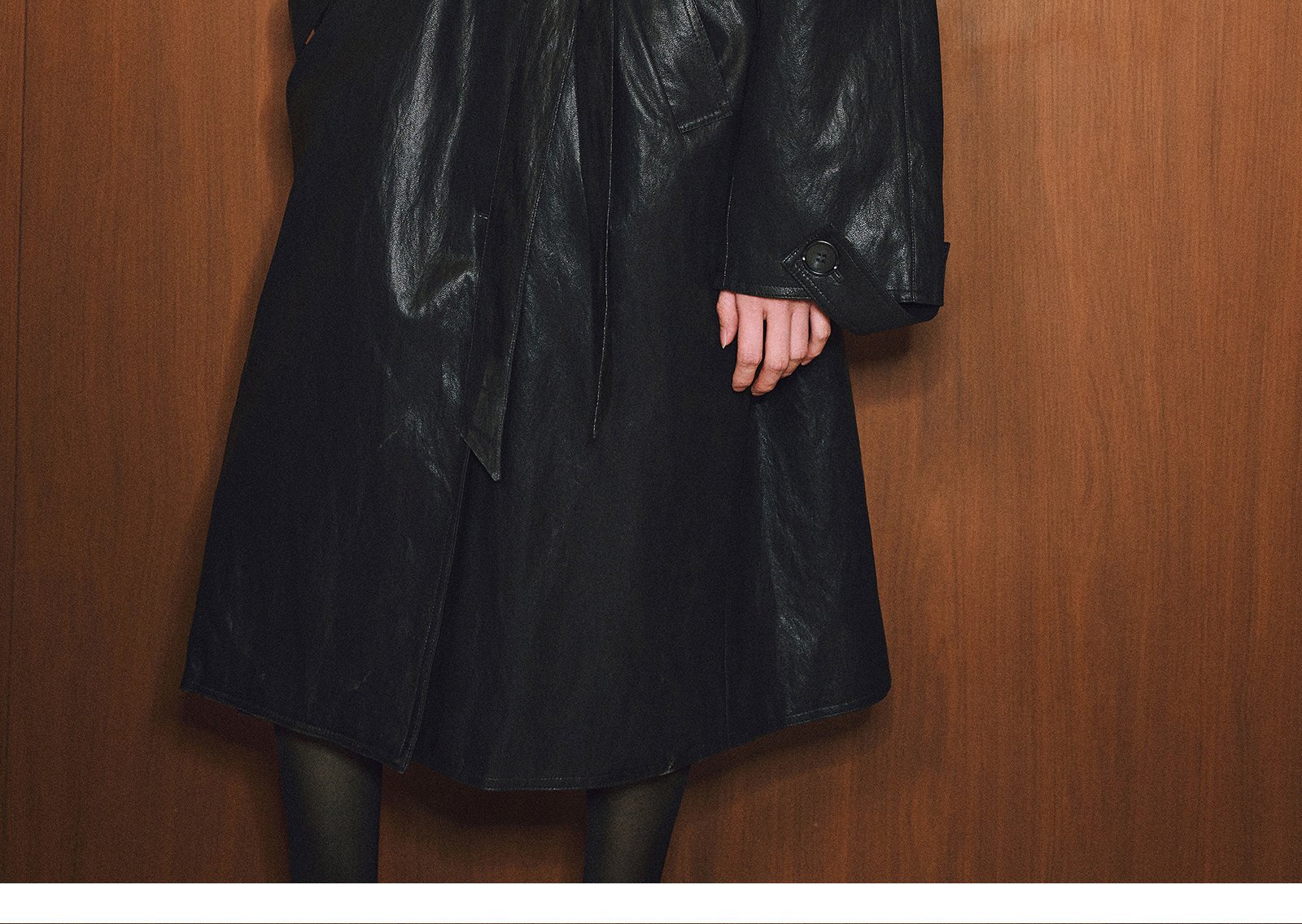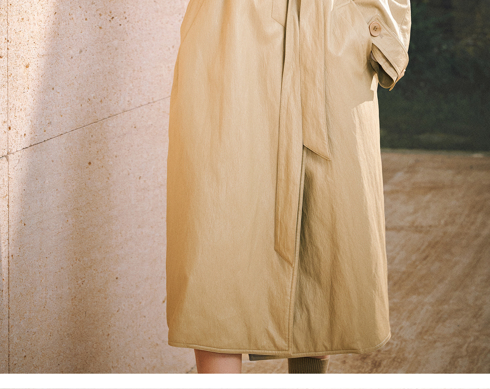 Wangxo|Metallic Plant-Based Leather|90% White Duck down Lapel Belt Leather Trench Coat Style Long down Jacket