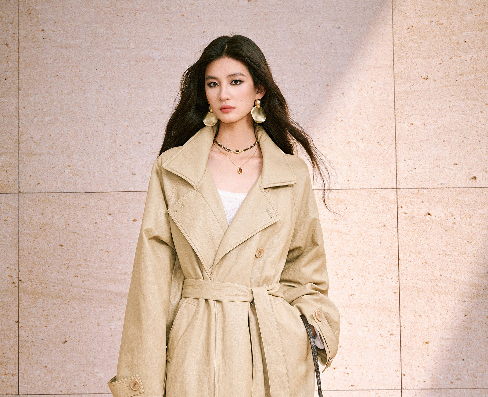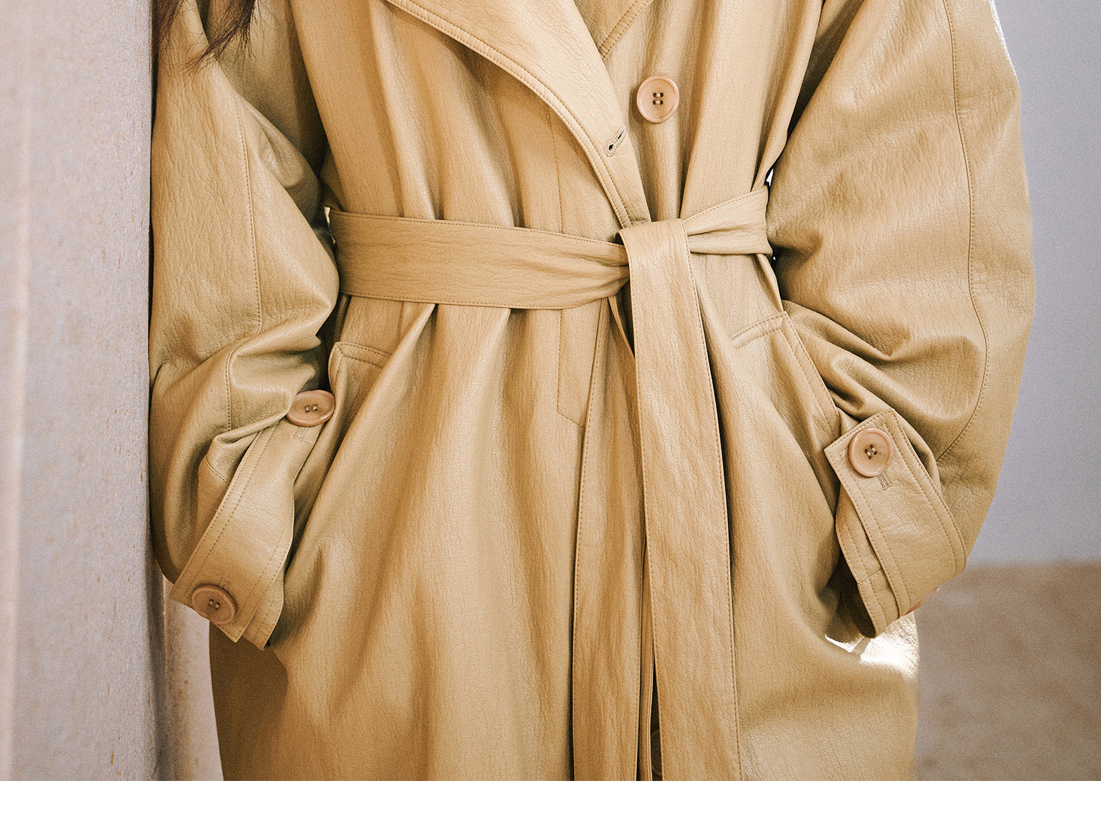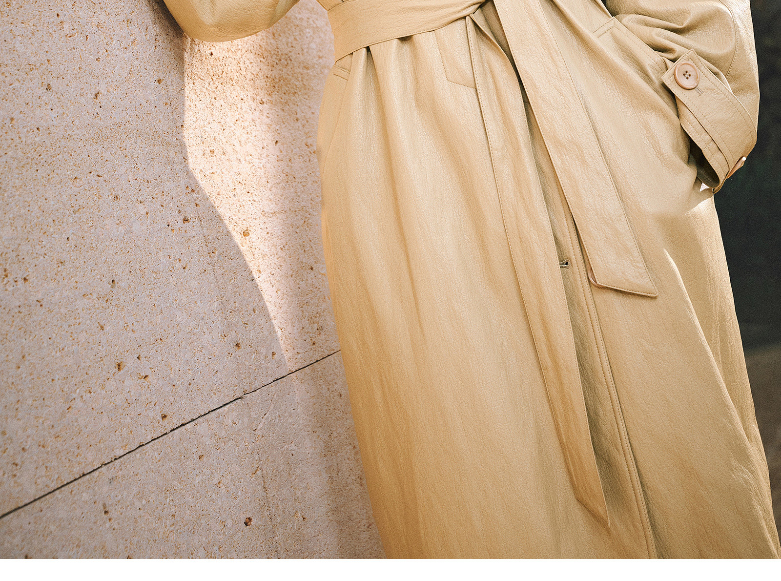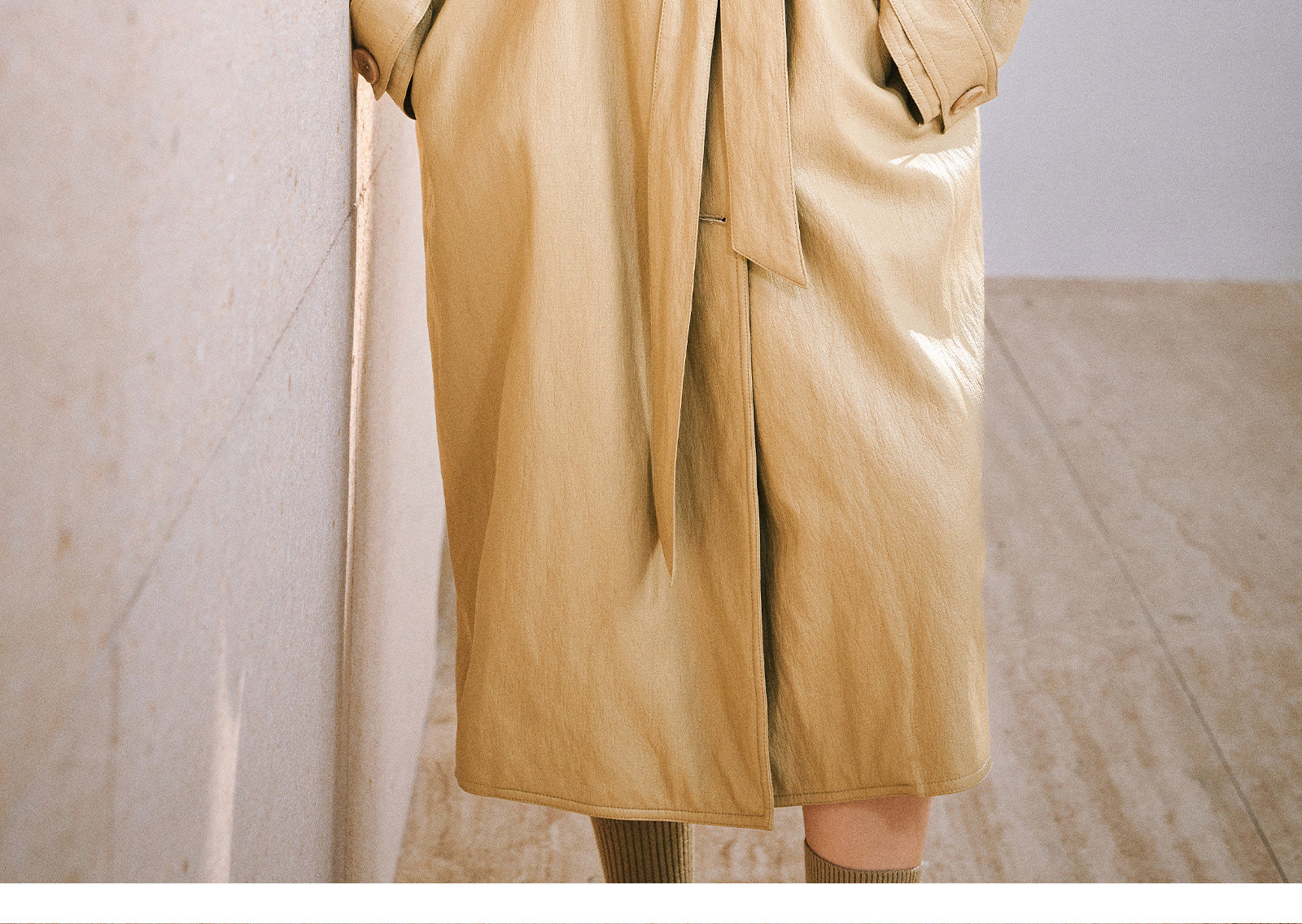 Wangxo|Metallic Plant-Based Leather|90% White Duck down Lapel Belt Leather Trench Coat Style Long down Jacket