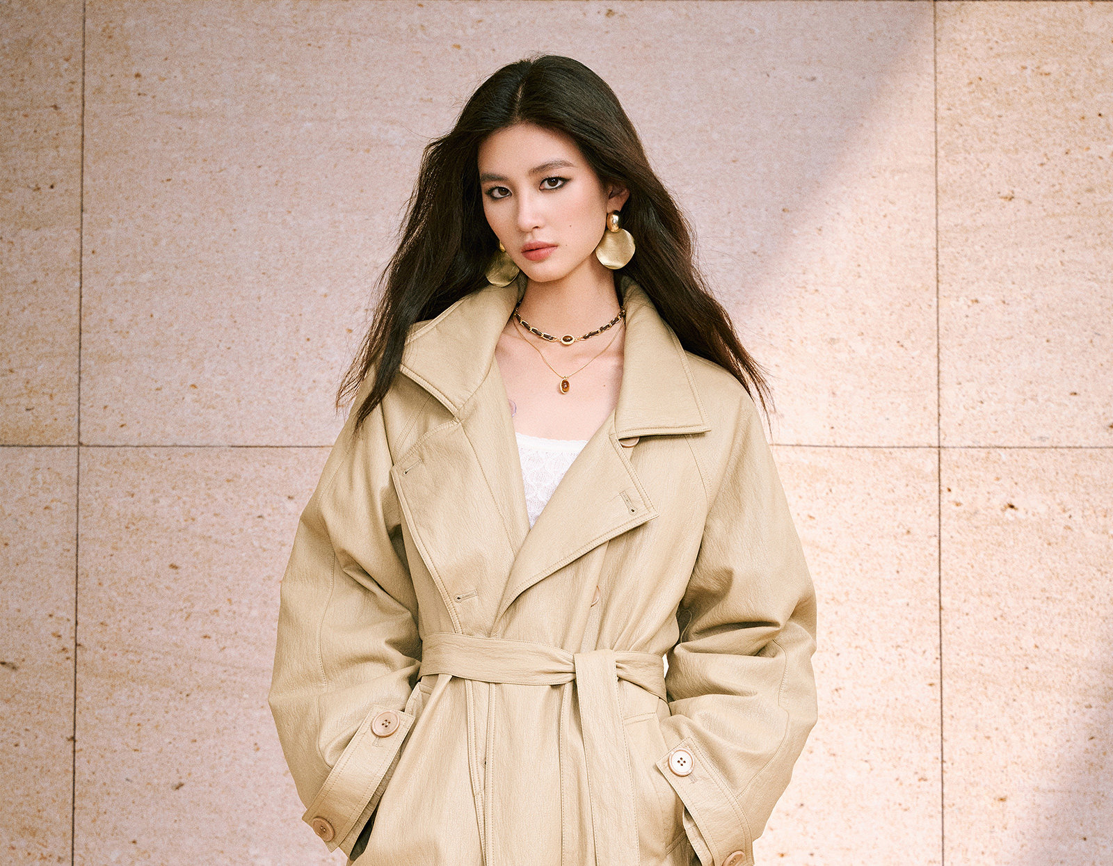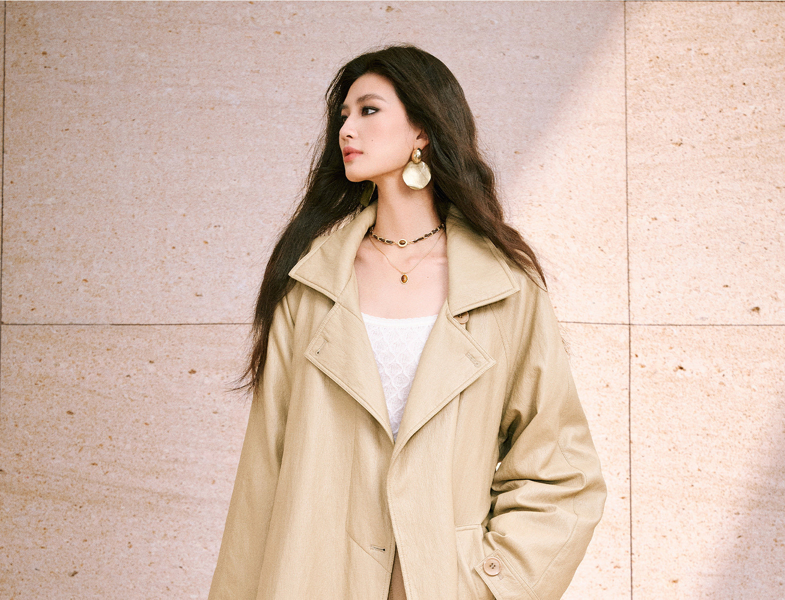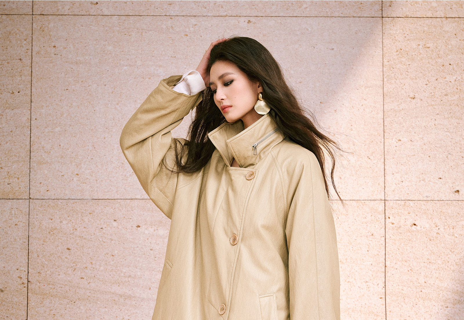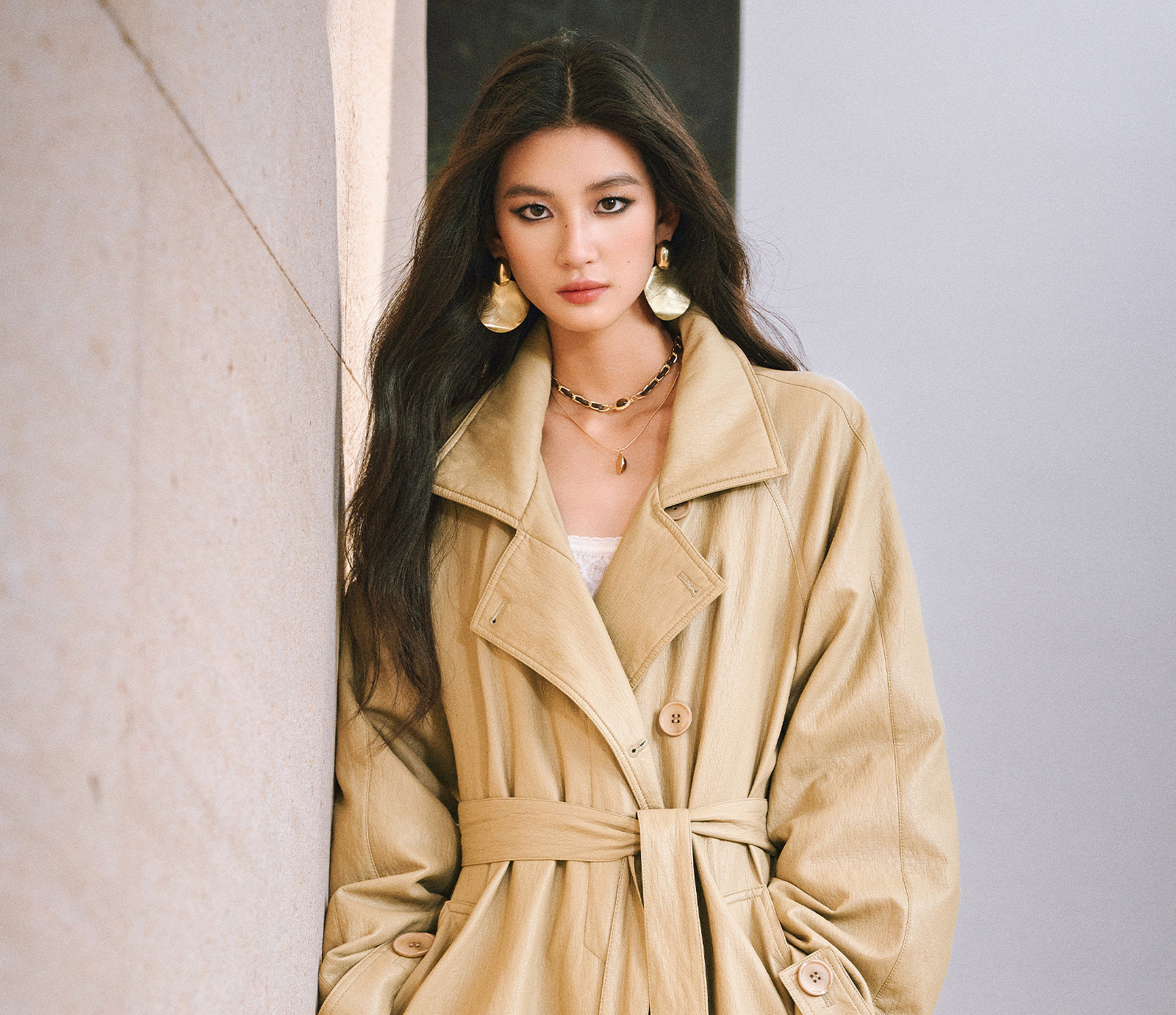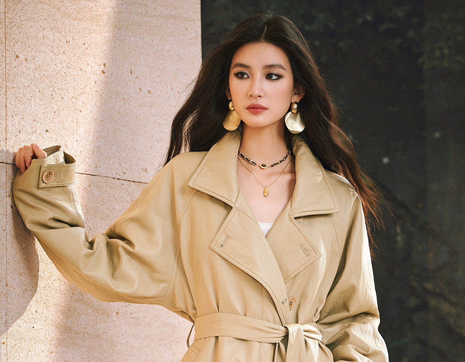 Wangxo|Metallic Plant-Based Leather|90% White Duck down Lapel Belt Leather Trench Coat Style Long down Jacket